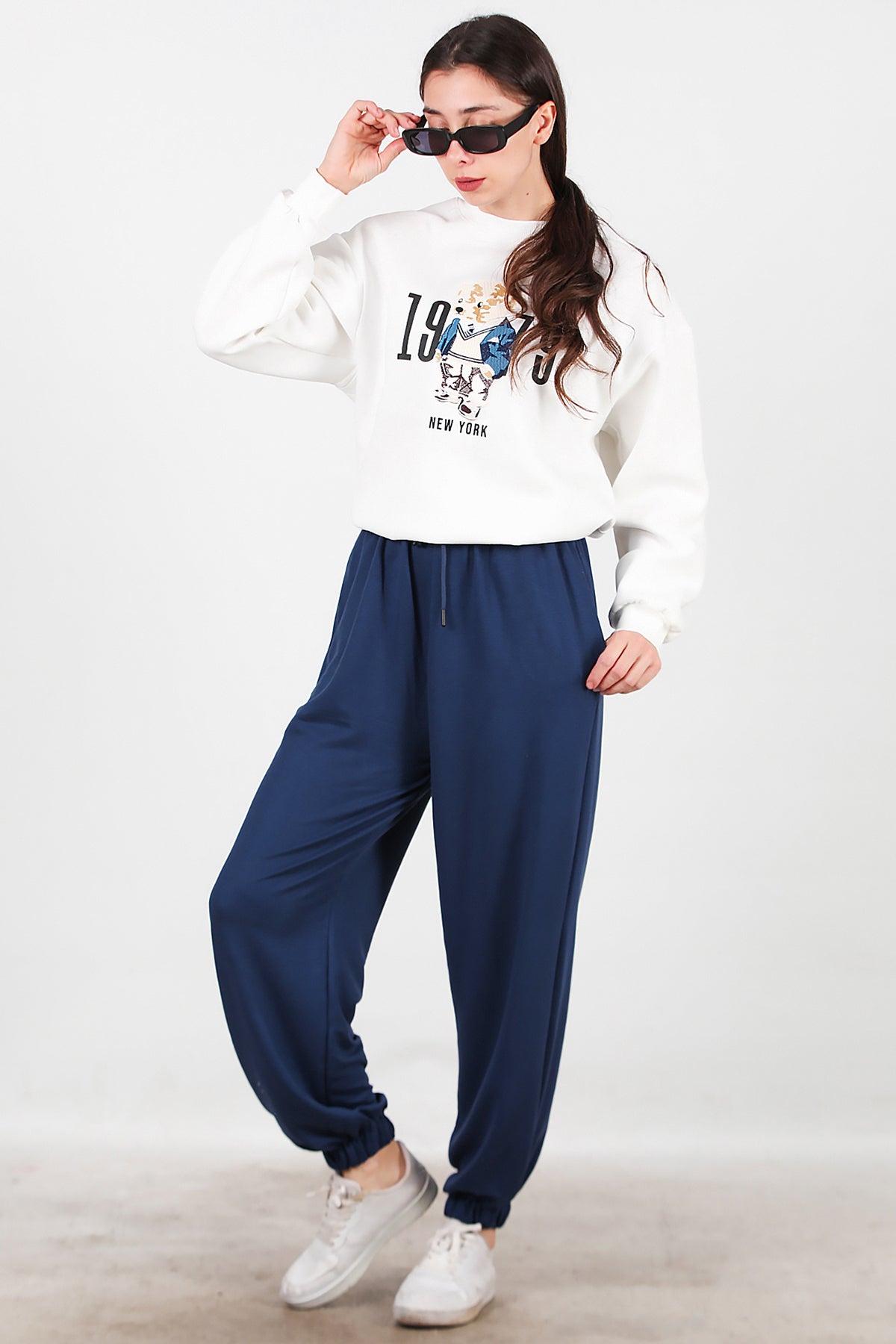Kadın Paça Lastikli Oversize Eşofman Lacivert