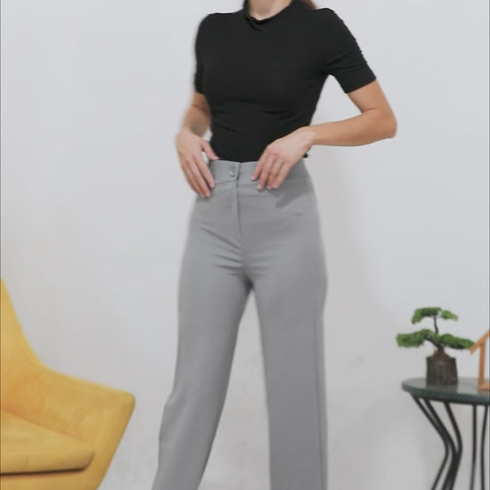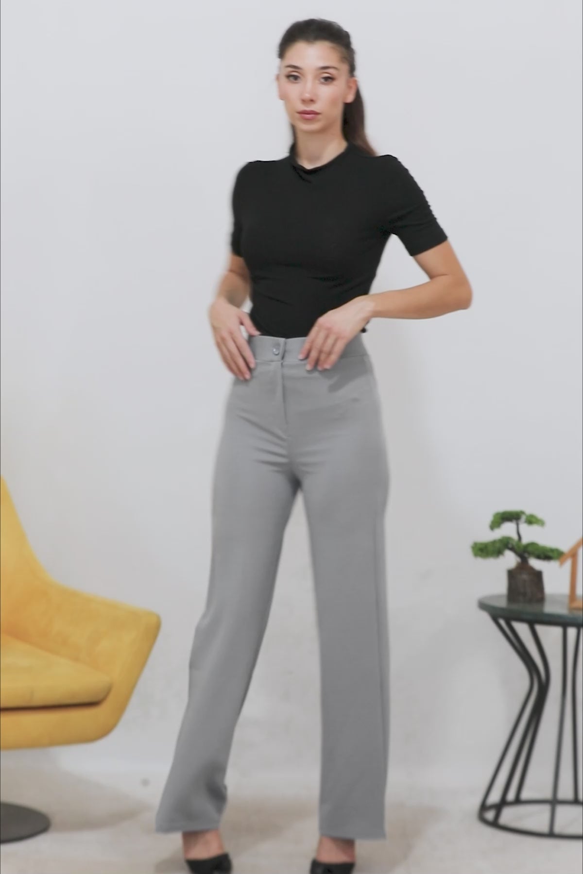 Kadın Palazzo Krep Kumaş Pantolon Gri