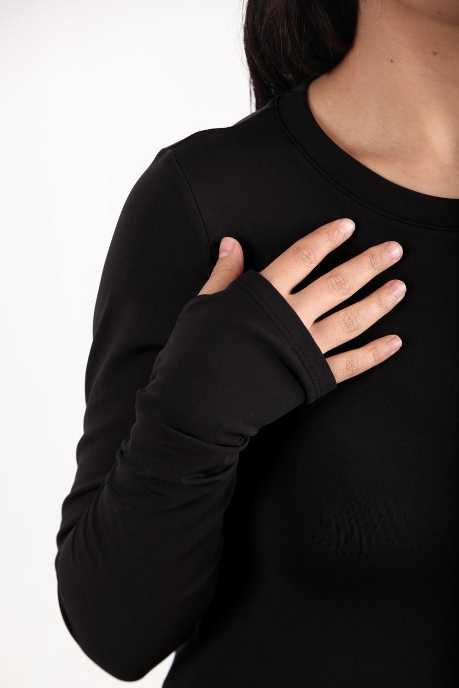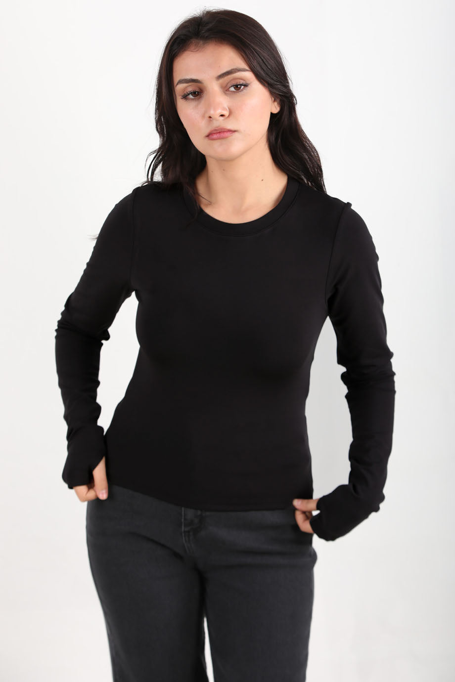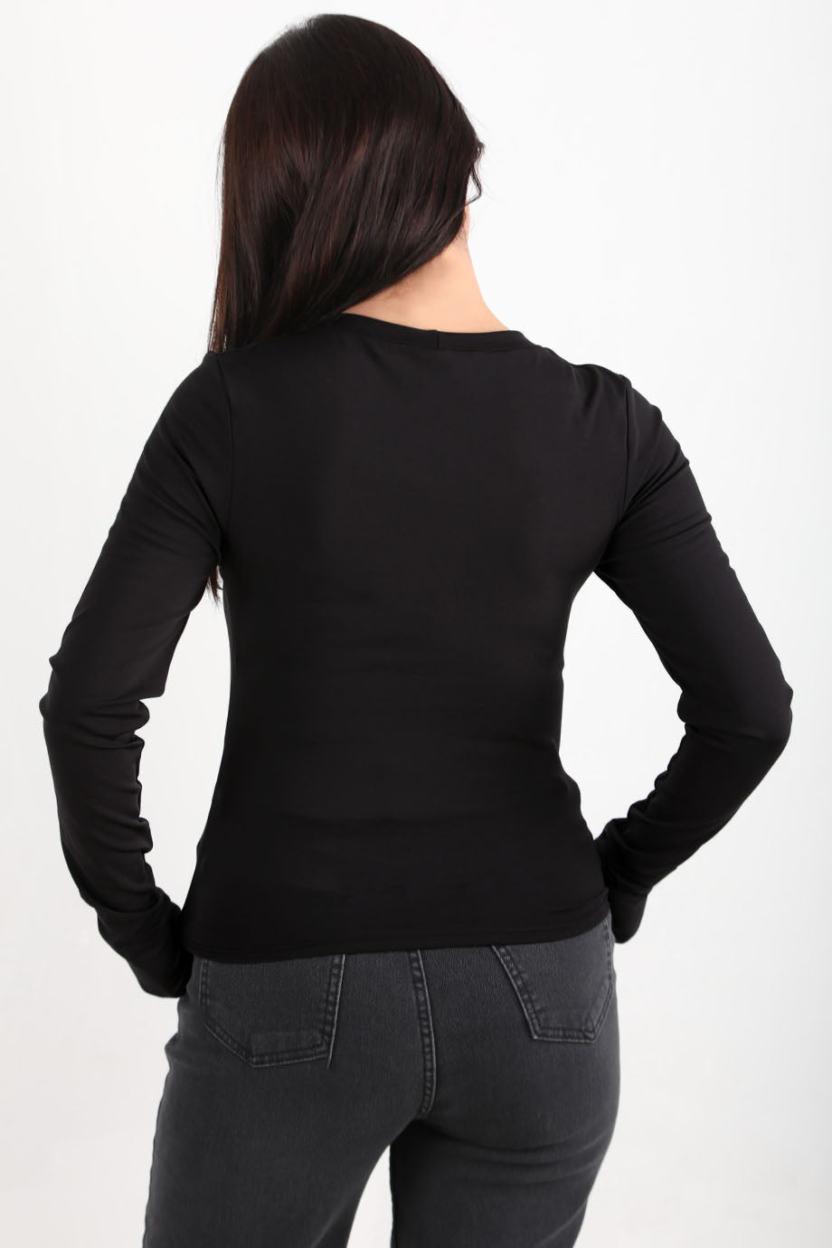 Gripelle Kadın Parmak Geçmeli Bisiklet Yaka Bluz Siyah