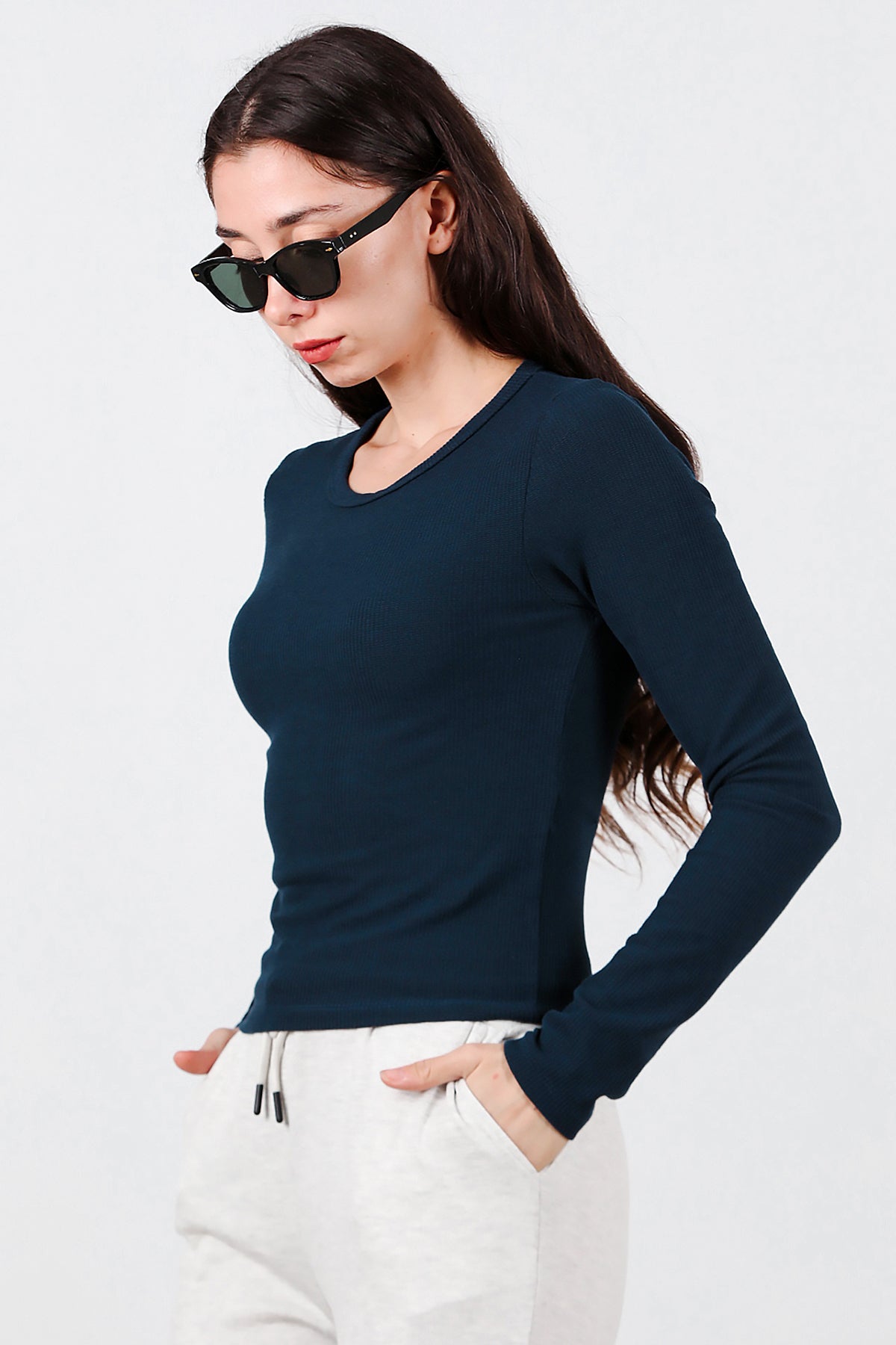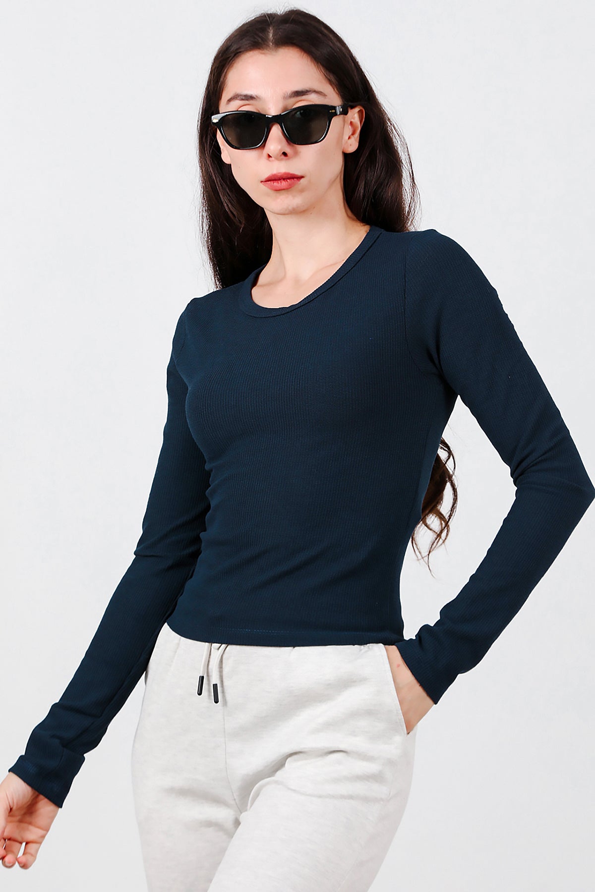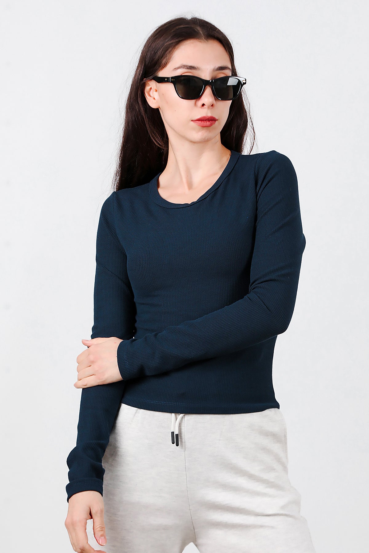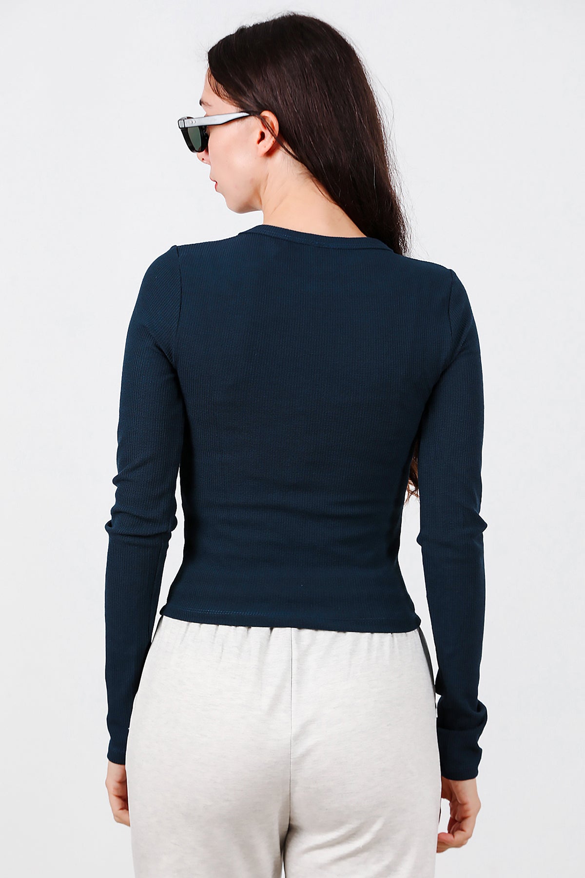 Kadın Parmak Geçmeli Waffle Bluz Lacivert