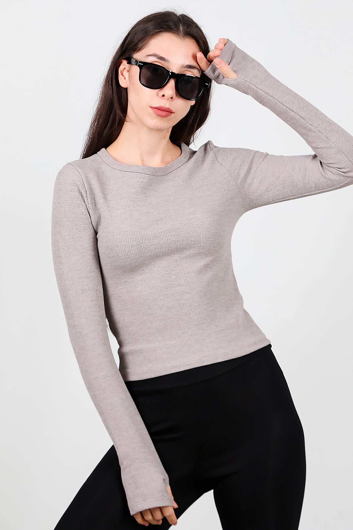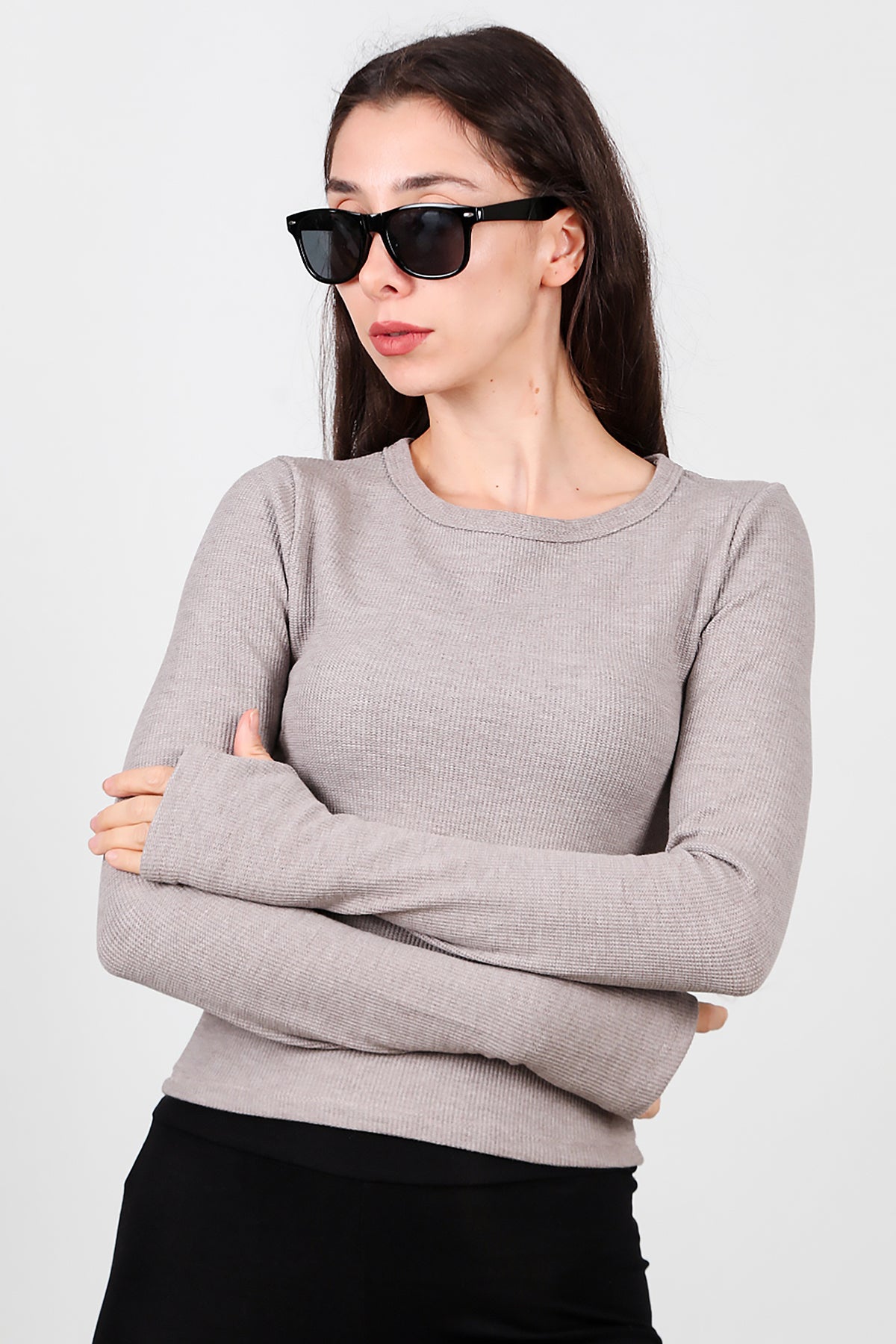 Kadın Parmak Geçmeli Waffle Bluz Vizon