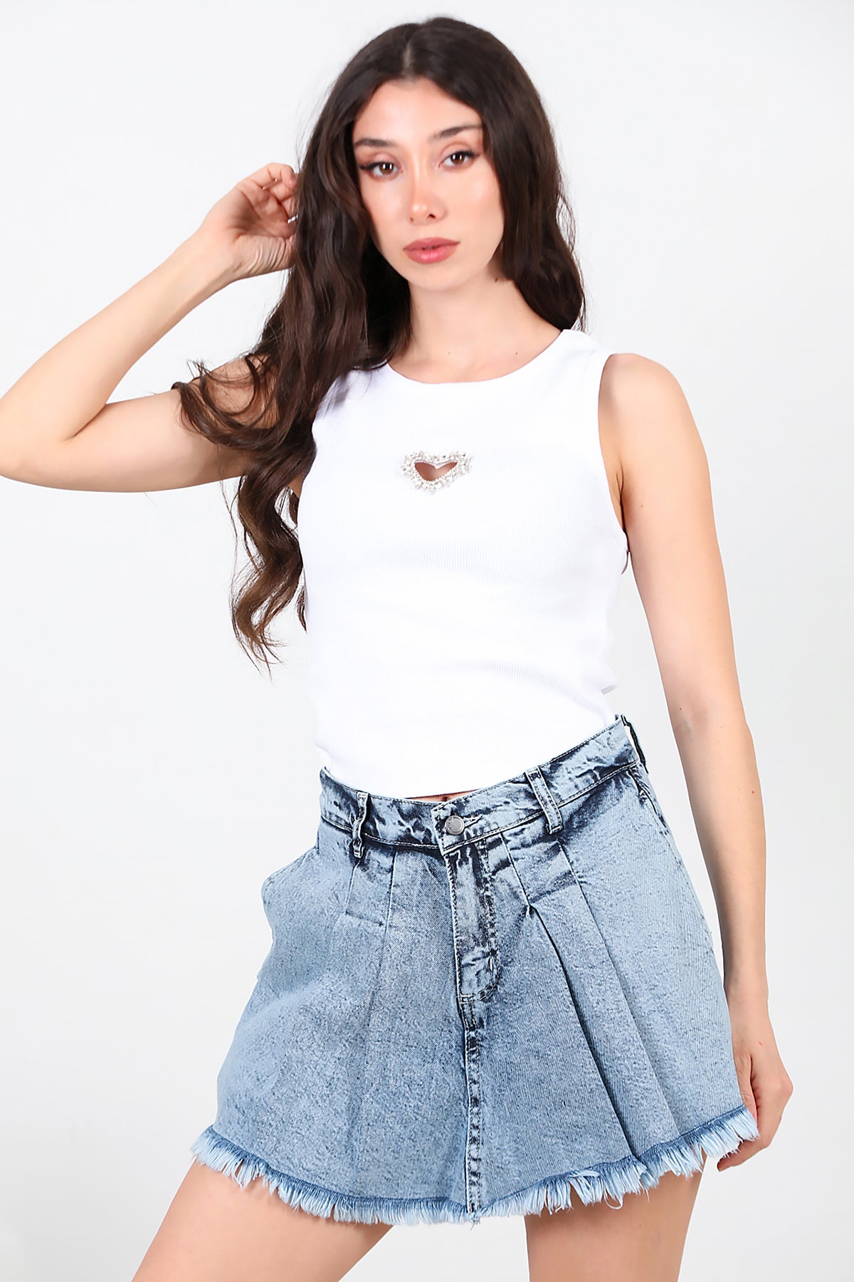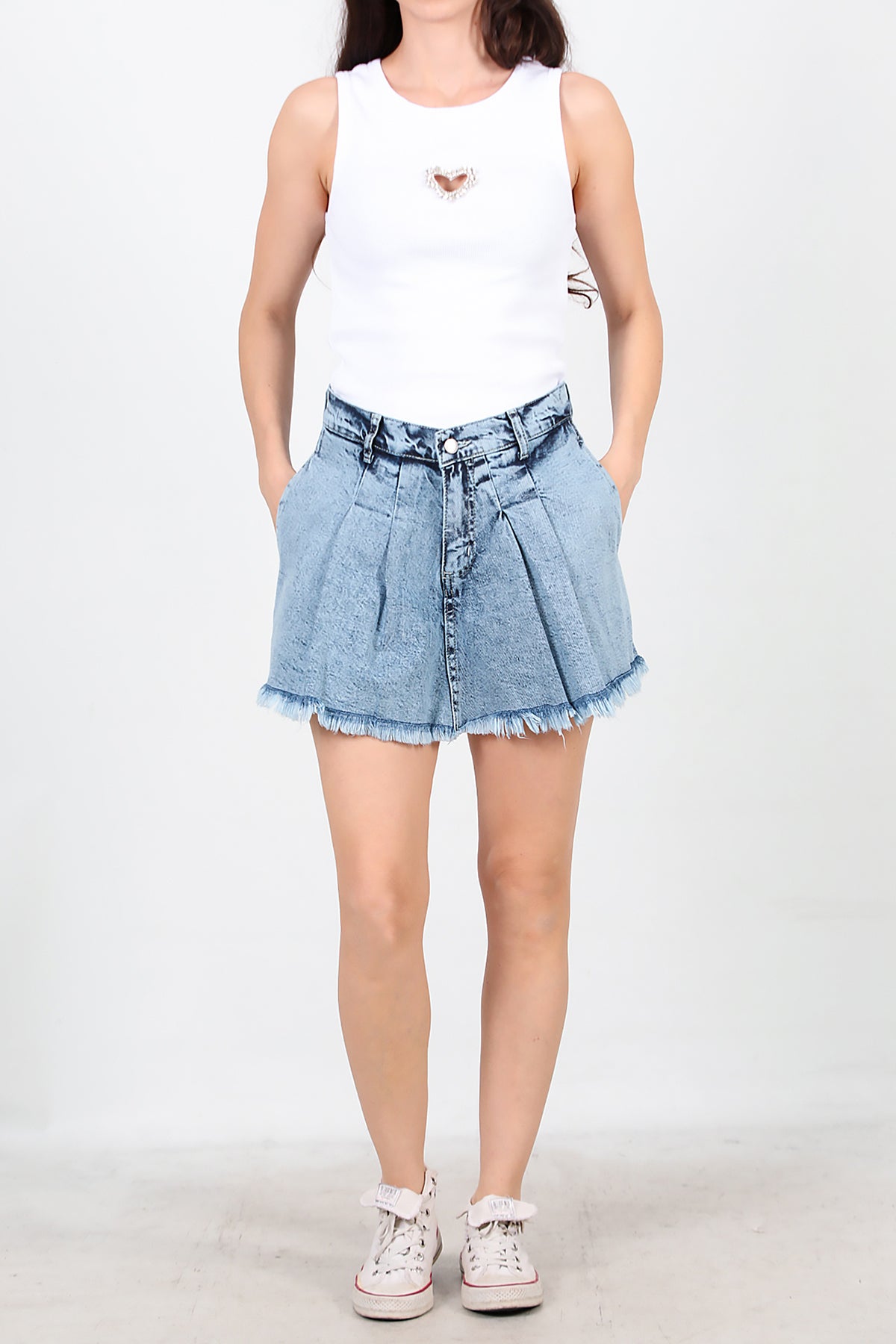 Kadın Pileli Kot Şort Etek Kot