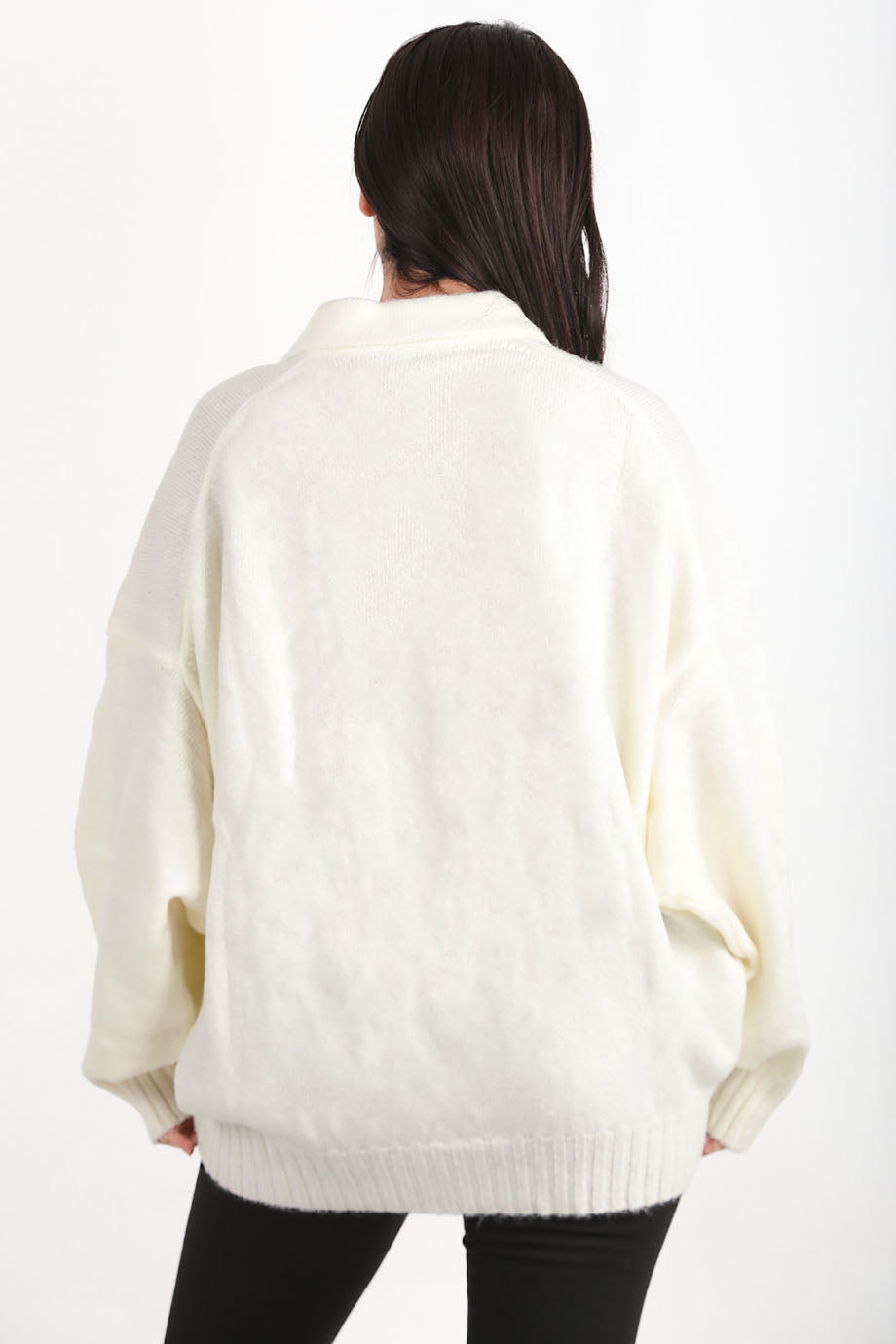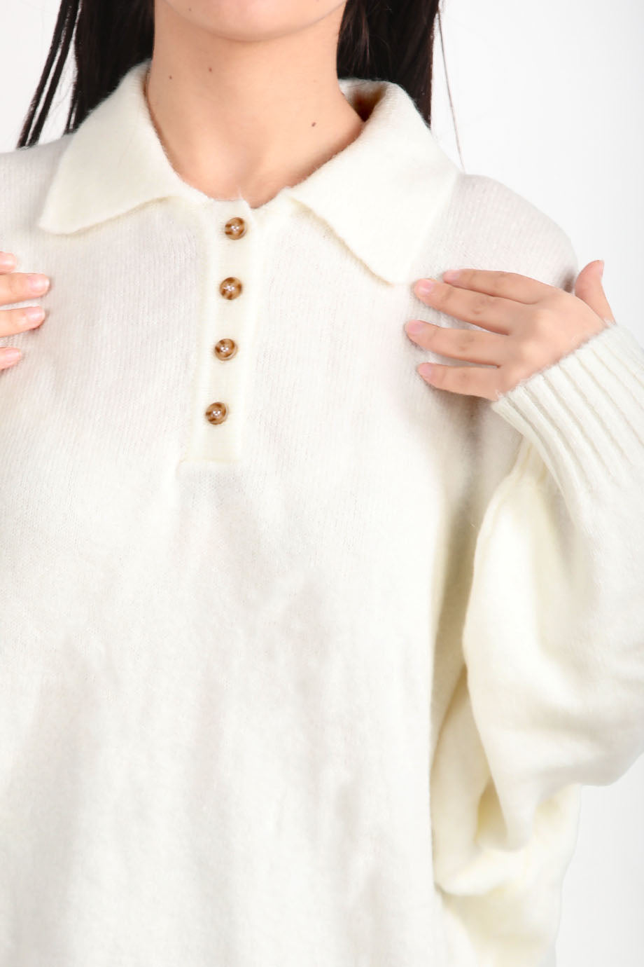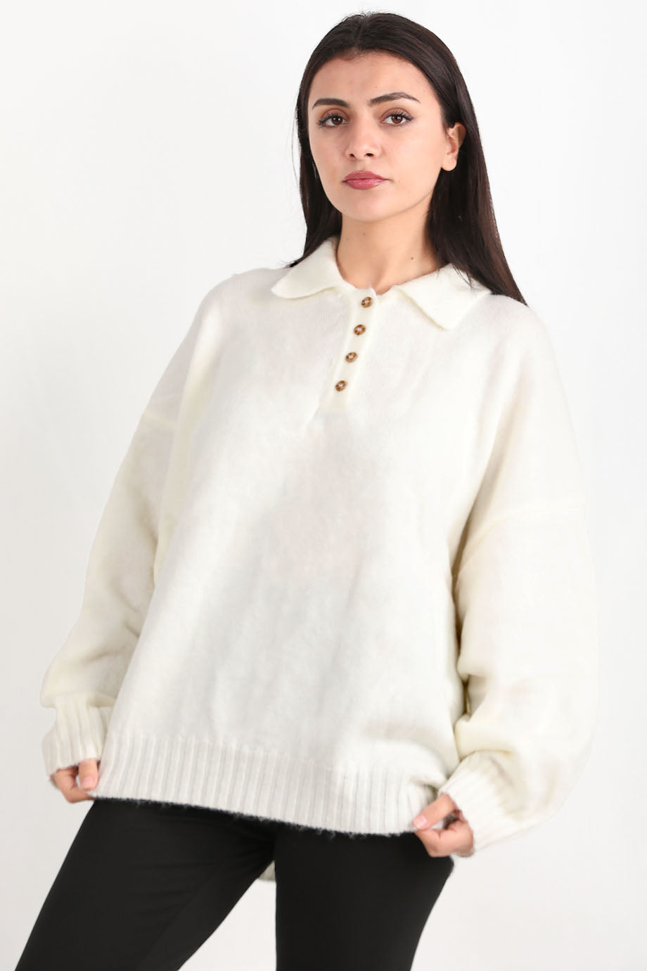 Poline Kadın Polo Yaka Triko Kazak Ekru