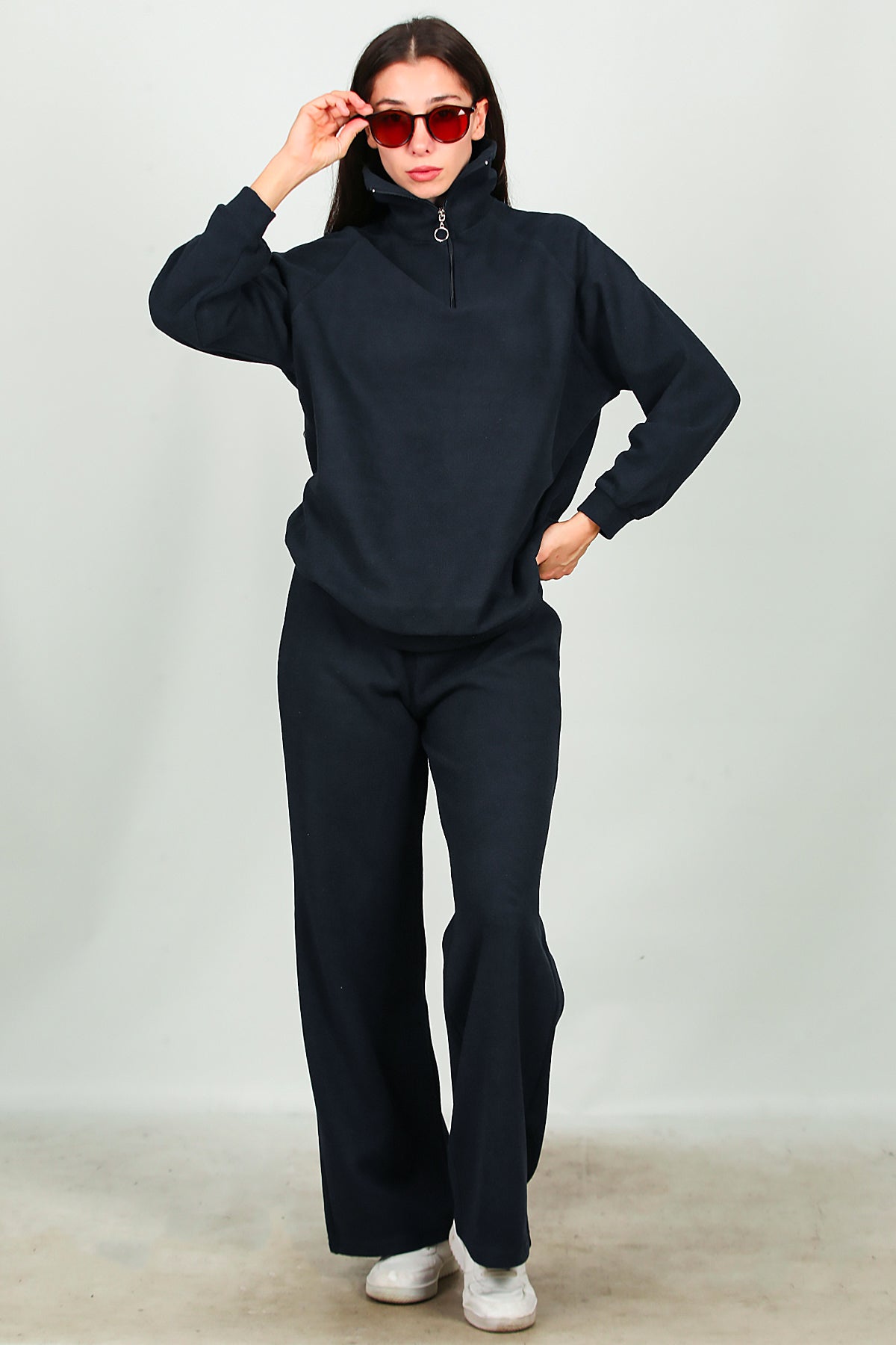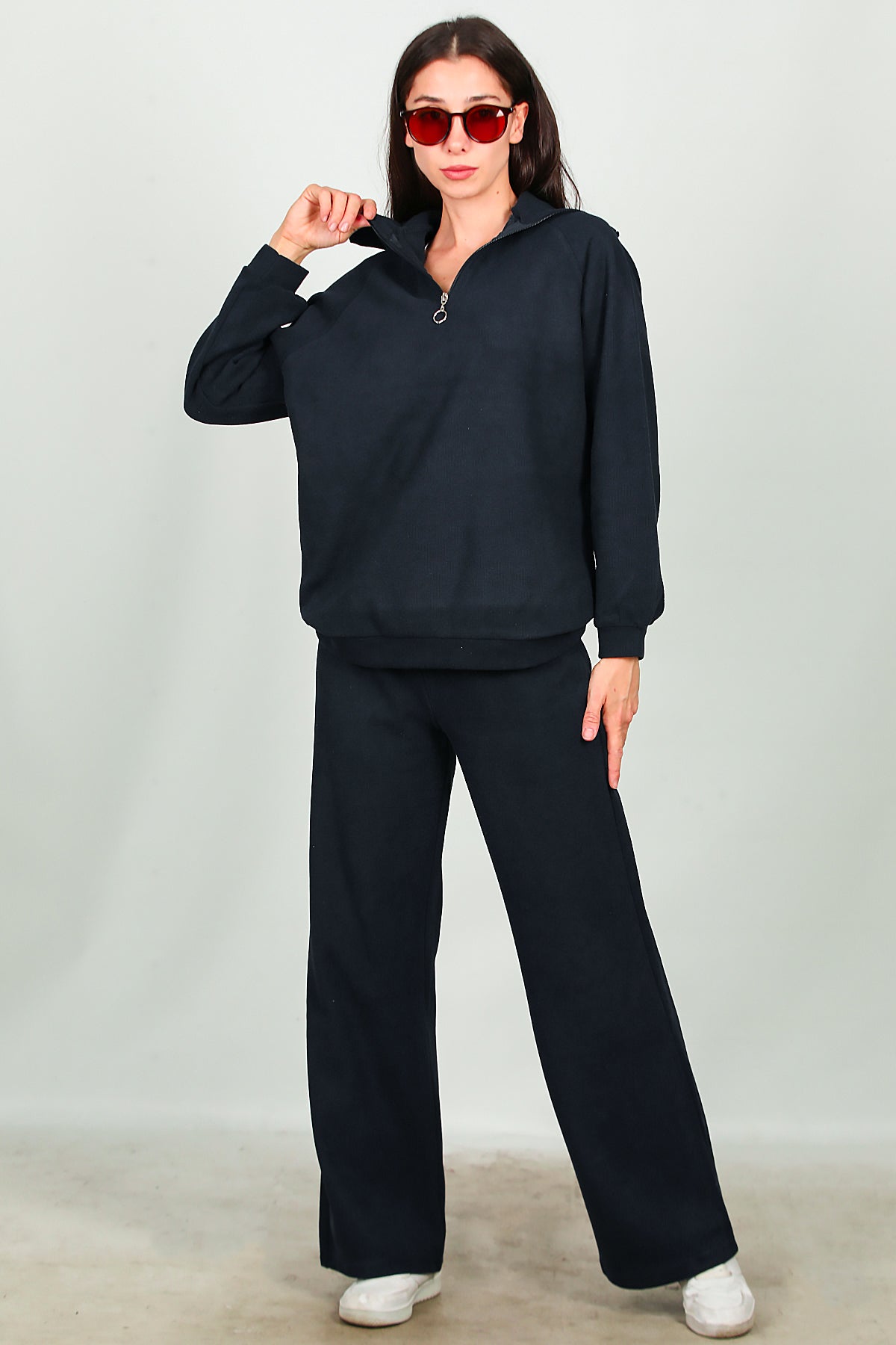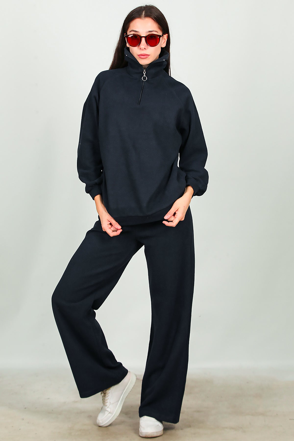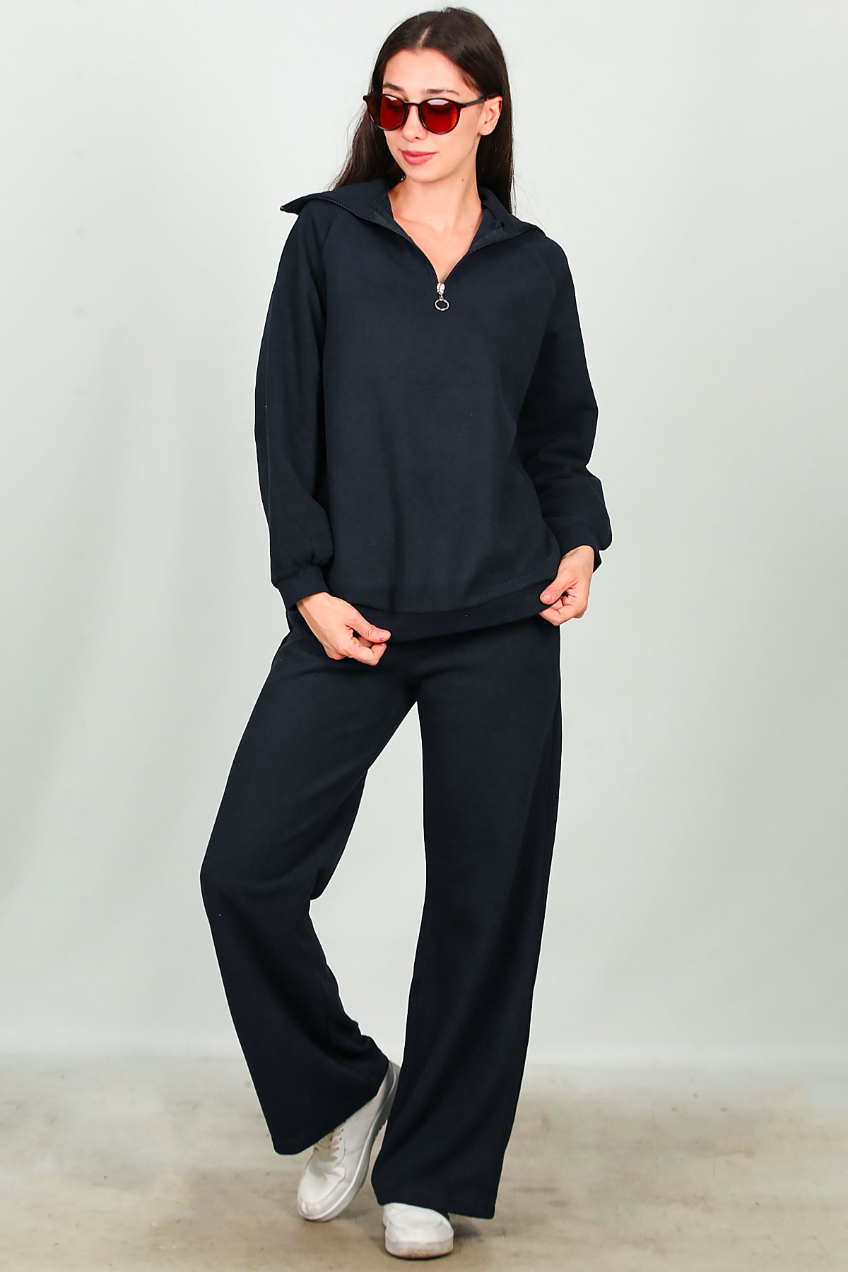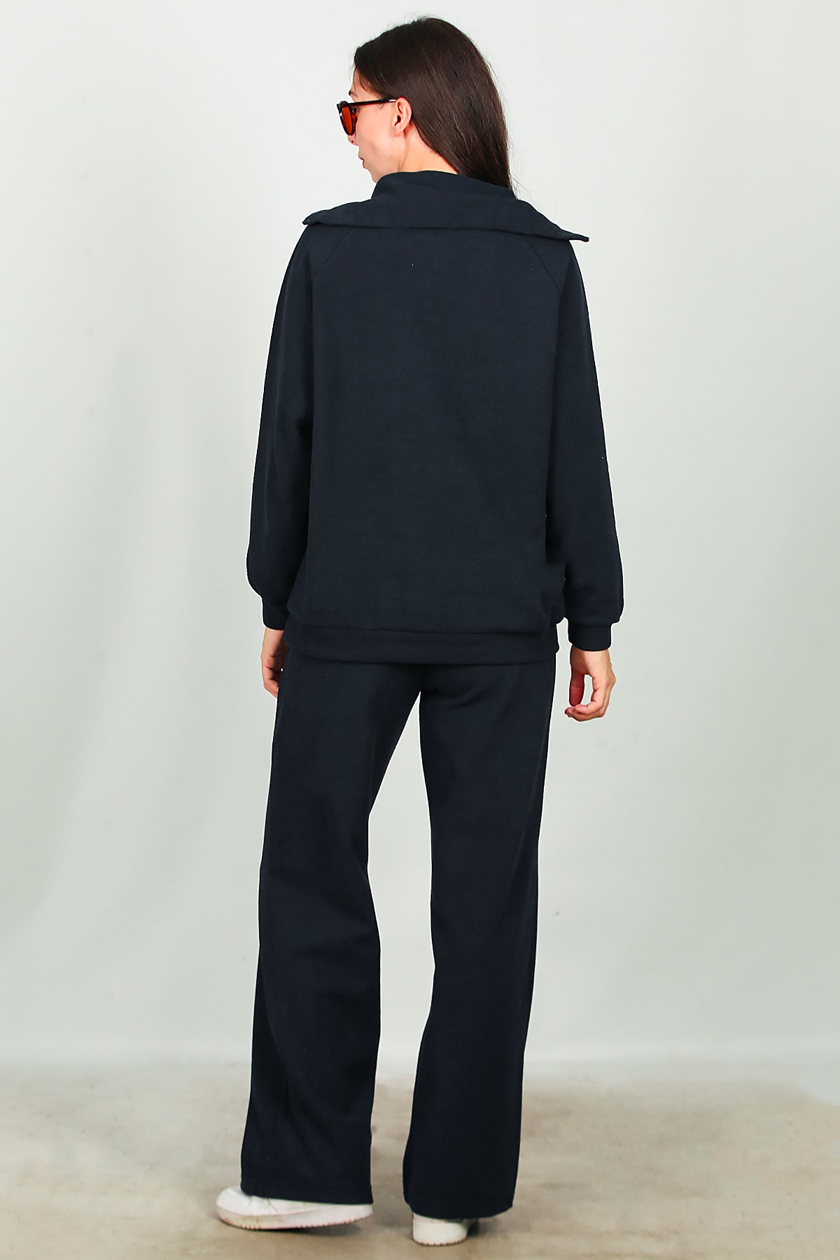 Kadın Polo Yaka Yarım Fermuarlı İkili Takım Lacivert