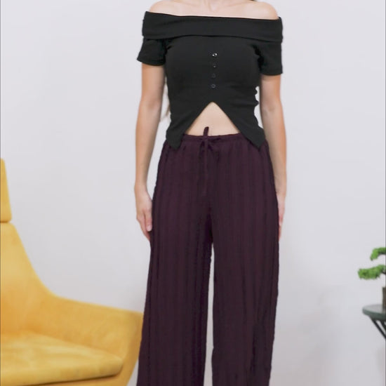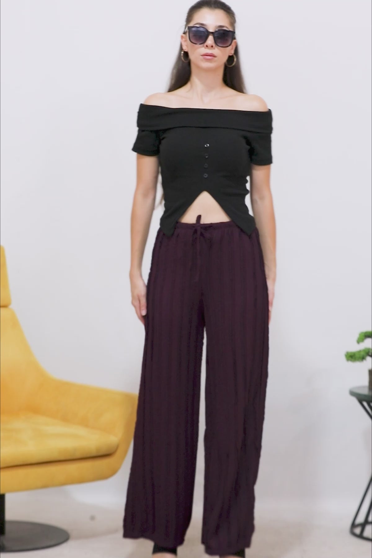 Kadın Püsküllü Bol Paça Pantolon Mürdüm