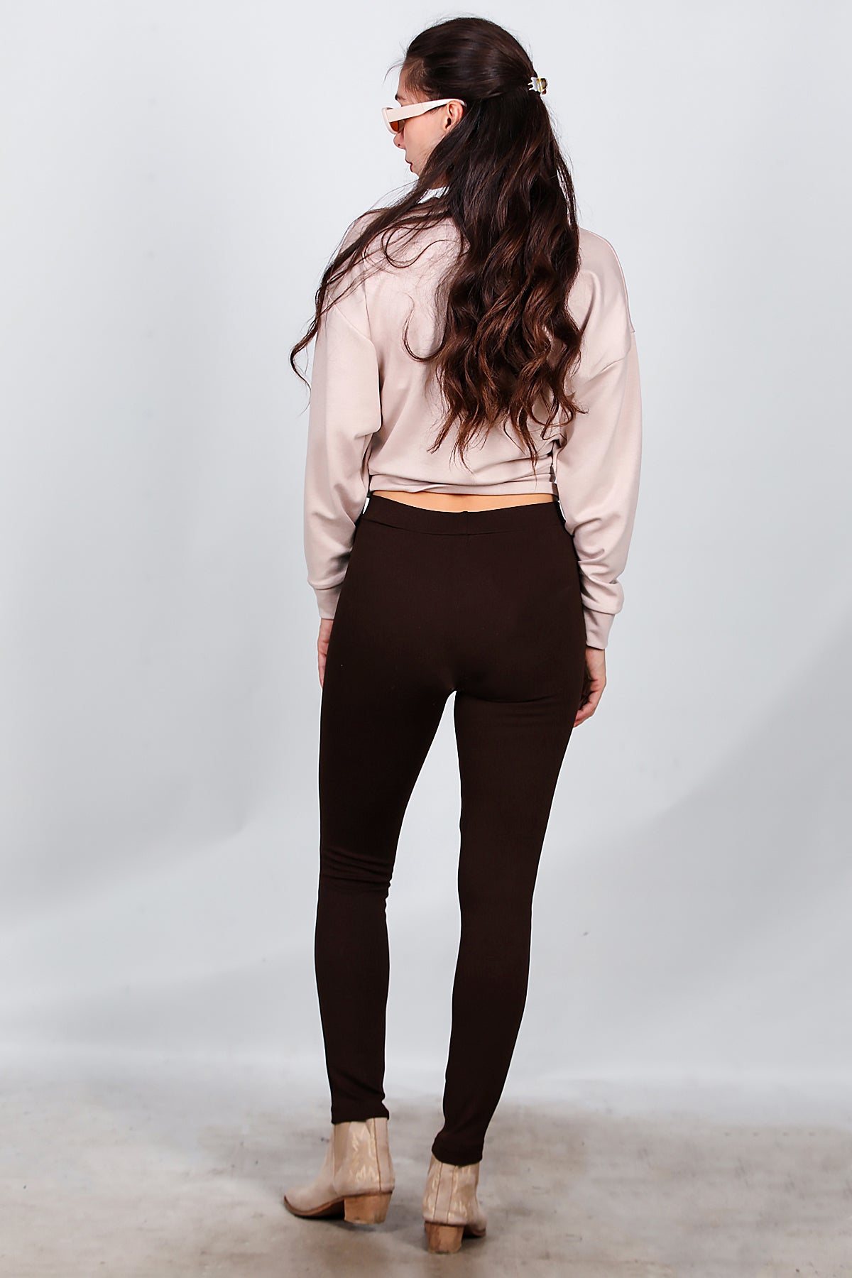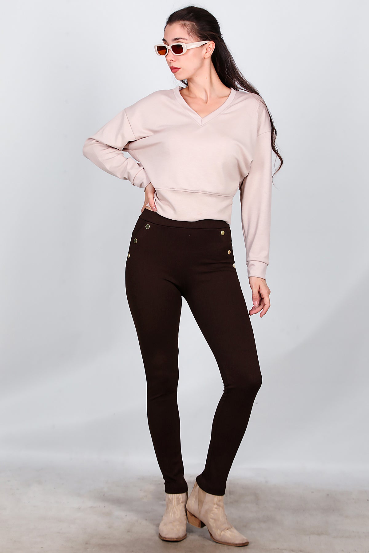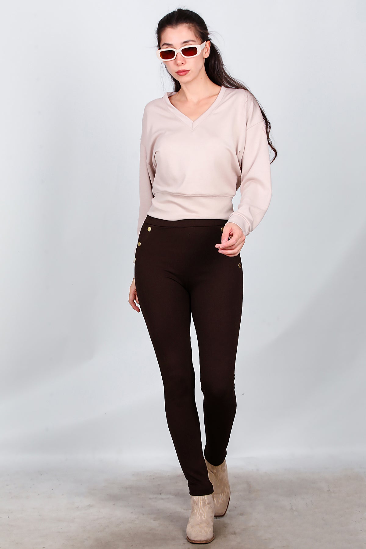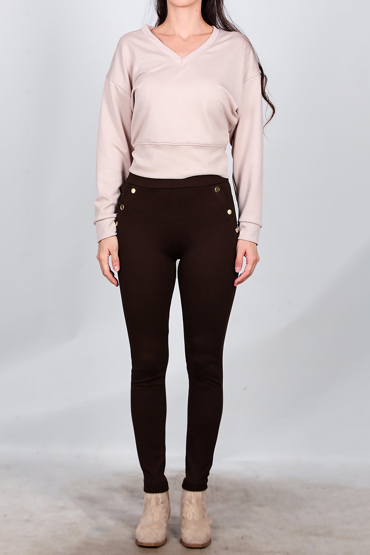 Kadın Sahte Cep Düğme Detay Tayt Kahverengi