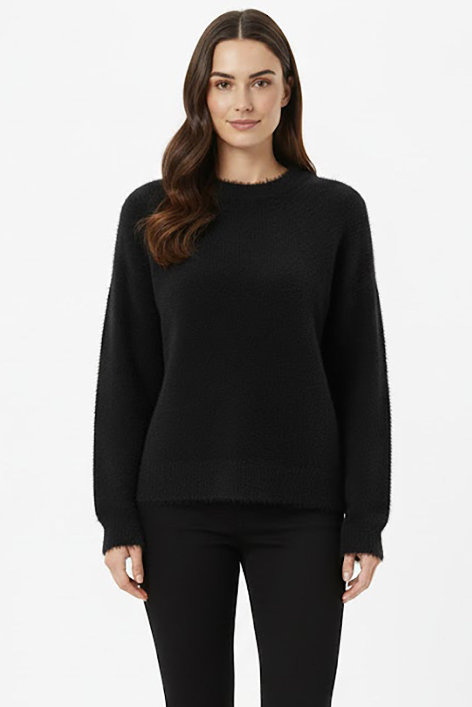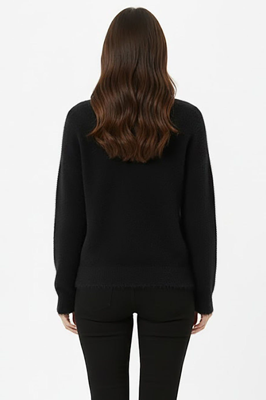 Kadın Sakallı Bisiklet Yaka Kazak Siyah