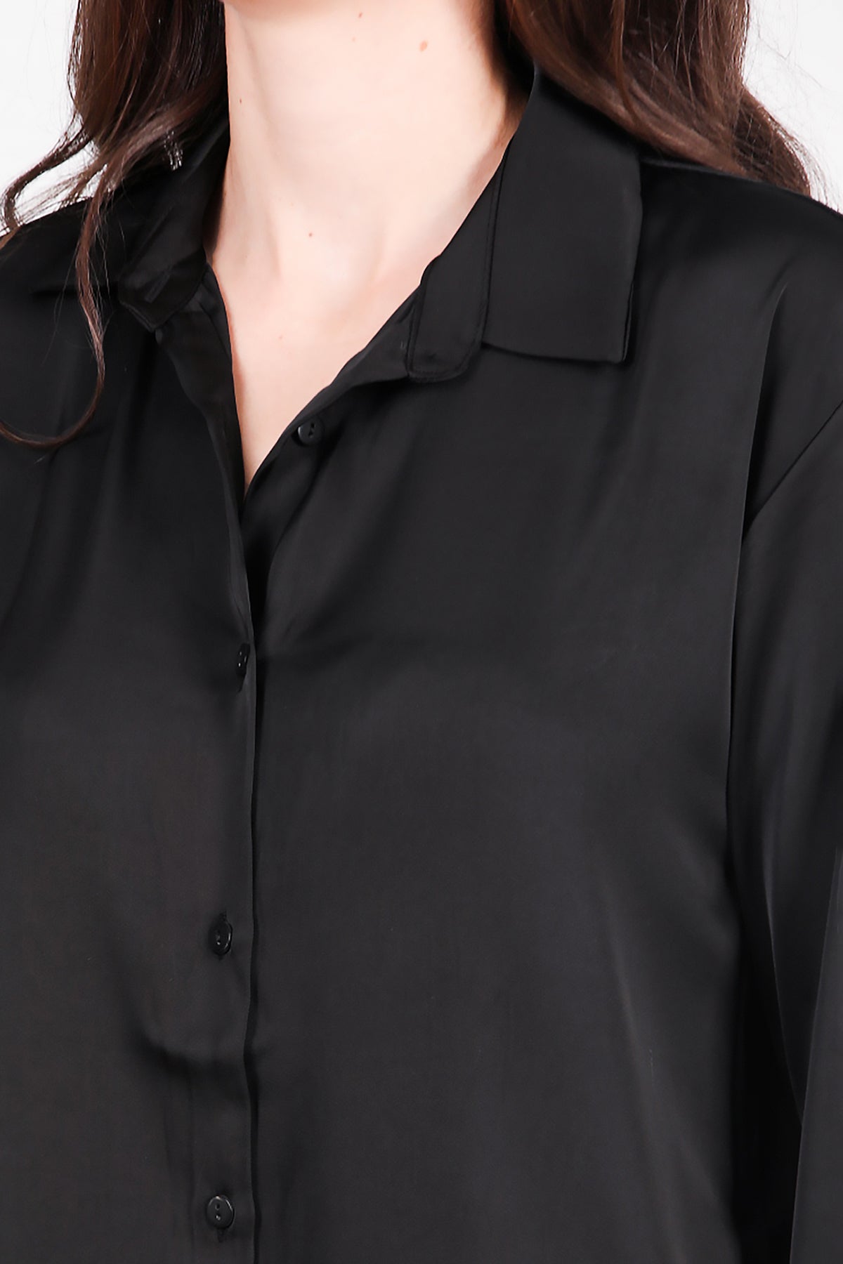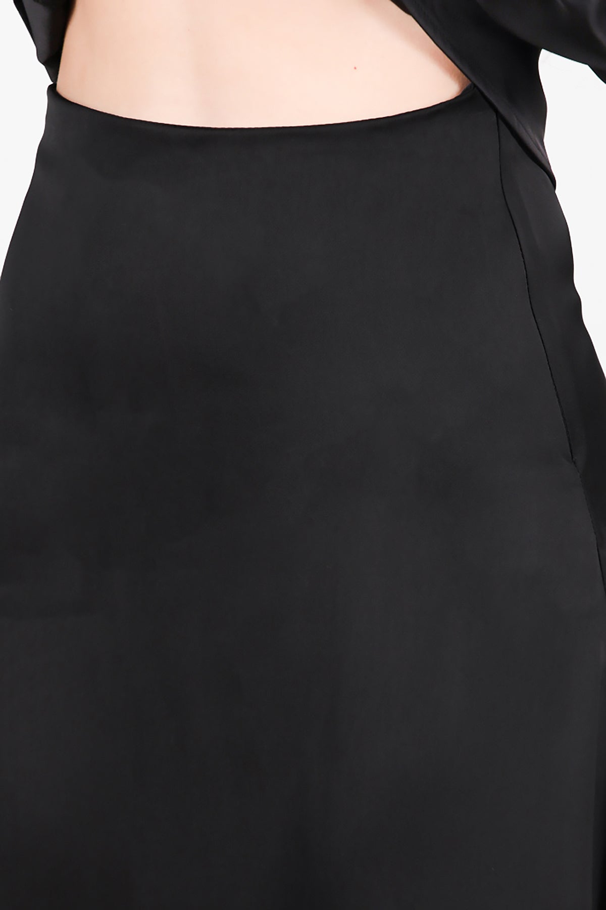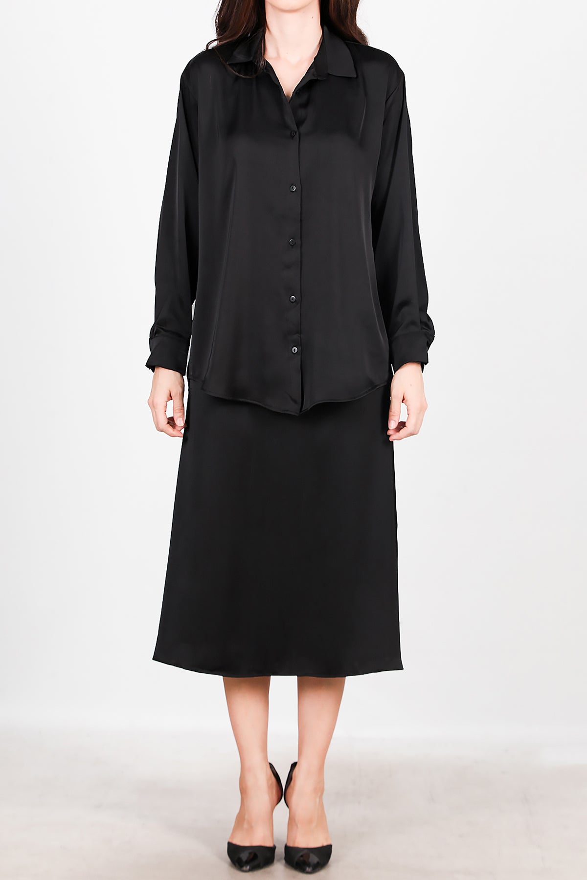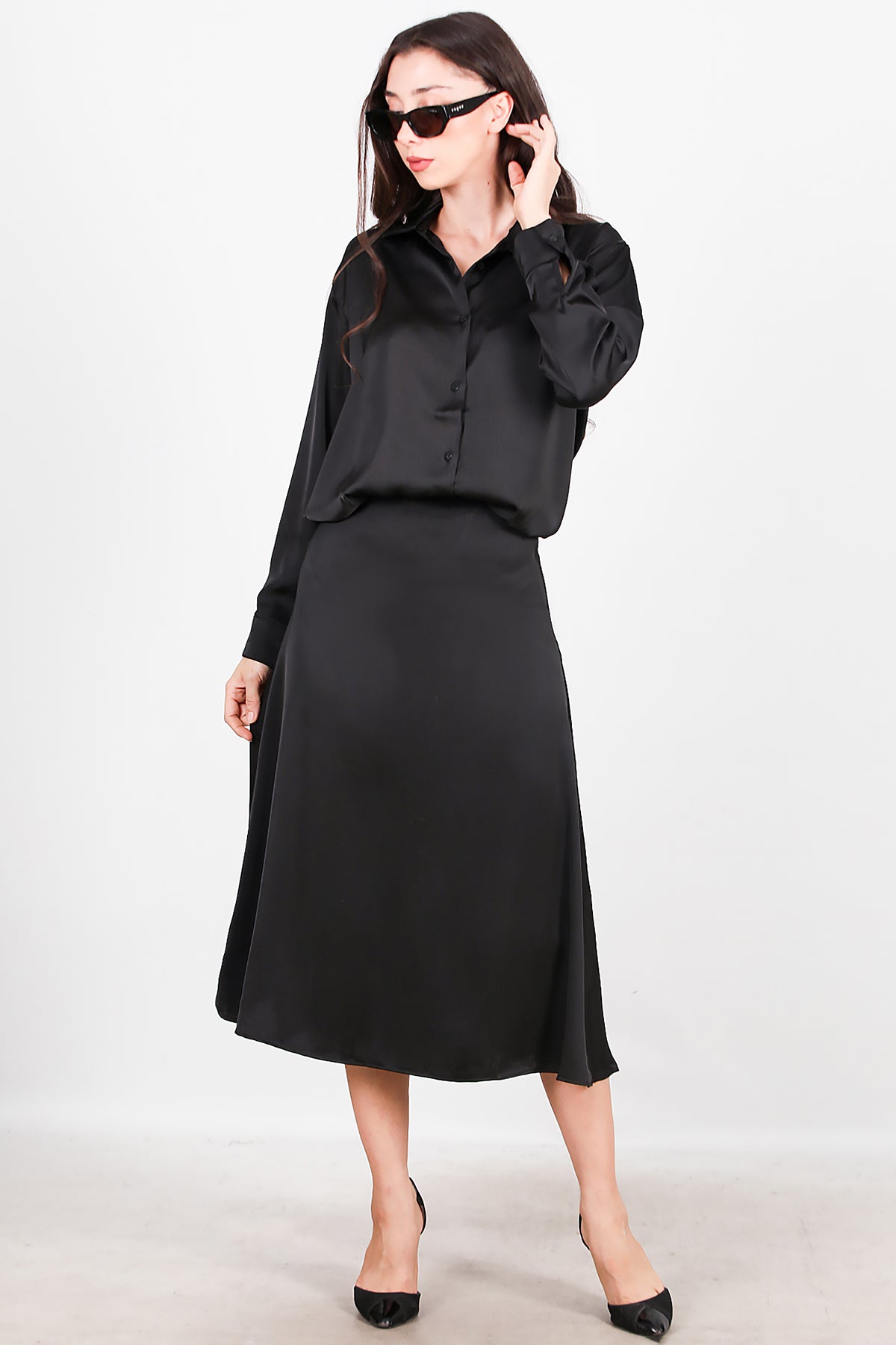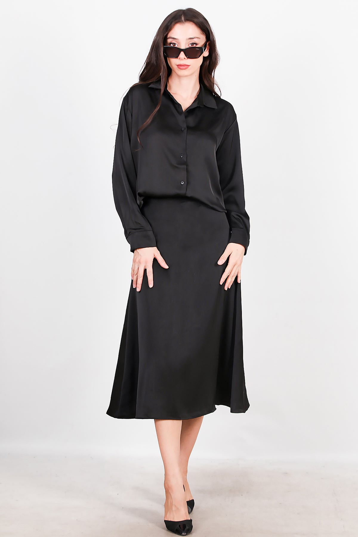 Kadın Saten Gömlek Etek Takımı Siyah