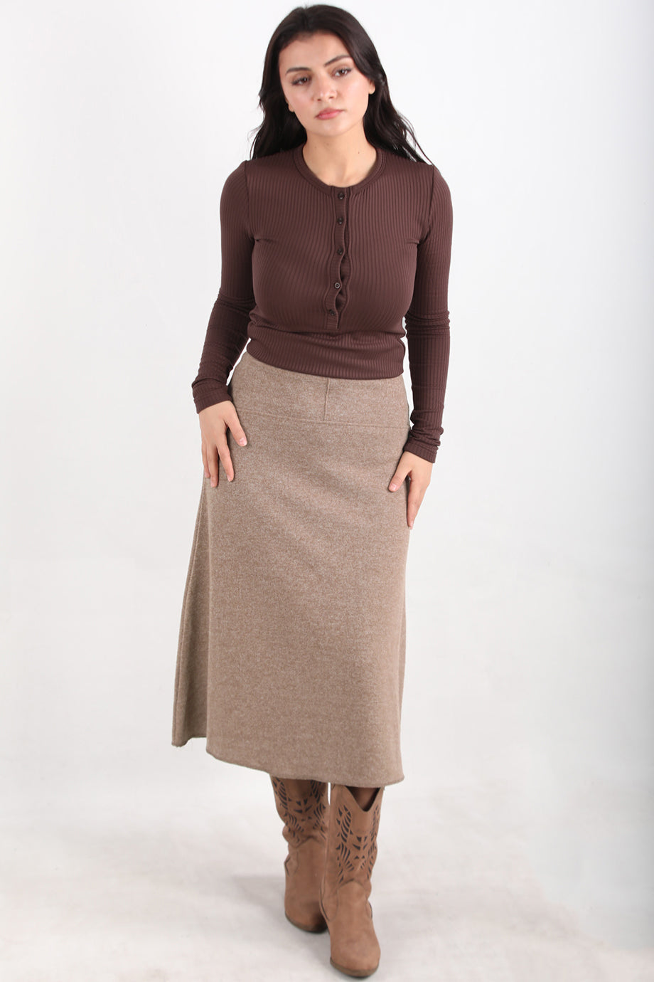 Selamidi Kadın Selanik Midi Boy Etek Bej