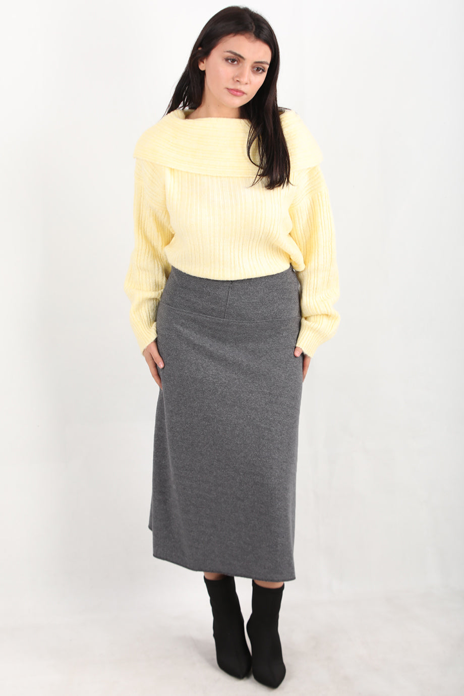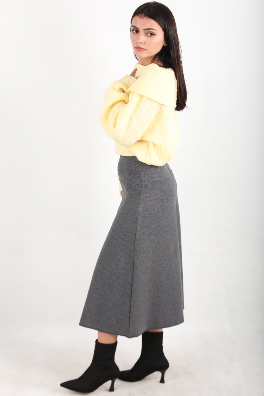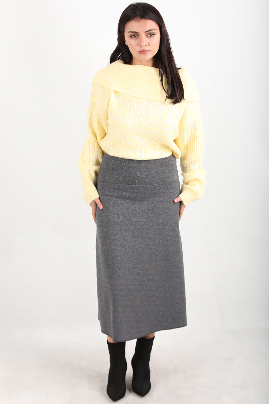 Selamidi Kadın Selanik Midi Boy Etek Gri