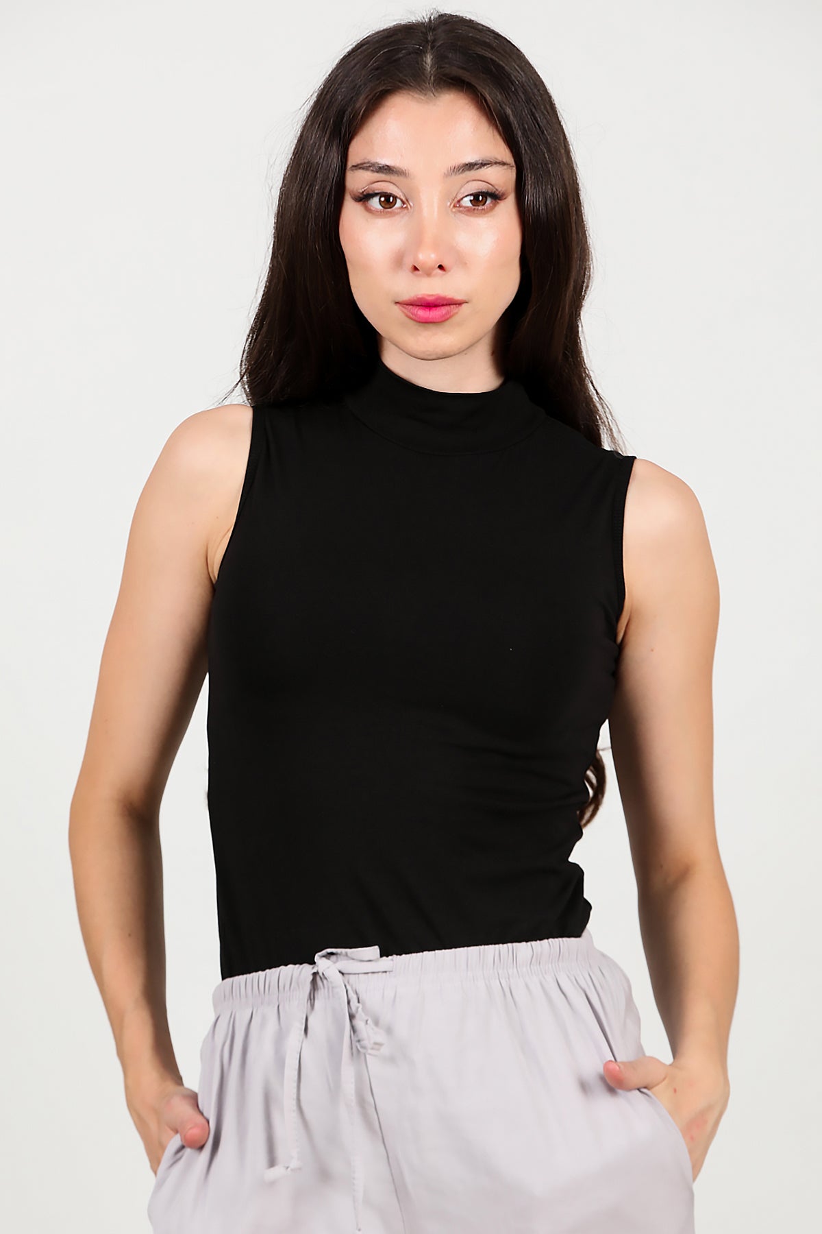 Kadın Sıfır Kol Zıbın Atlet Siyah