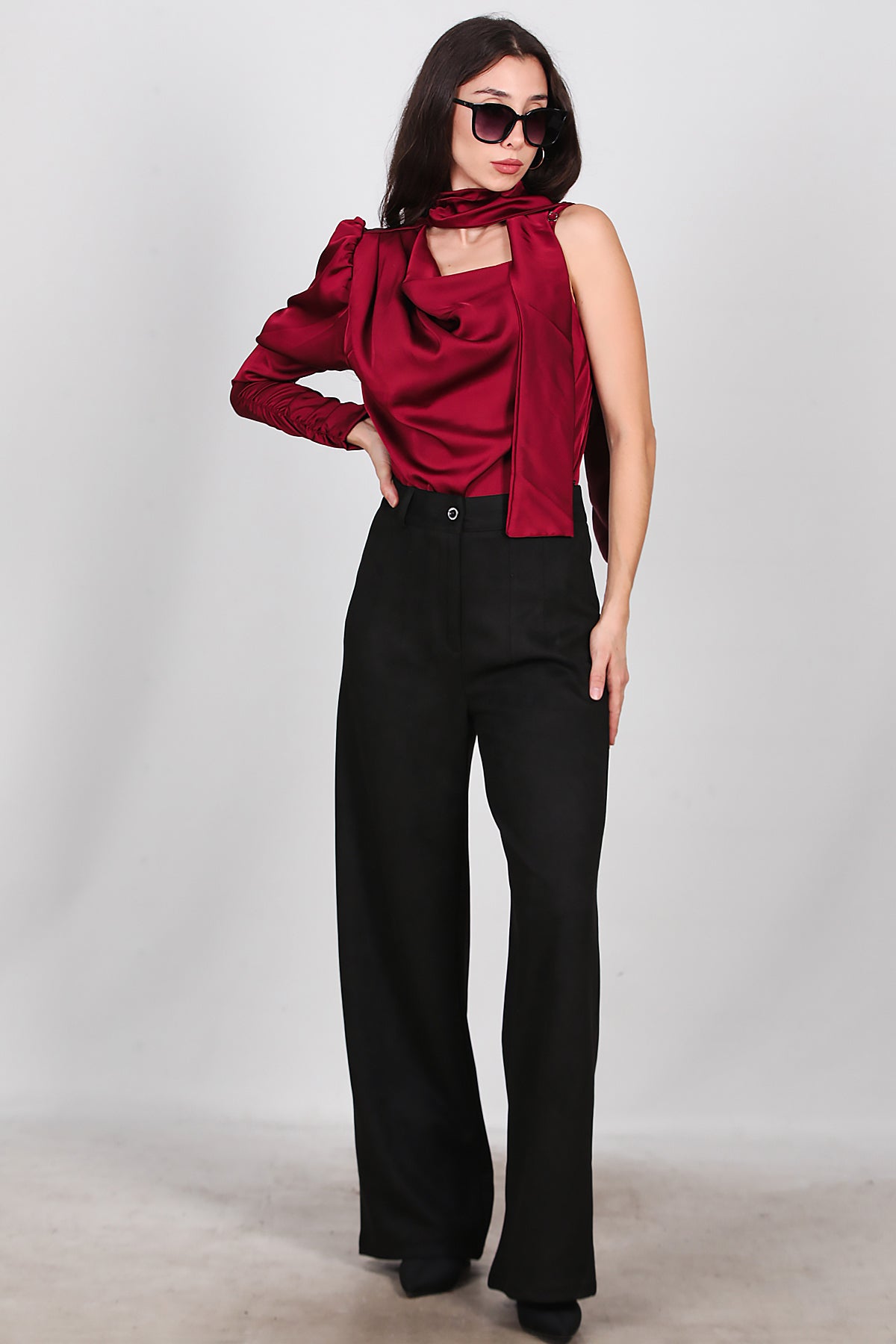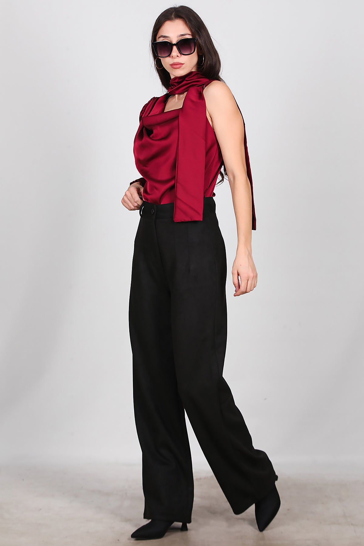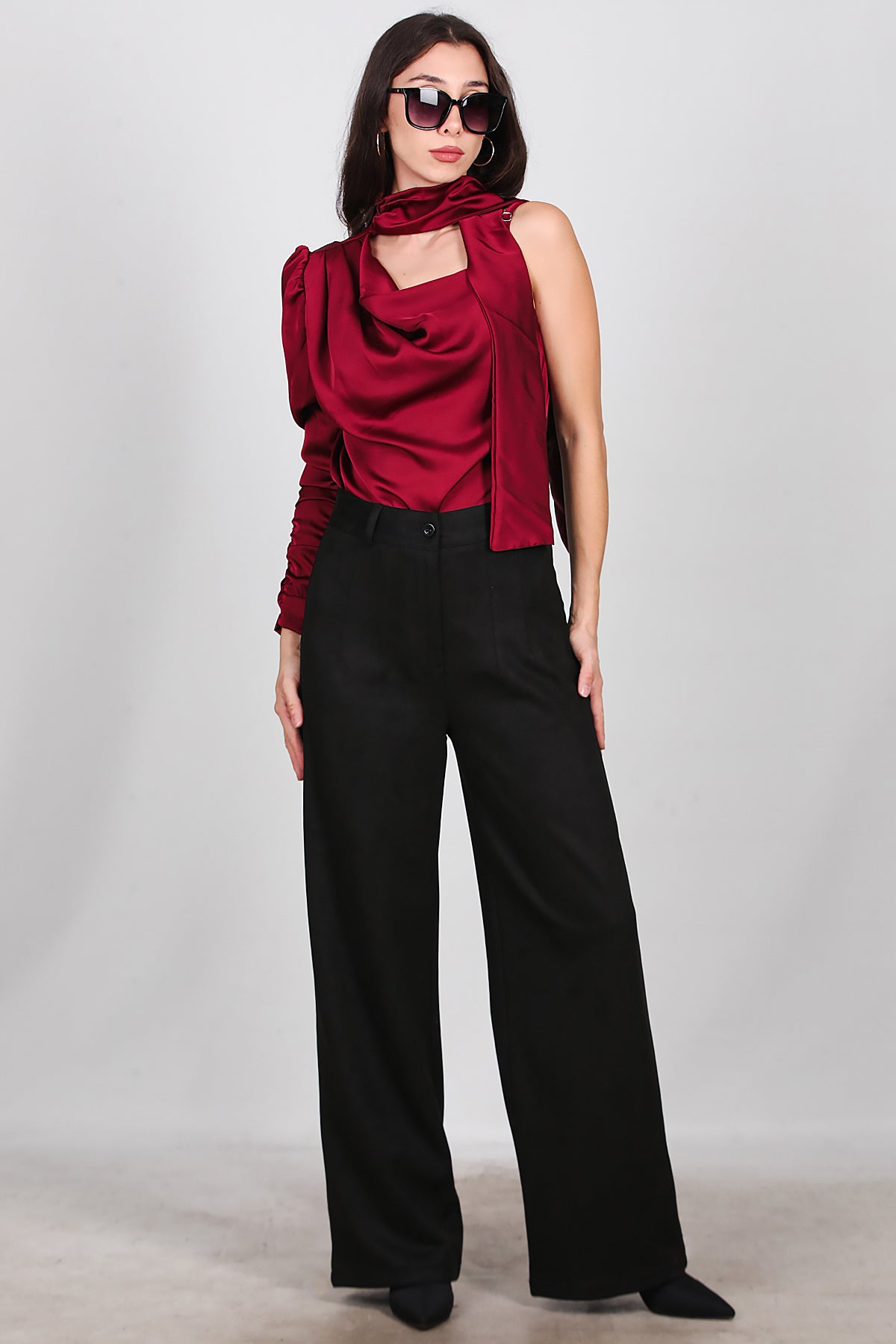 Kadın Süet Pileli Pantolon Siyah
