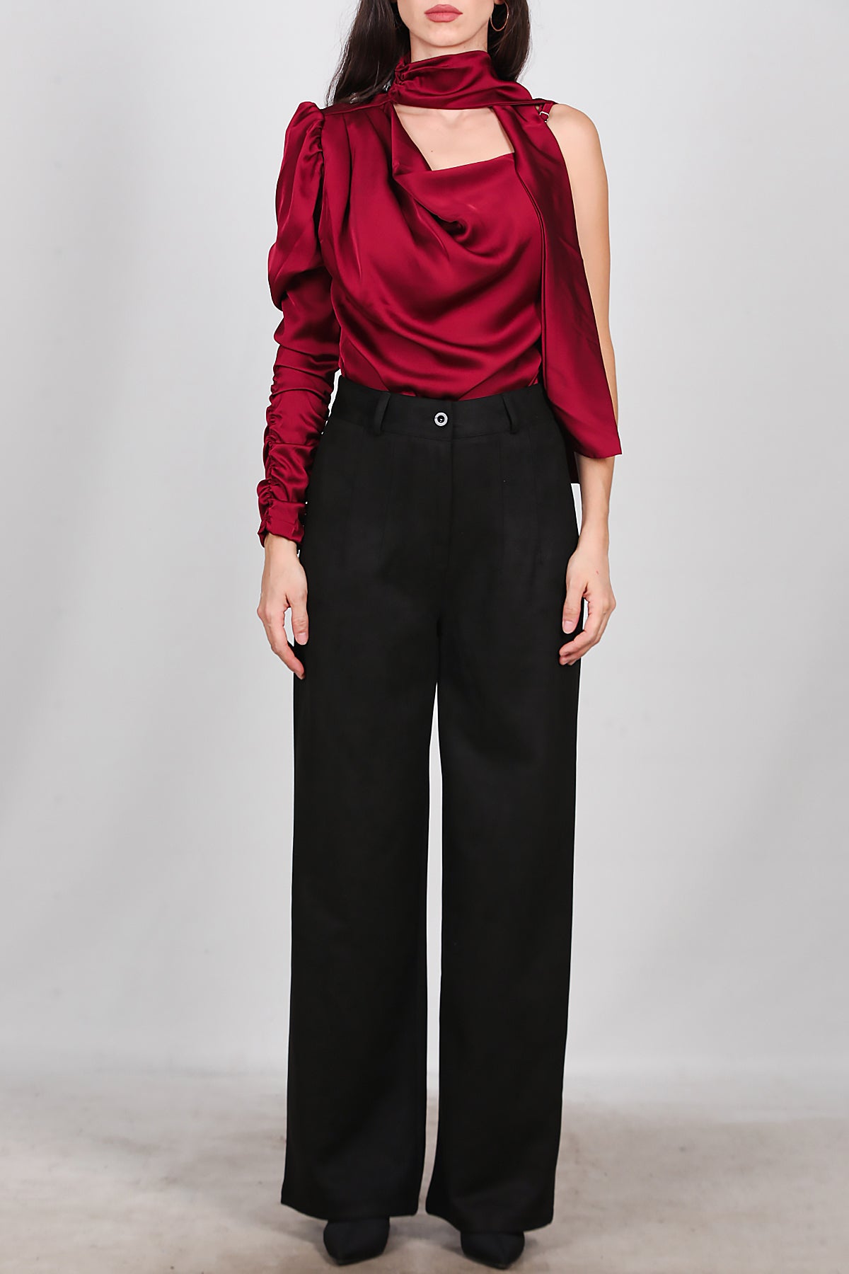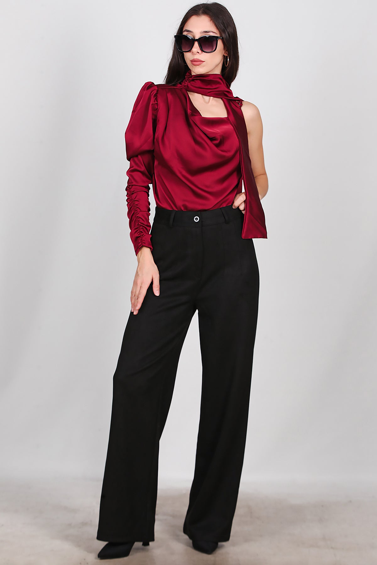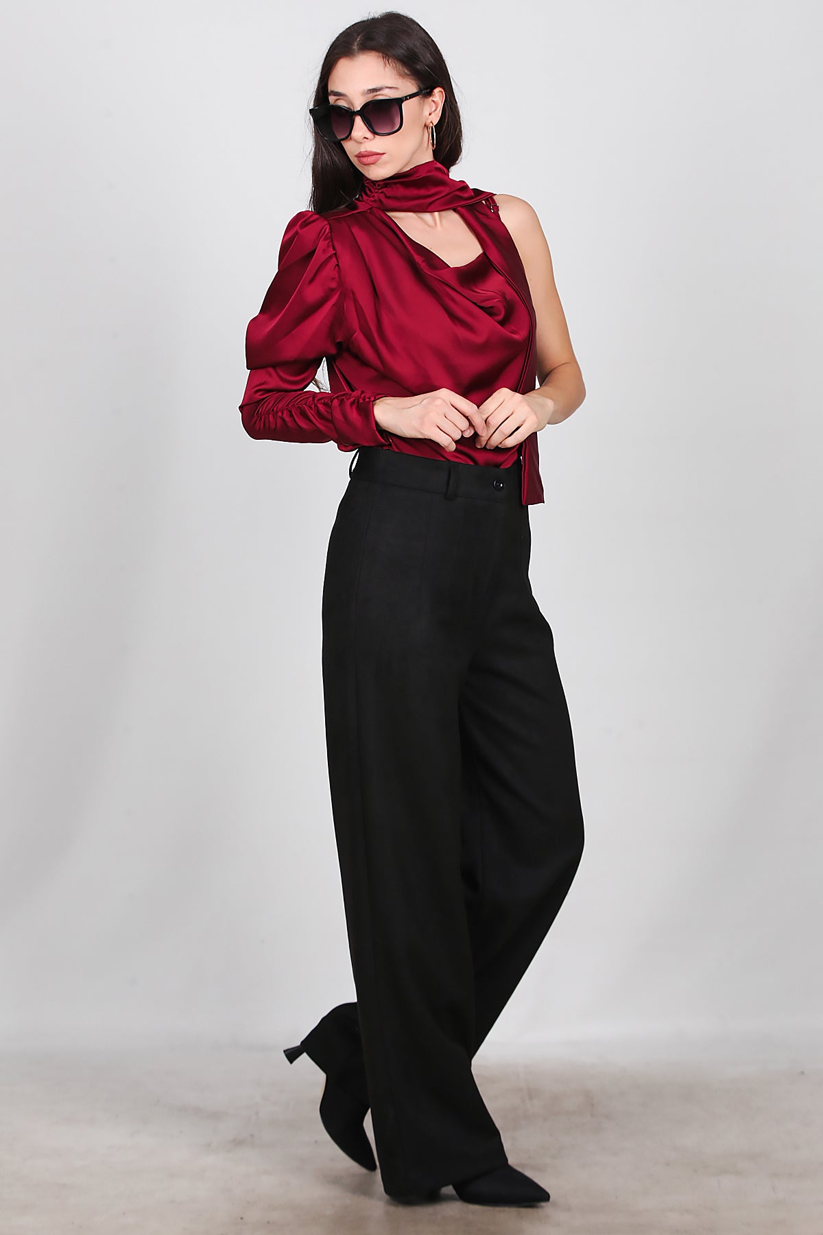 Kadın Süet Pileli Pantolon Siyah