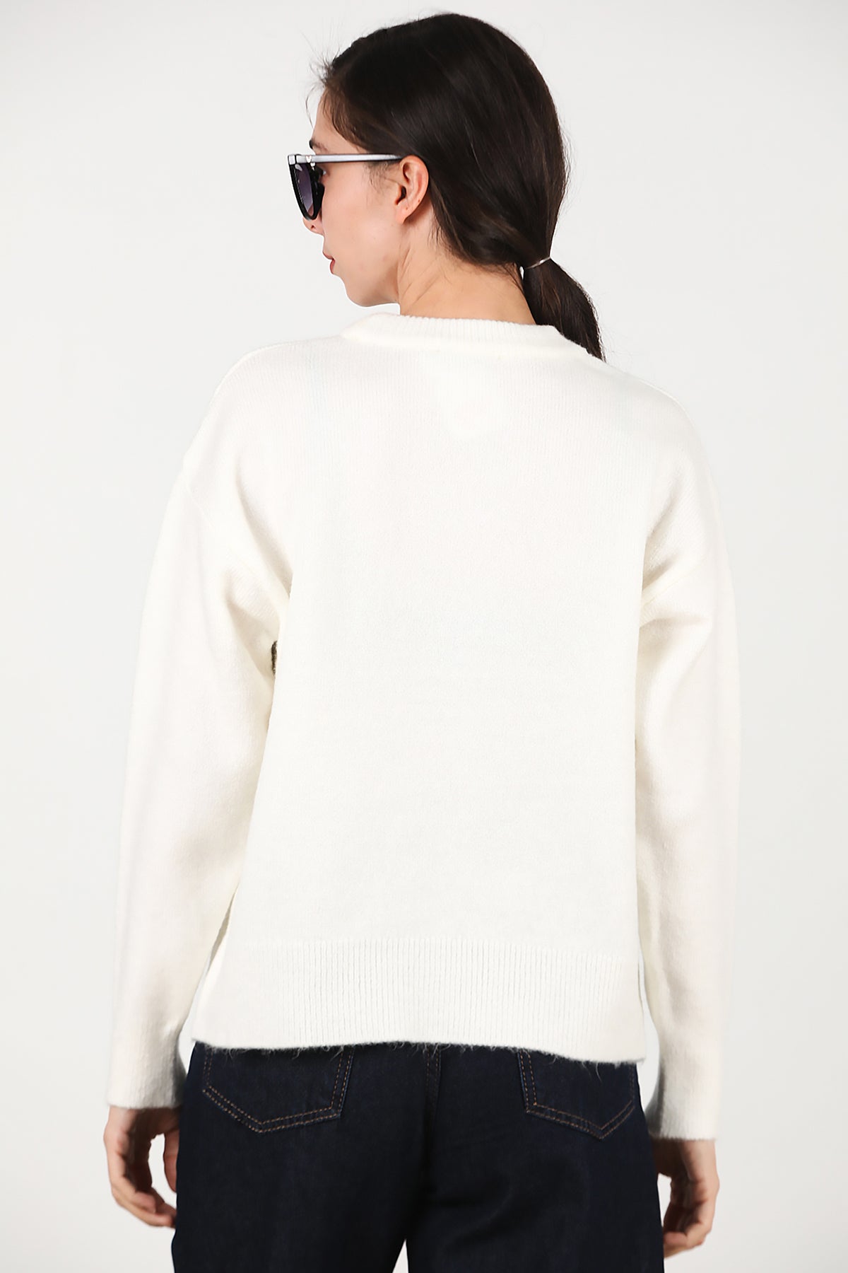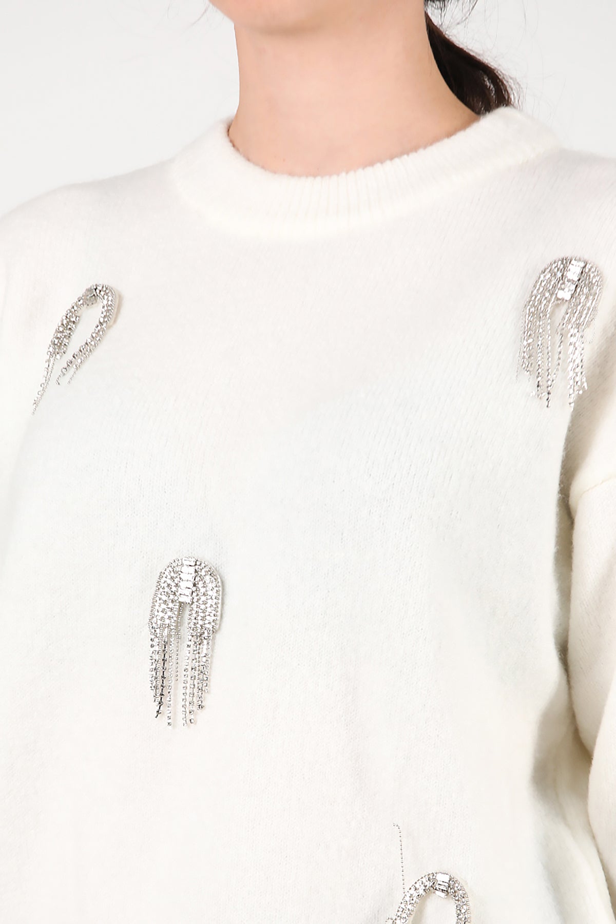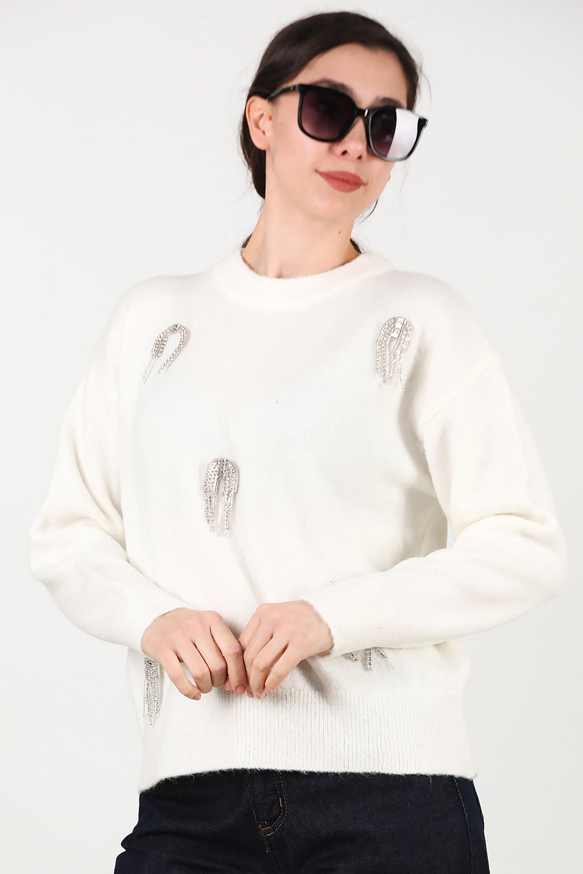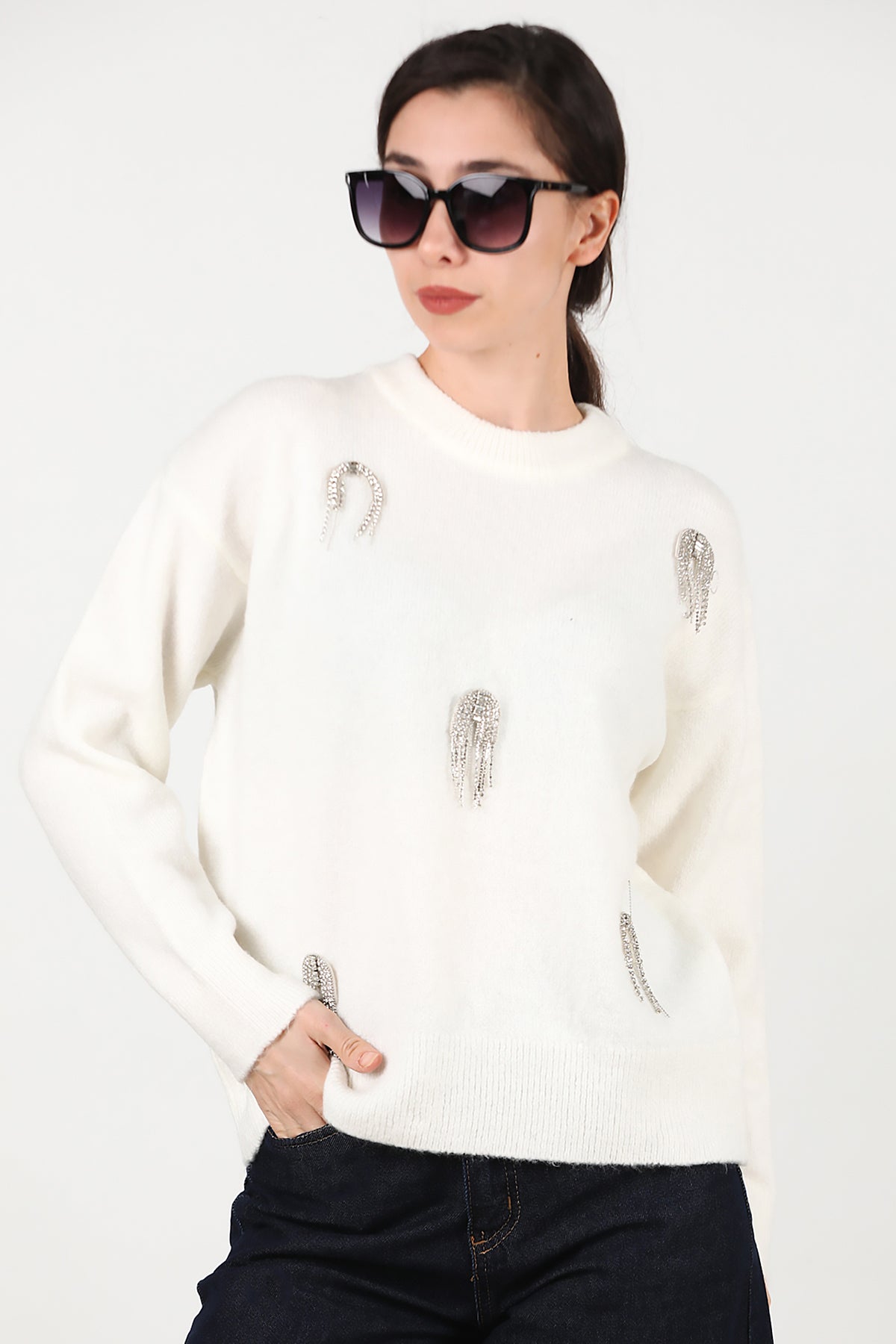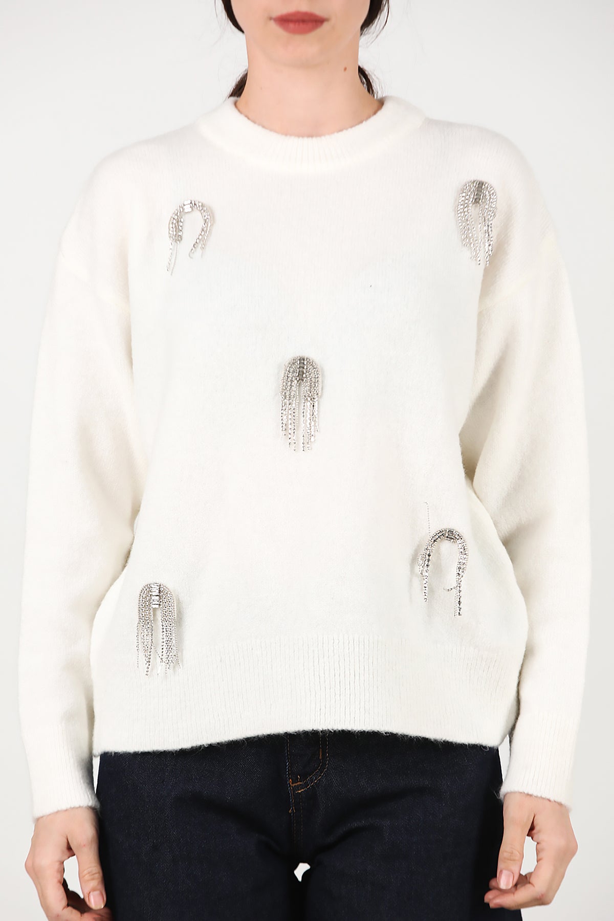 Kadın Taş Detay Kazak Ekru
