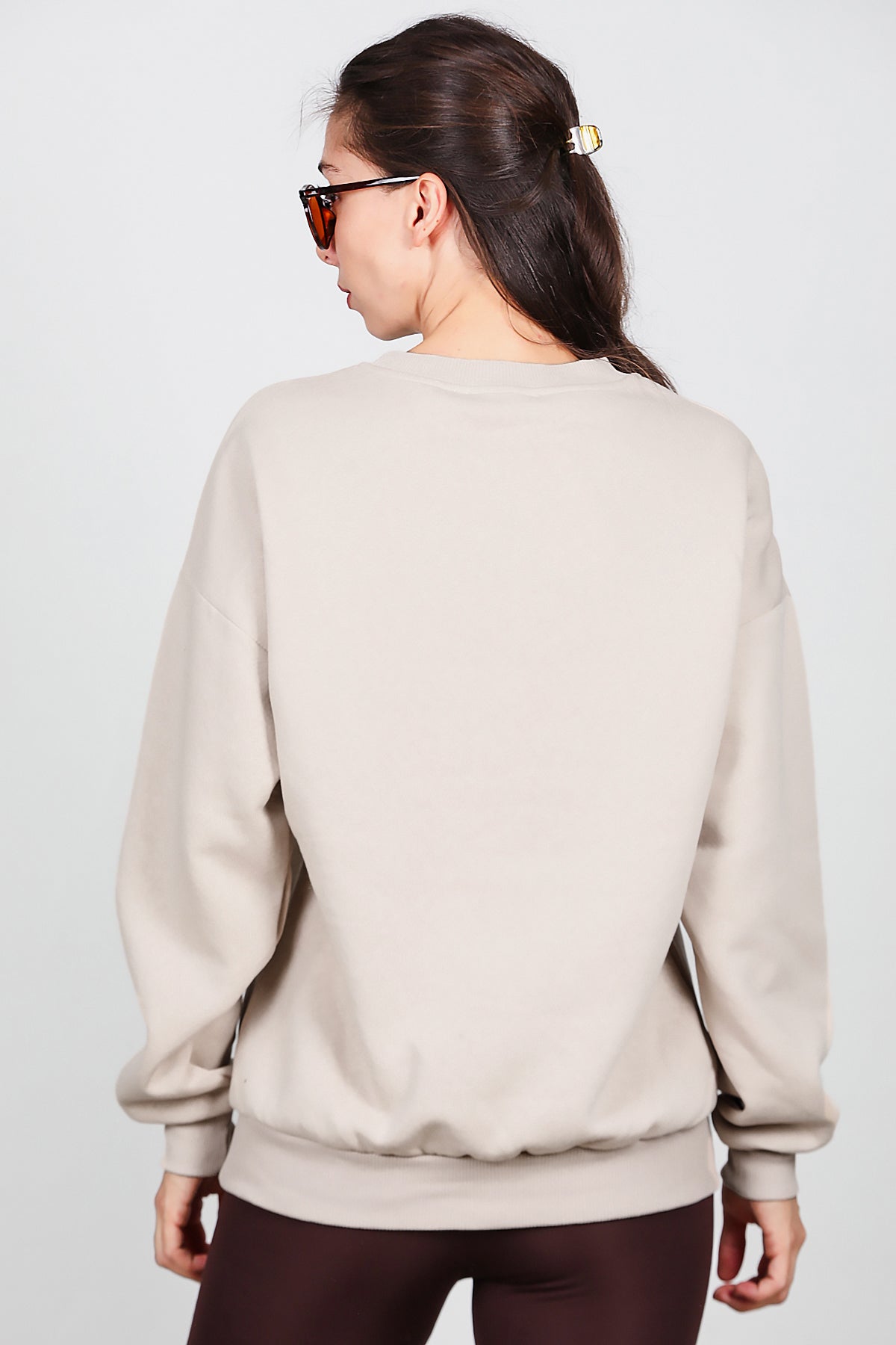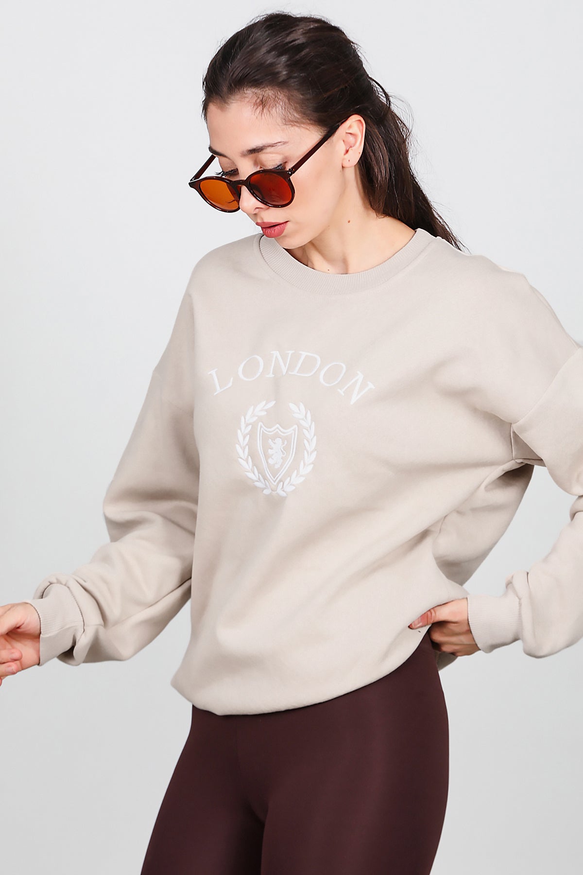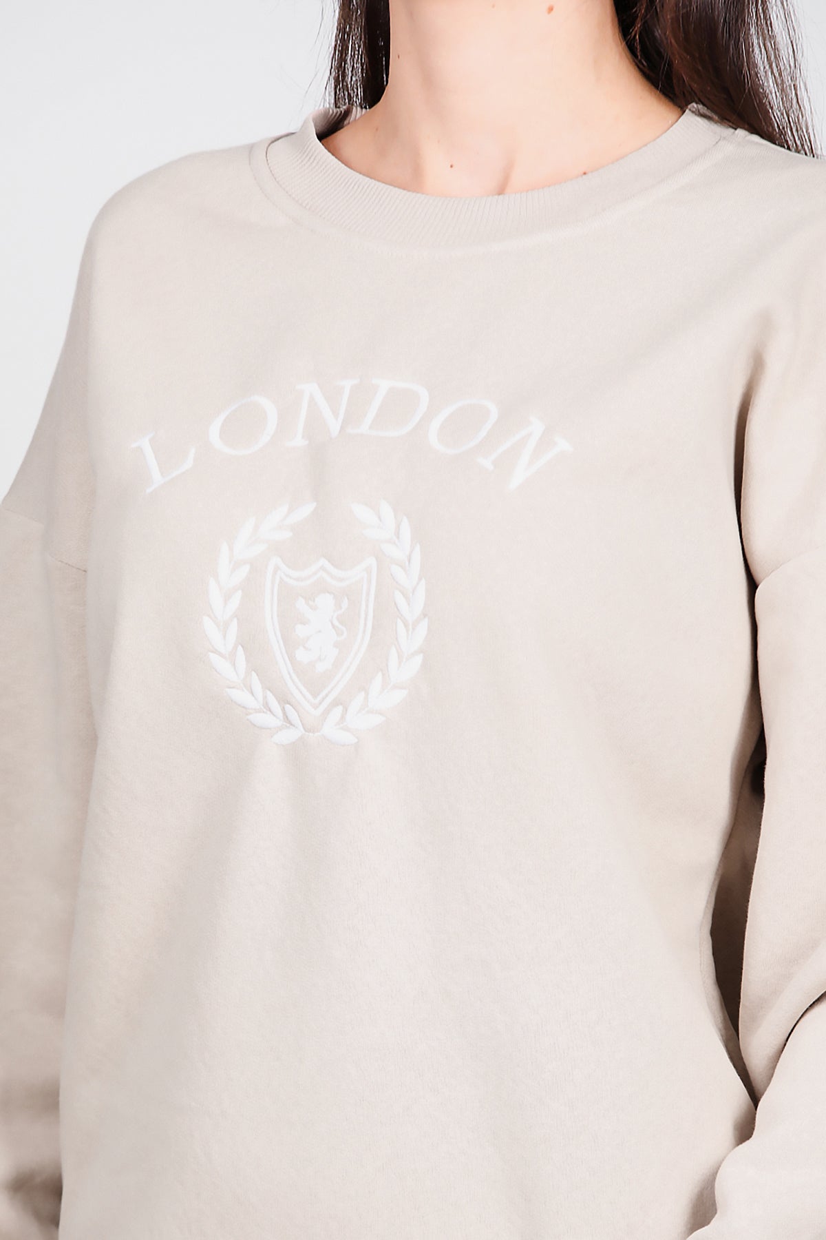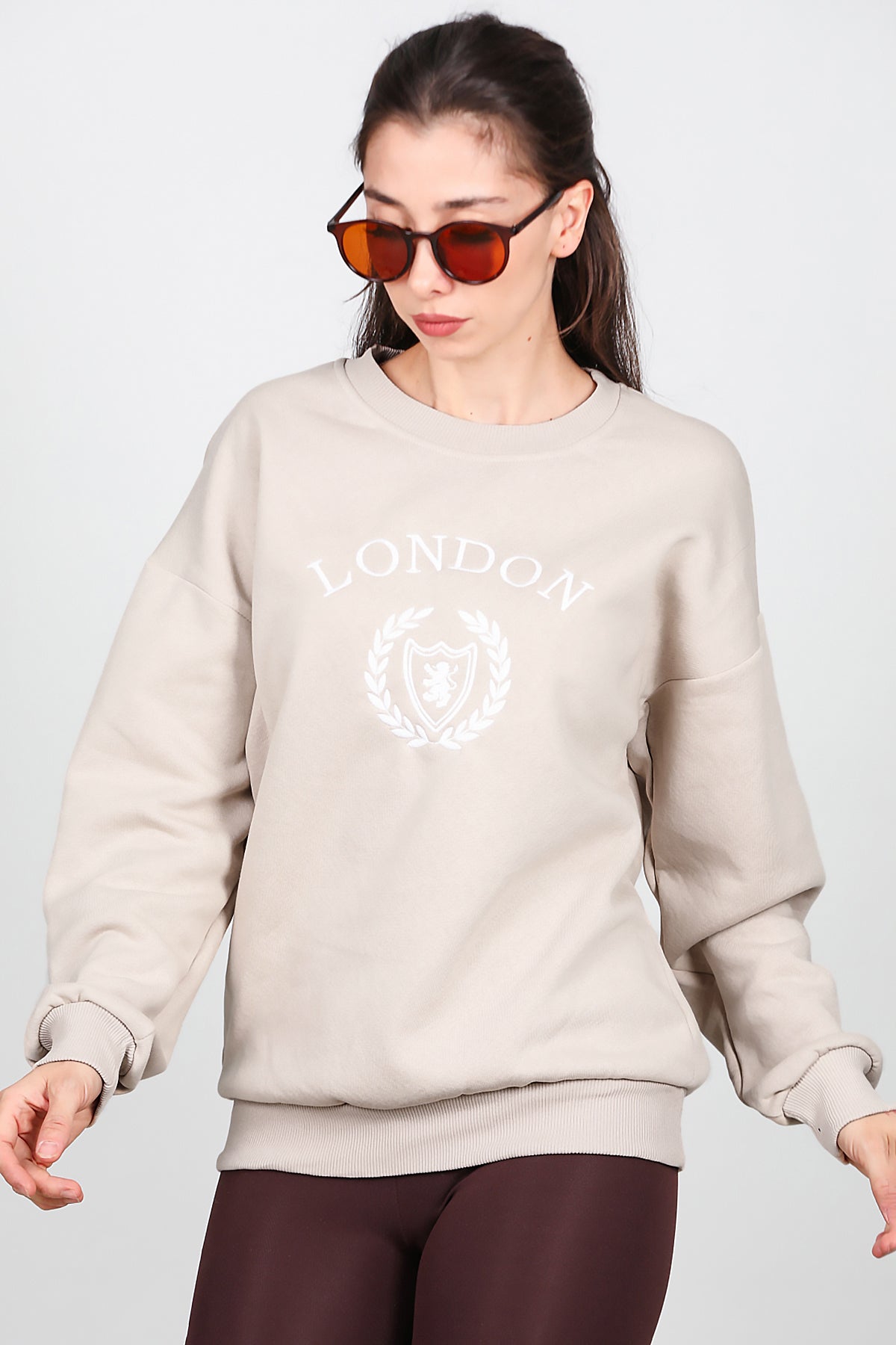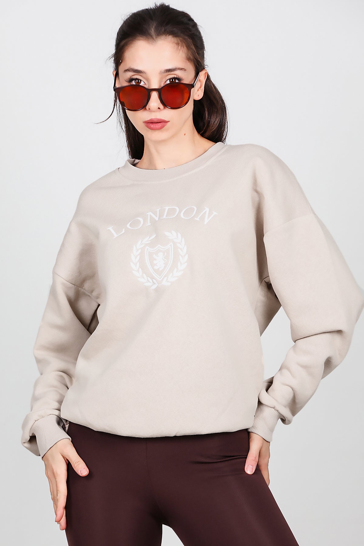 Kadın Üç İplik Bisiklet Yaka Sweat Bej