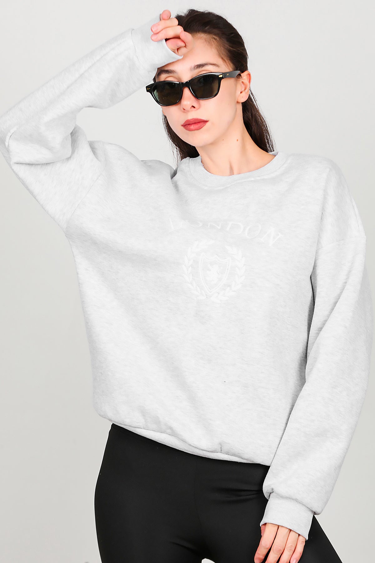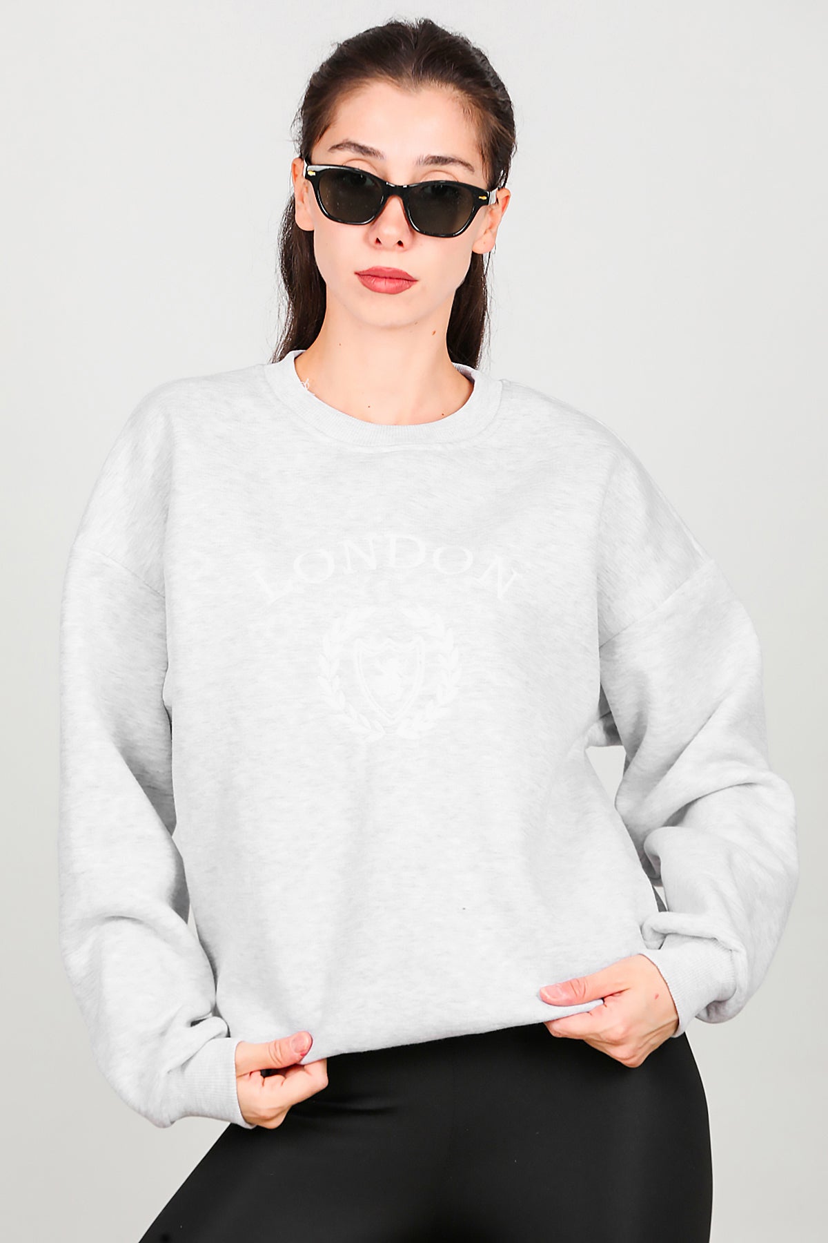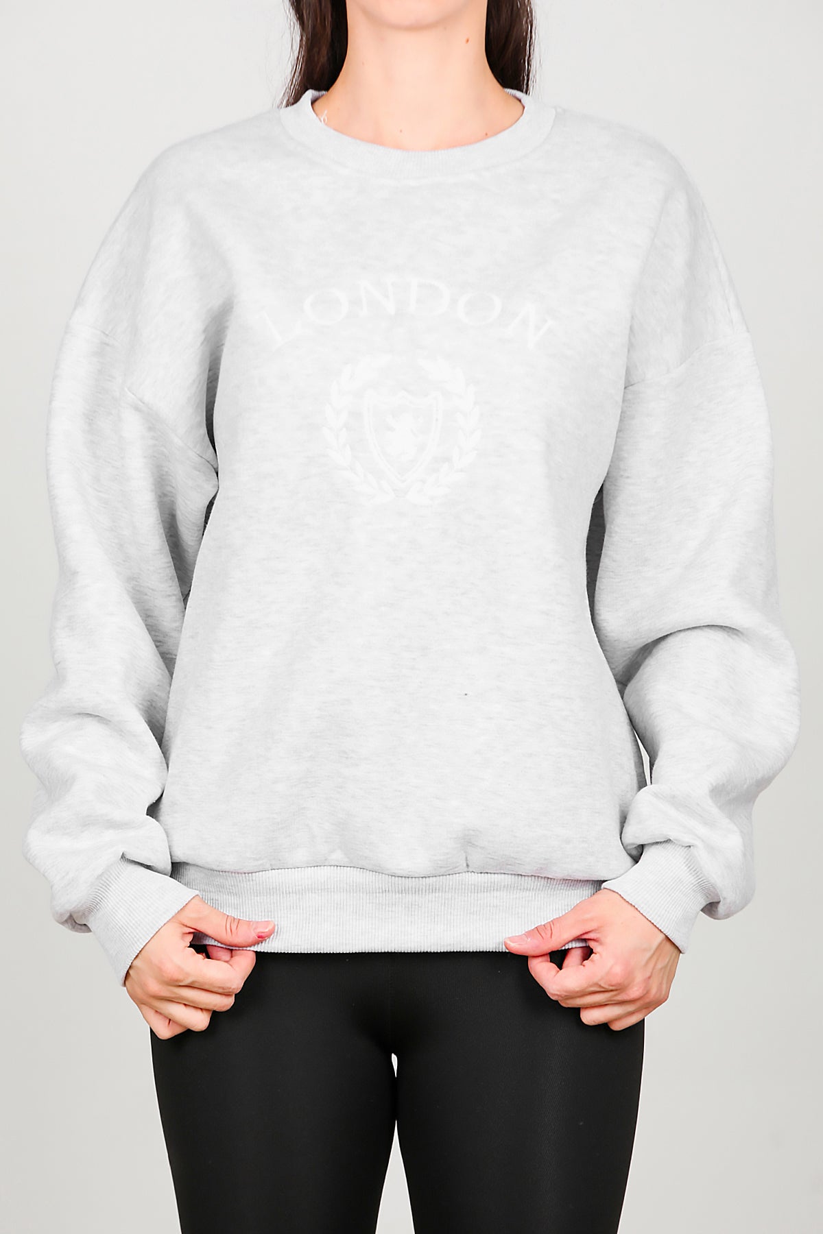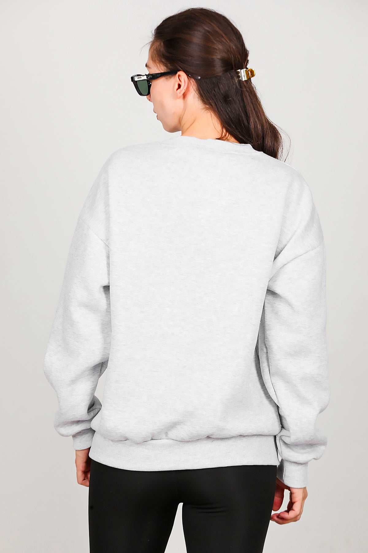 Kadın Üç İplik Bisiklet Yaka Sweat Gri