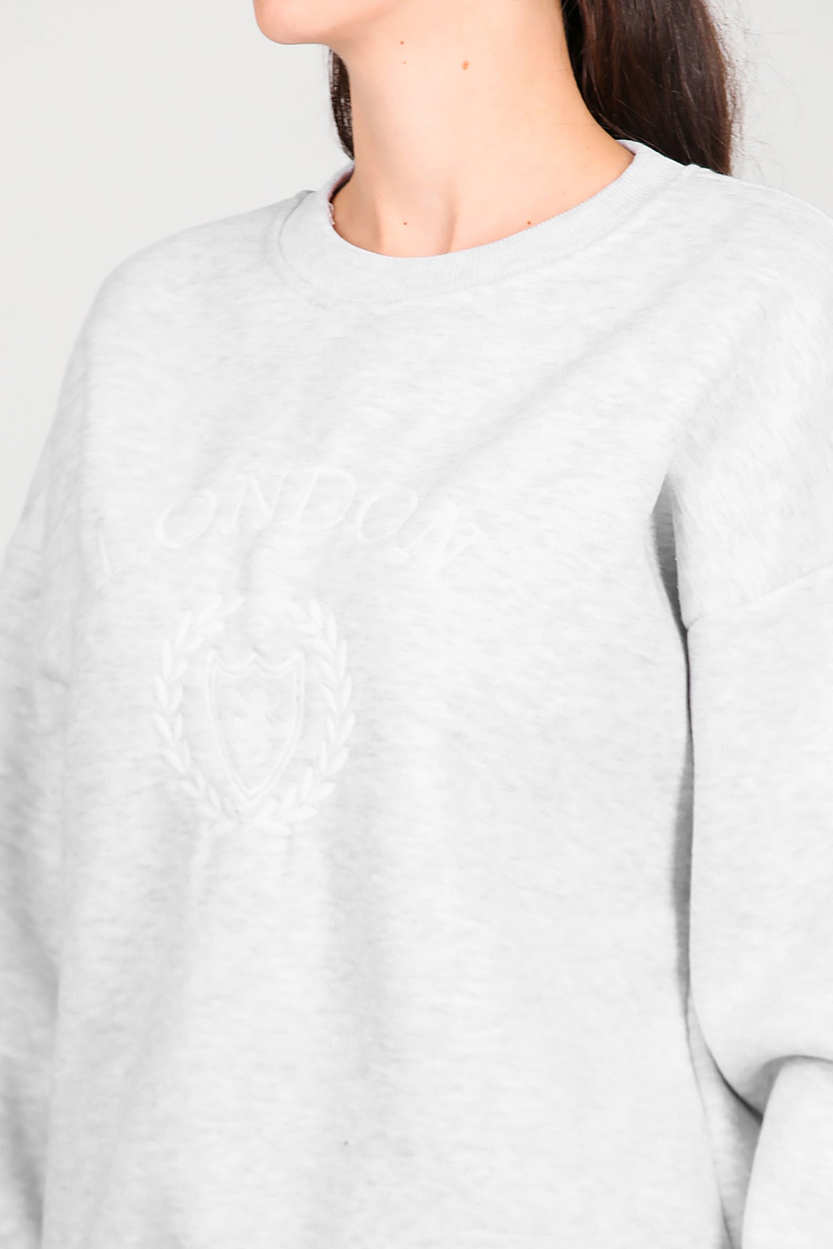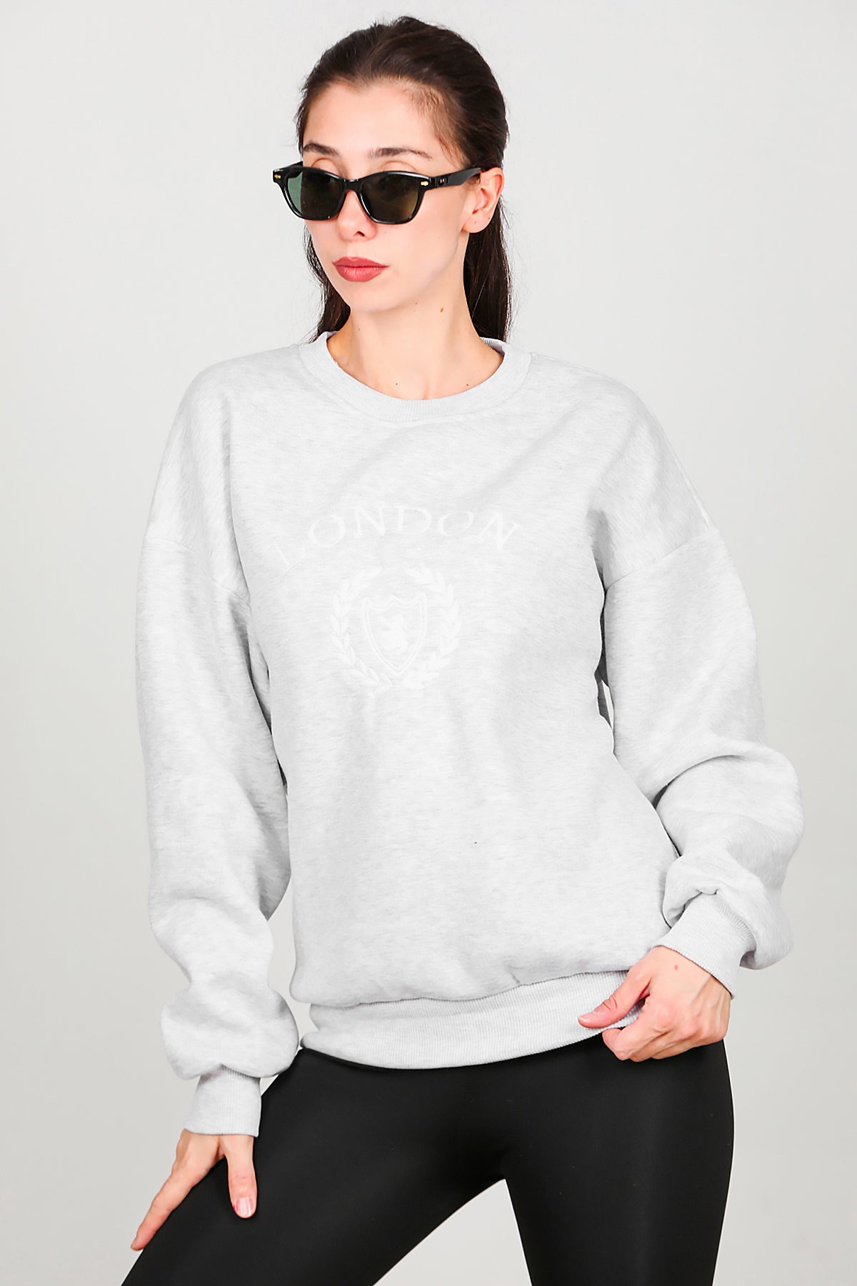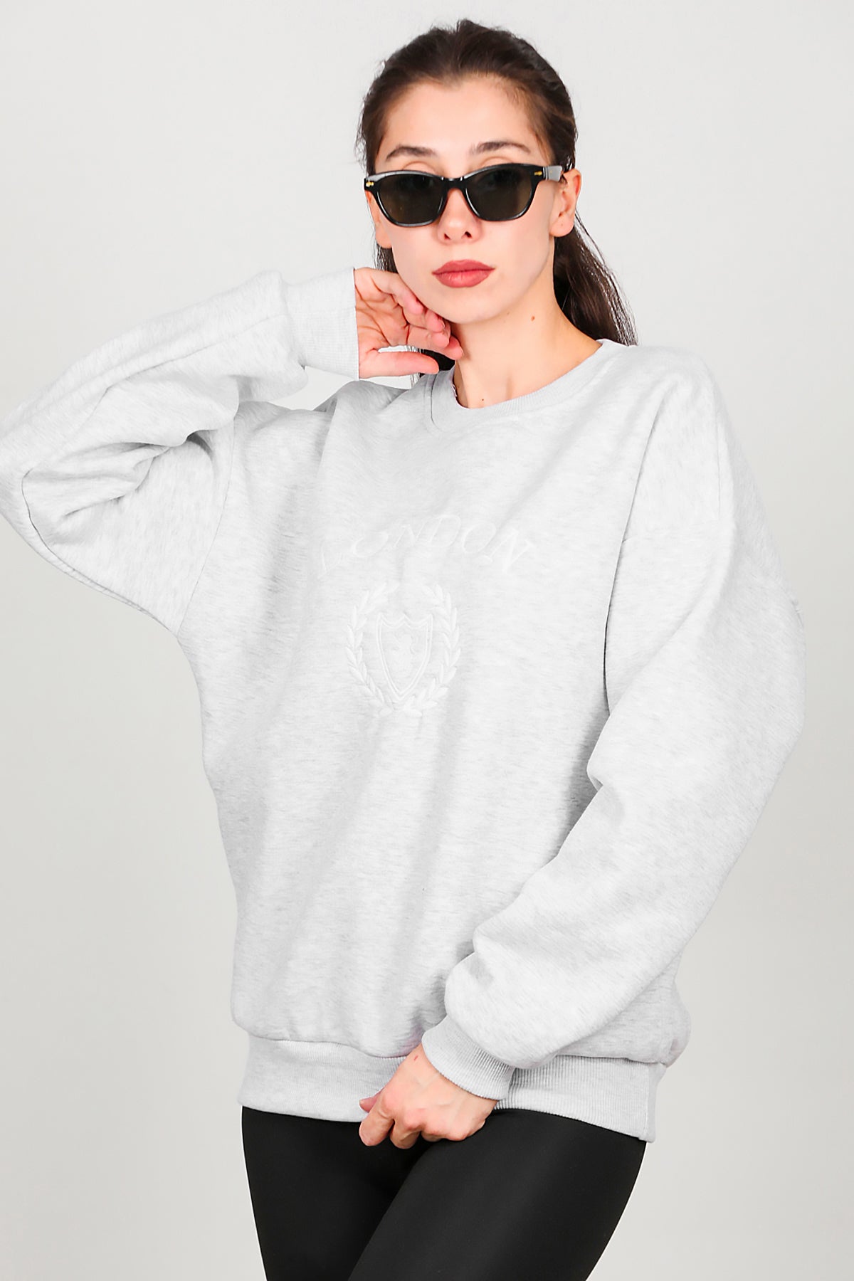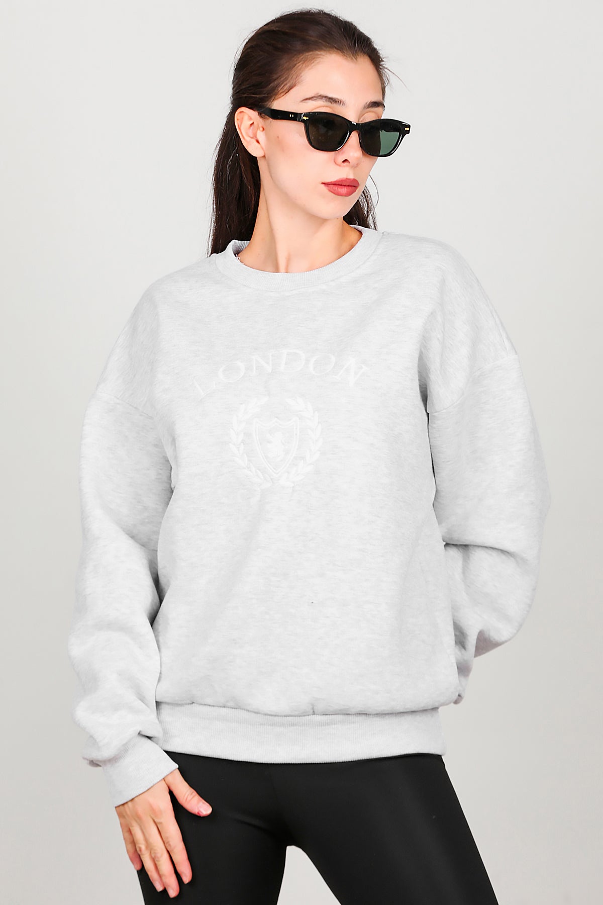 Kadın Üç İplik Bisiklet Yaka Sweat Gri