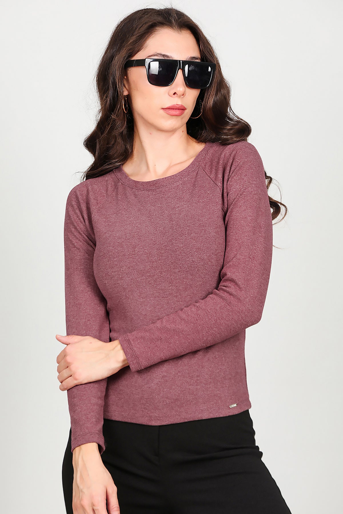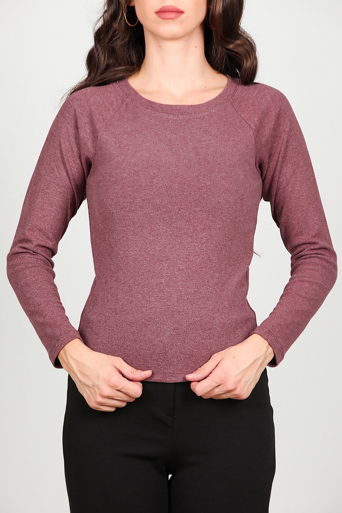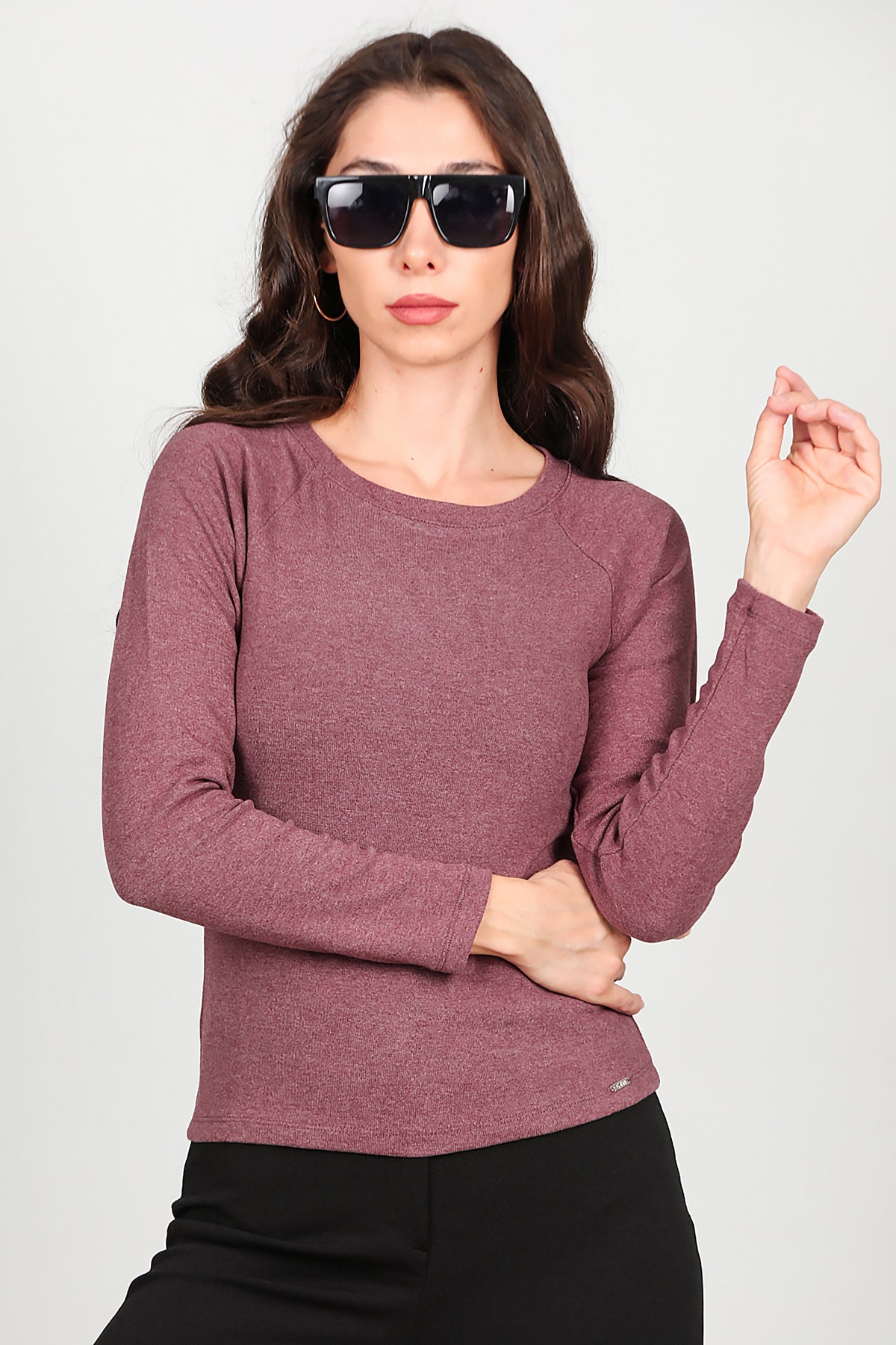 Kadın Uzun Kollu Bisiklet Yaka Bluz Bordo