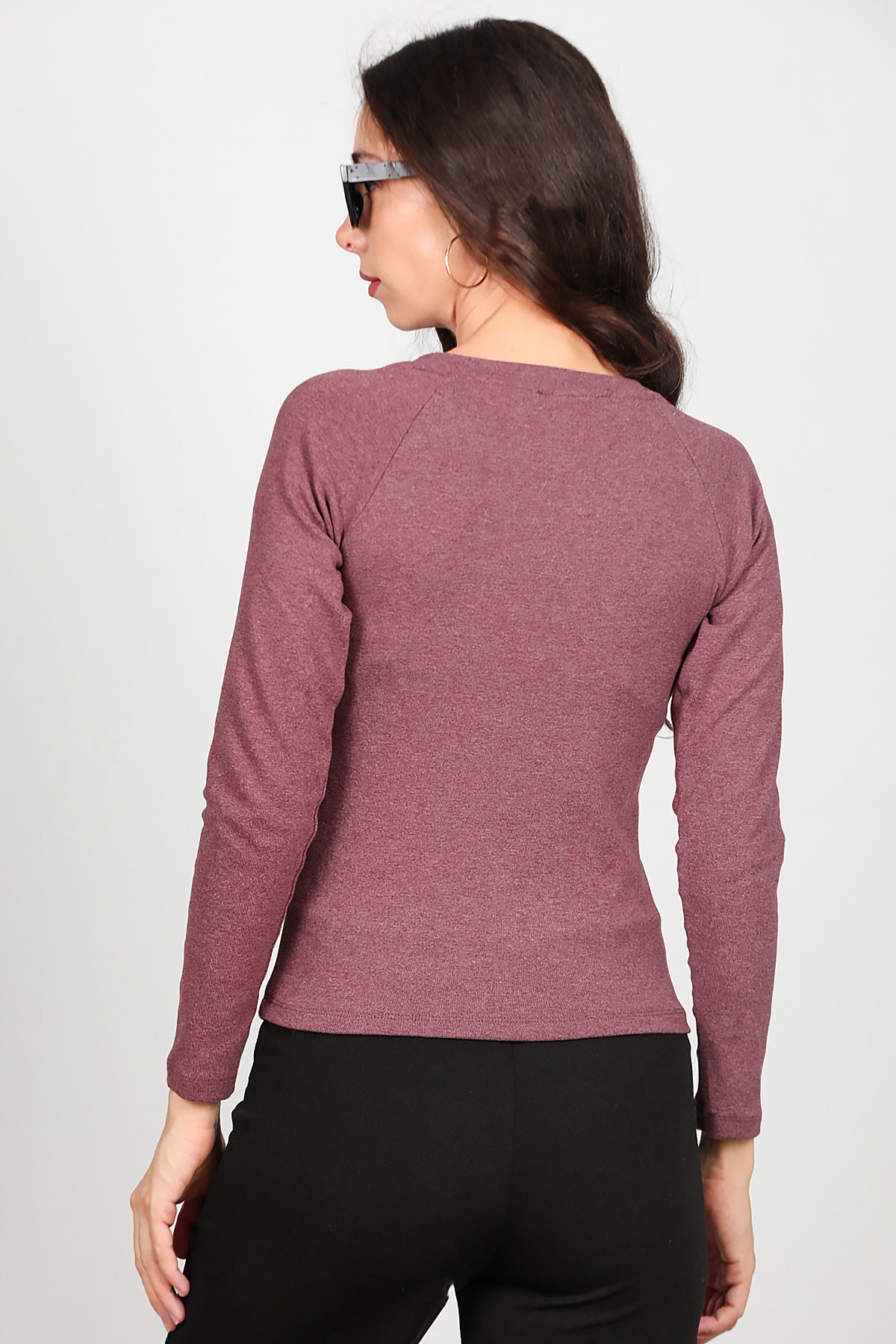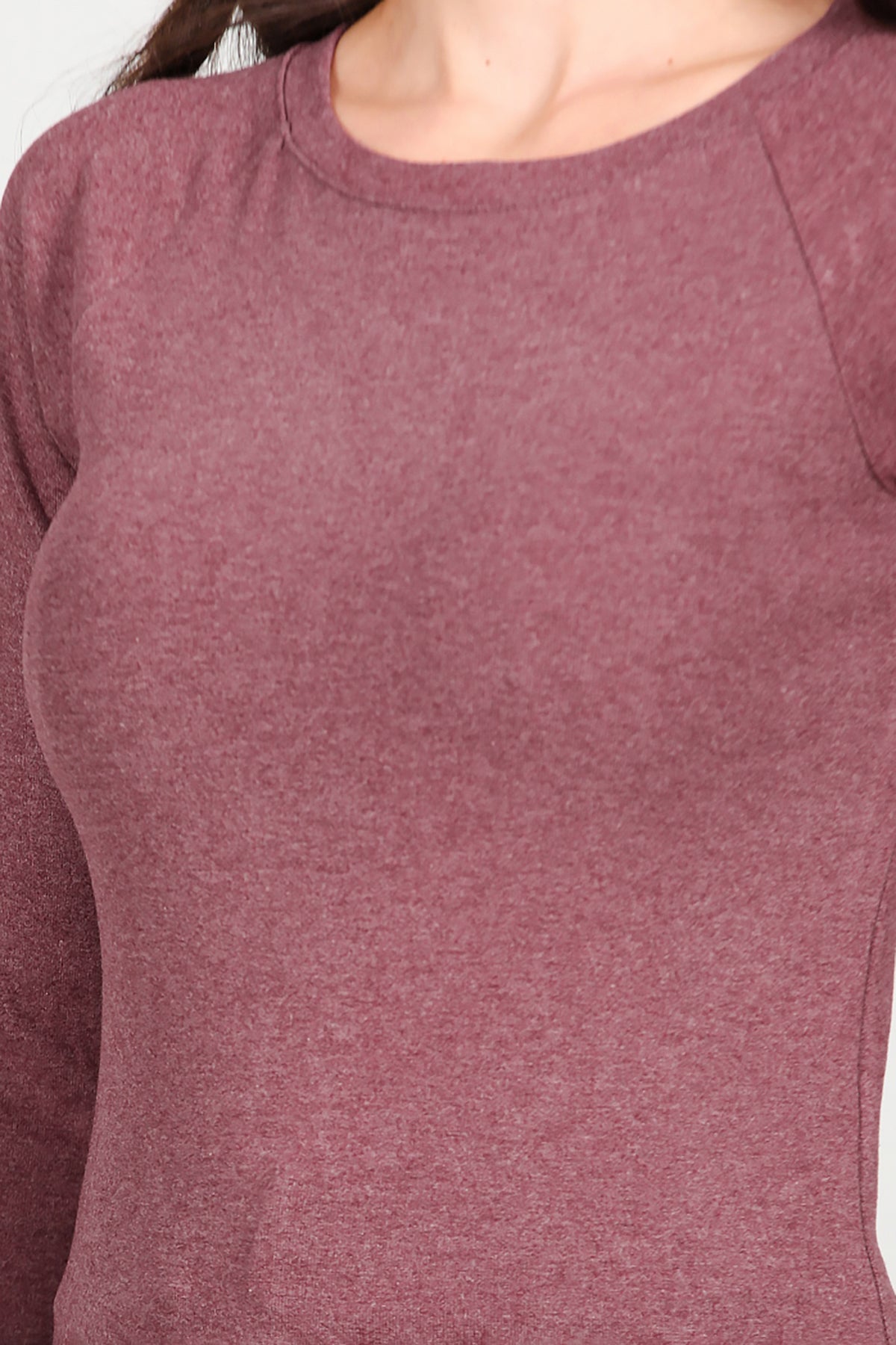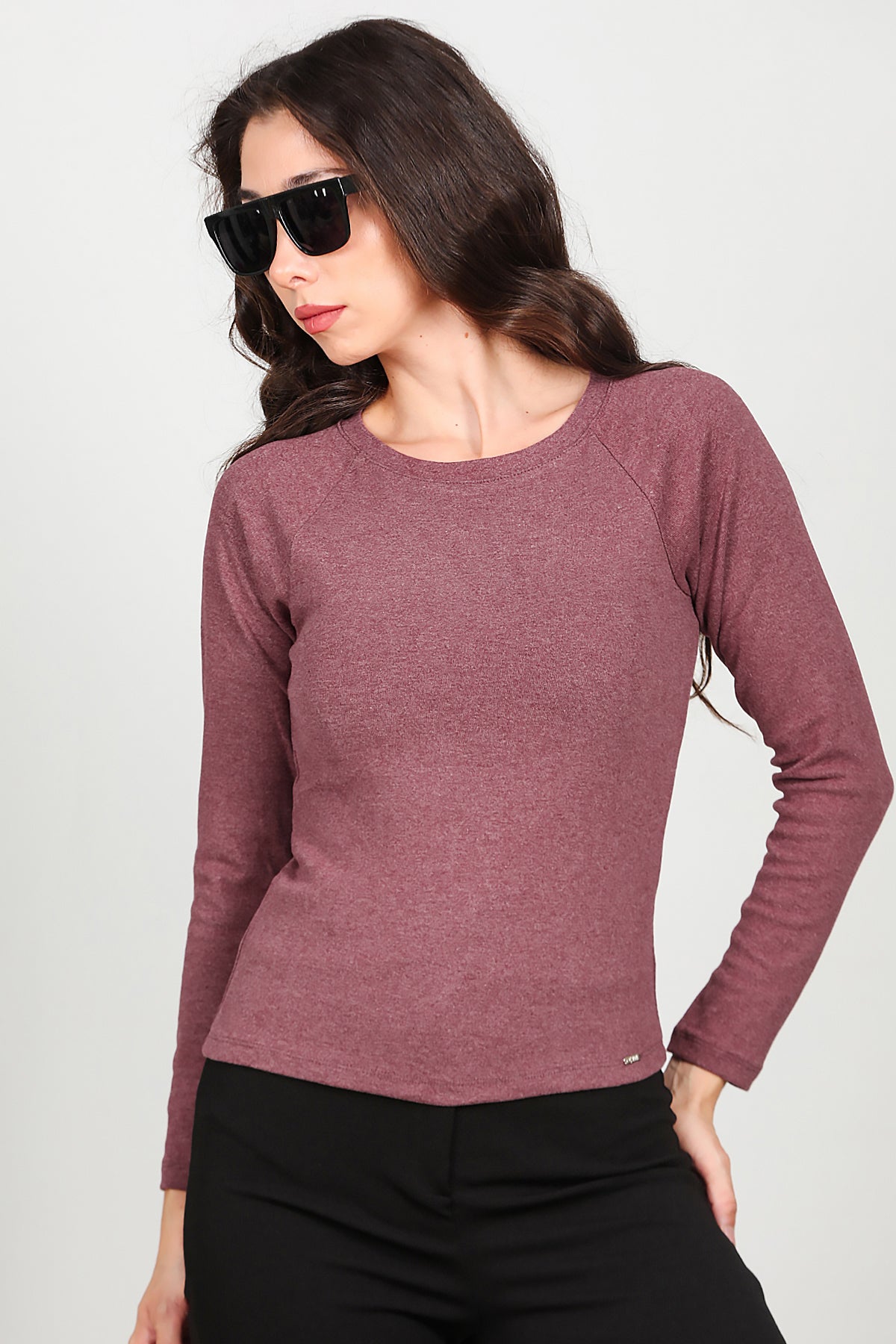 Kadın Uzun Kollu Bisiklet Yaka Bluz Bordo