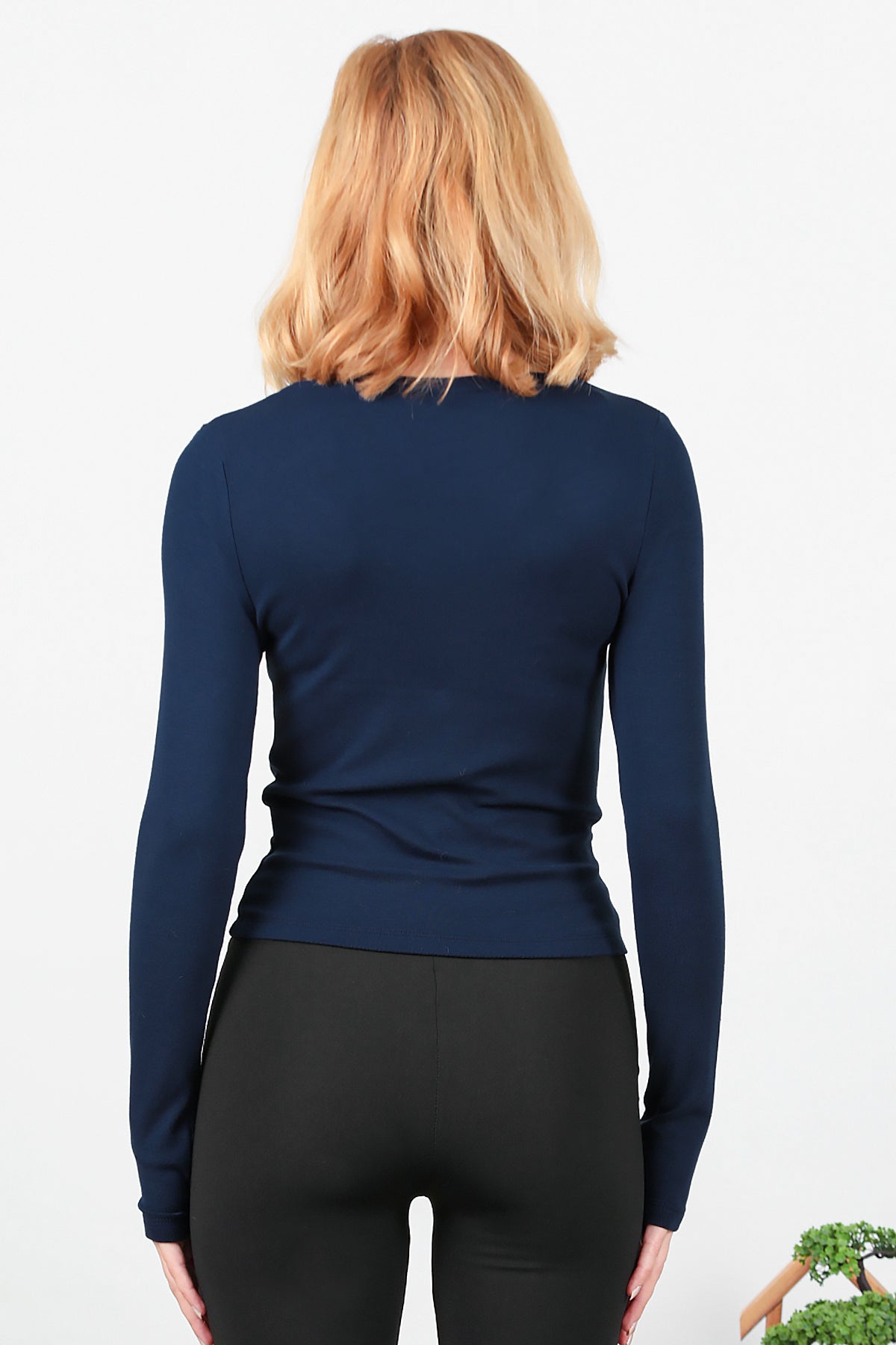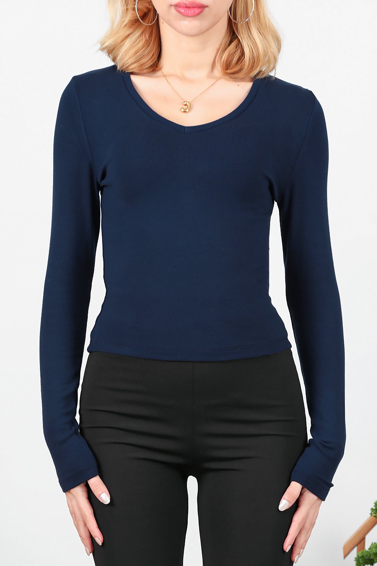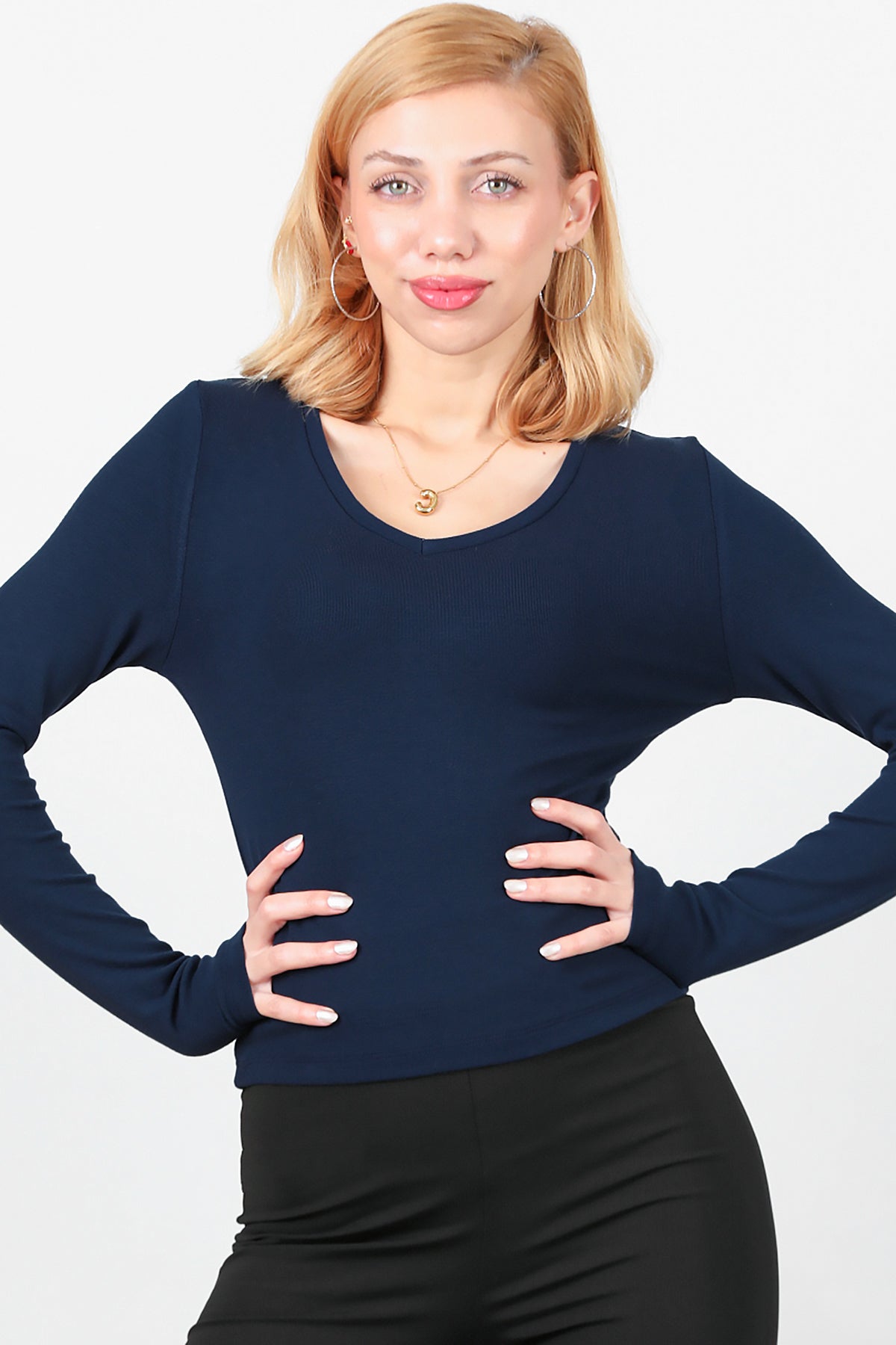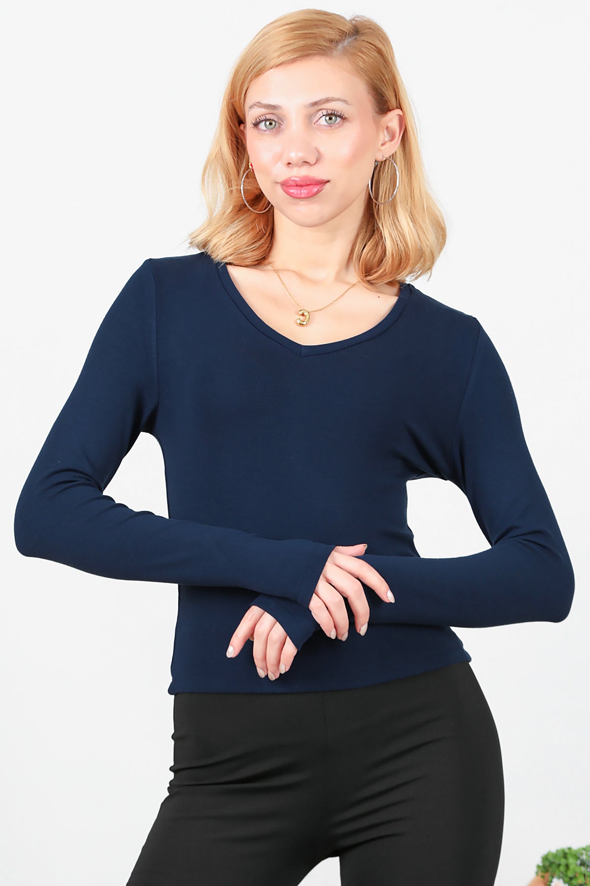 Kadın V Yaka Bluz Lacivert