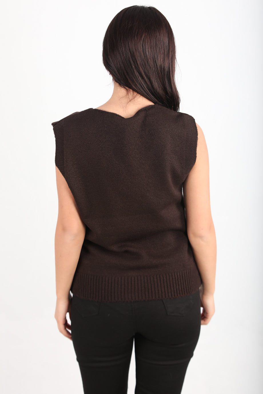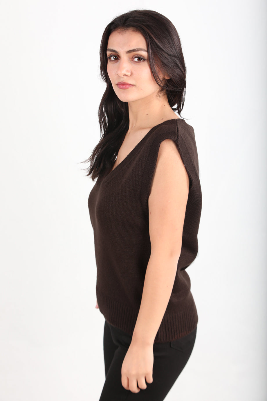 Chic Kadın V Yaka Süveter Kahverengi