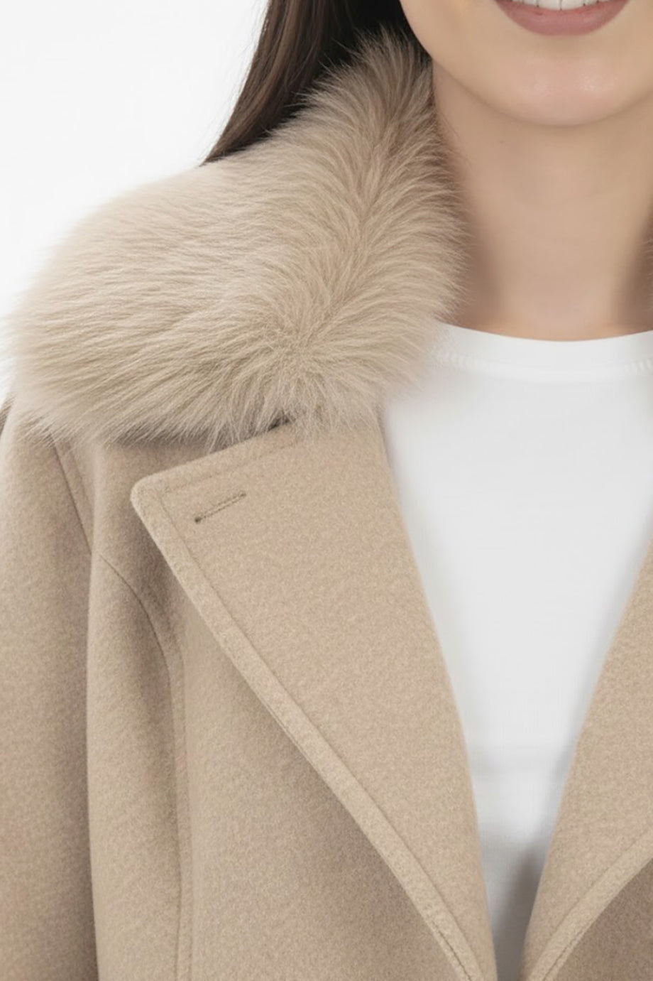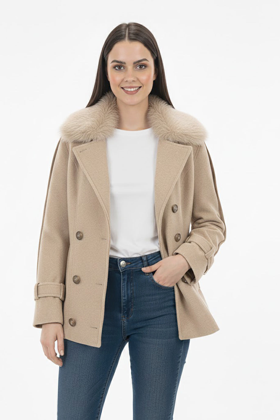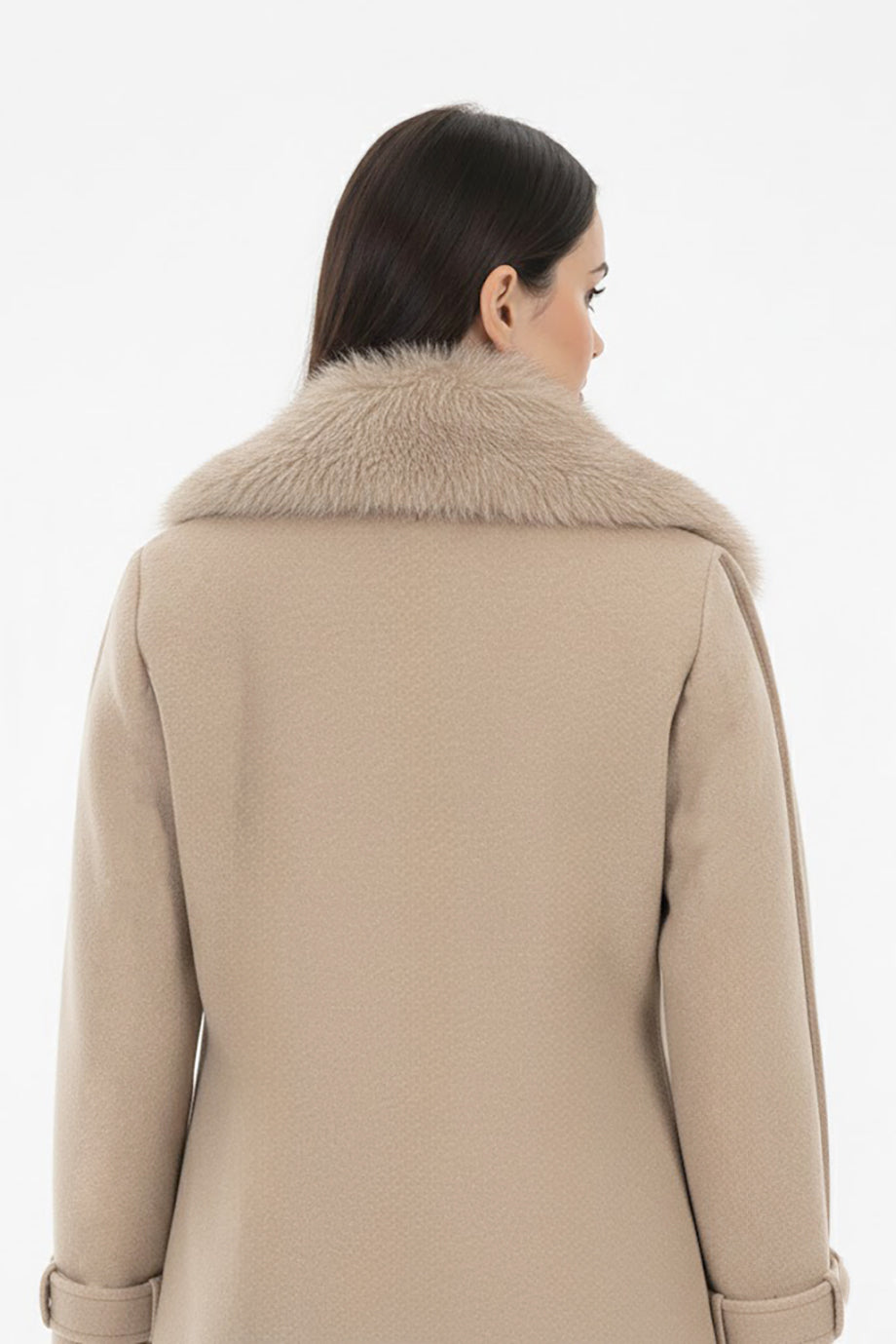 Kadın Yakası Kürklü Kaşe Ceket Bej