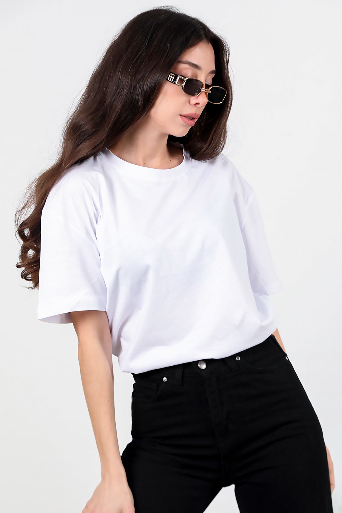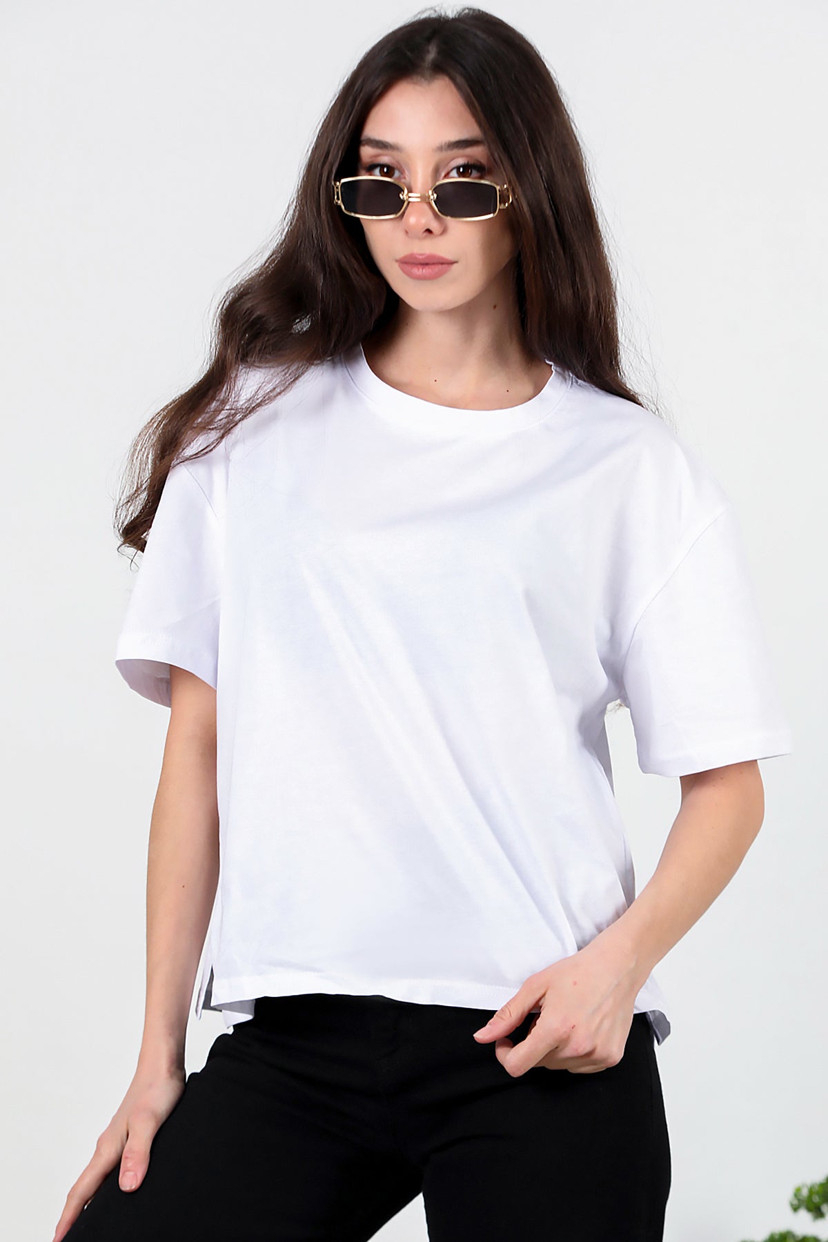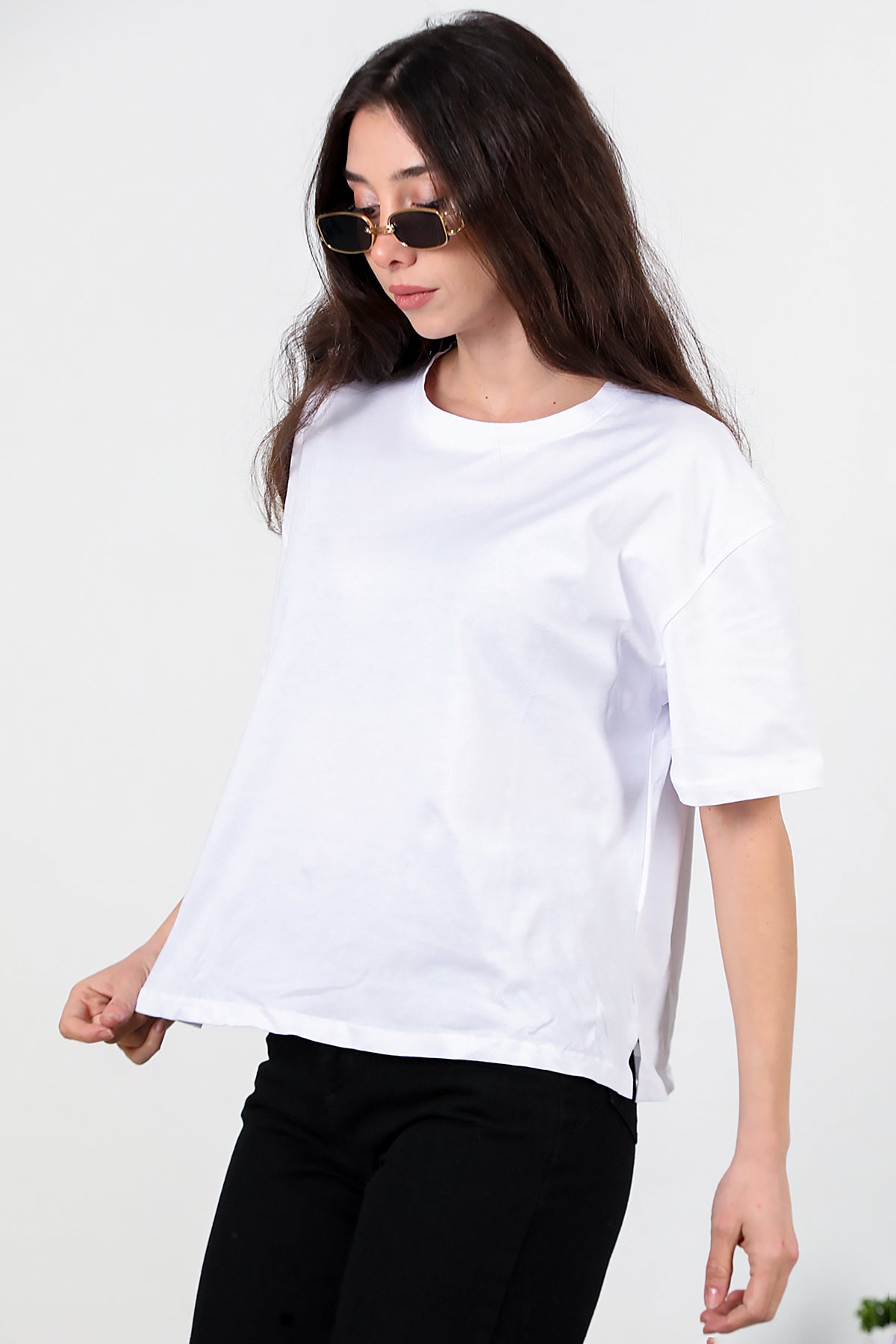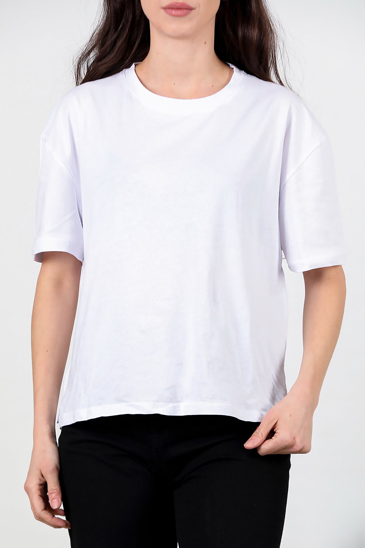 Kadın Yan Yırtmaçlı Oversize T-shirt Ekru