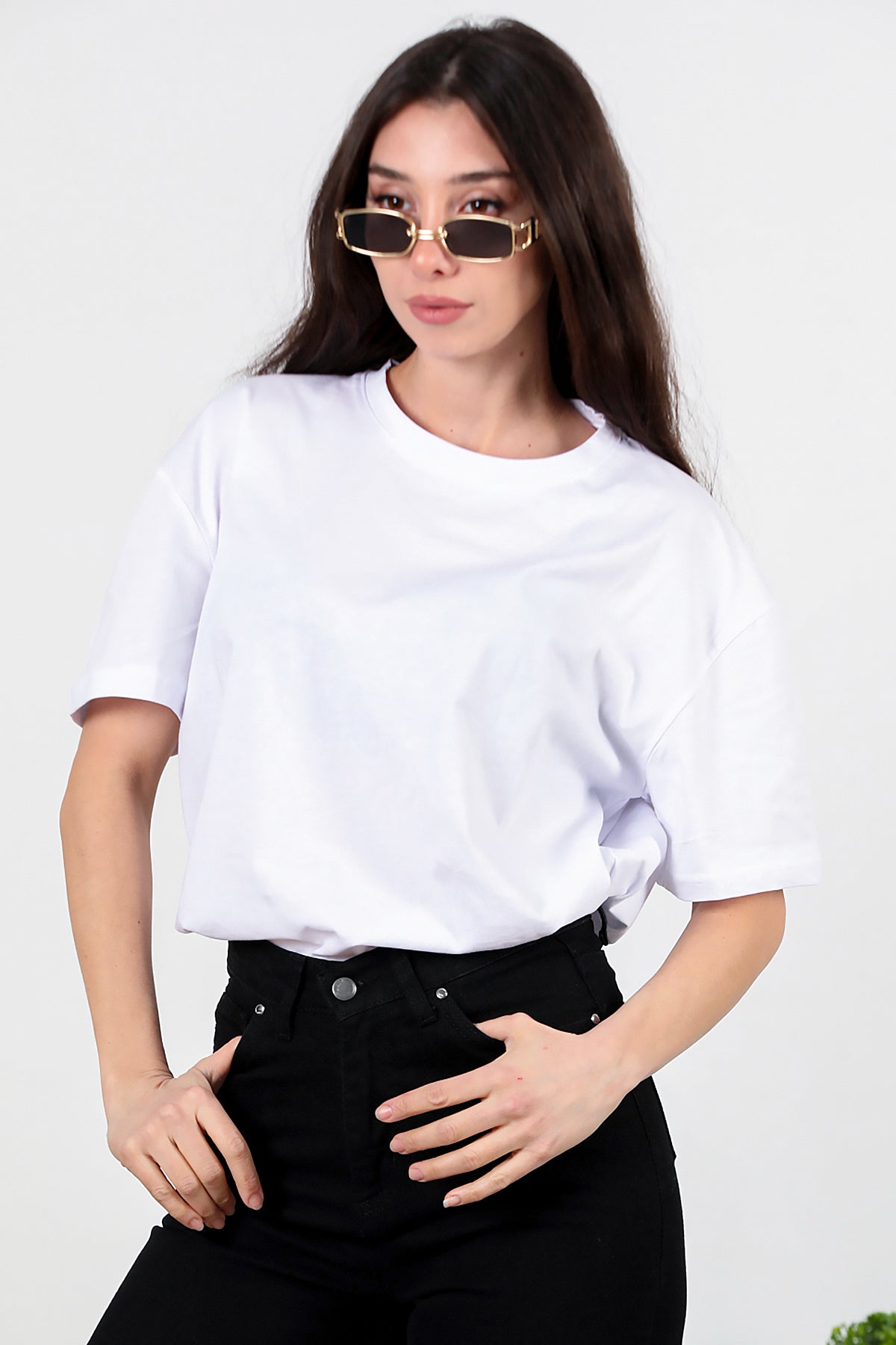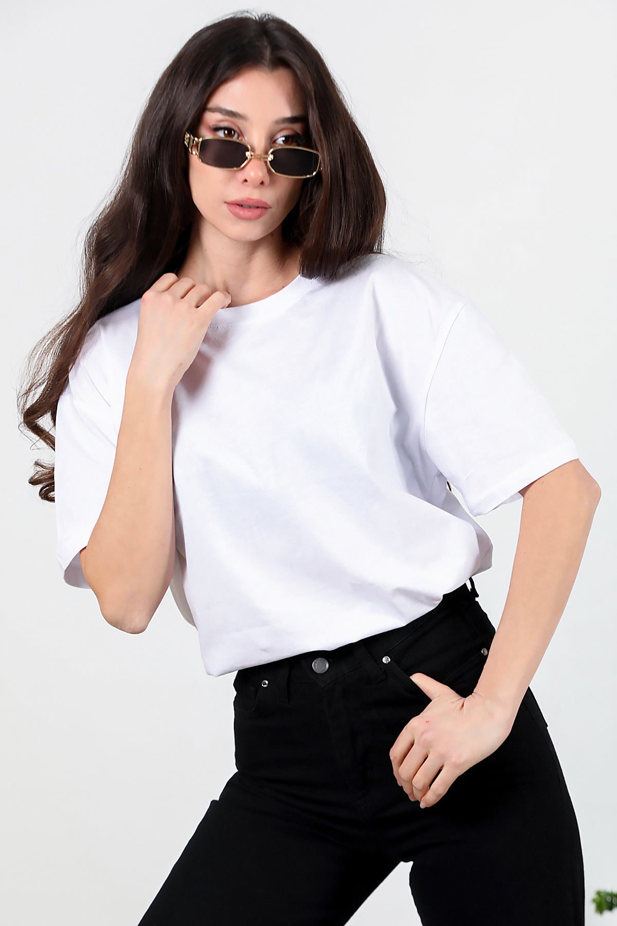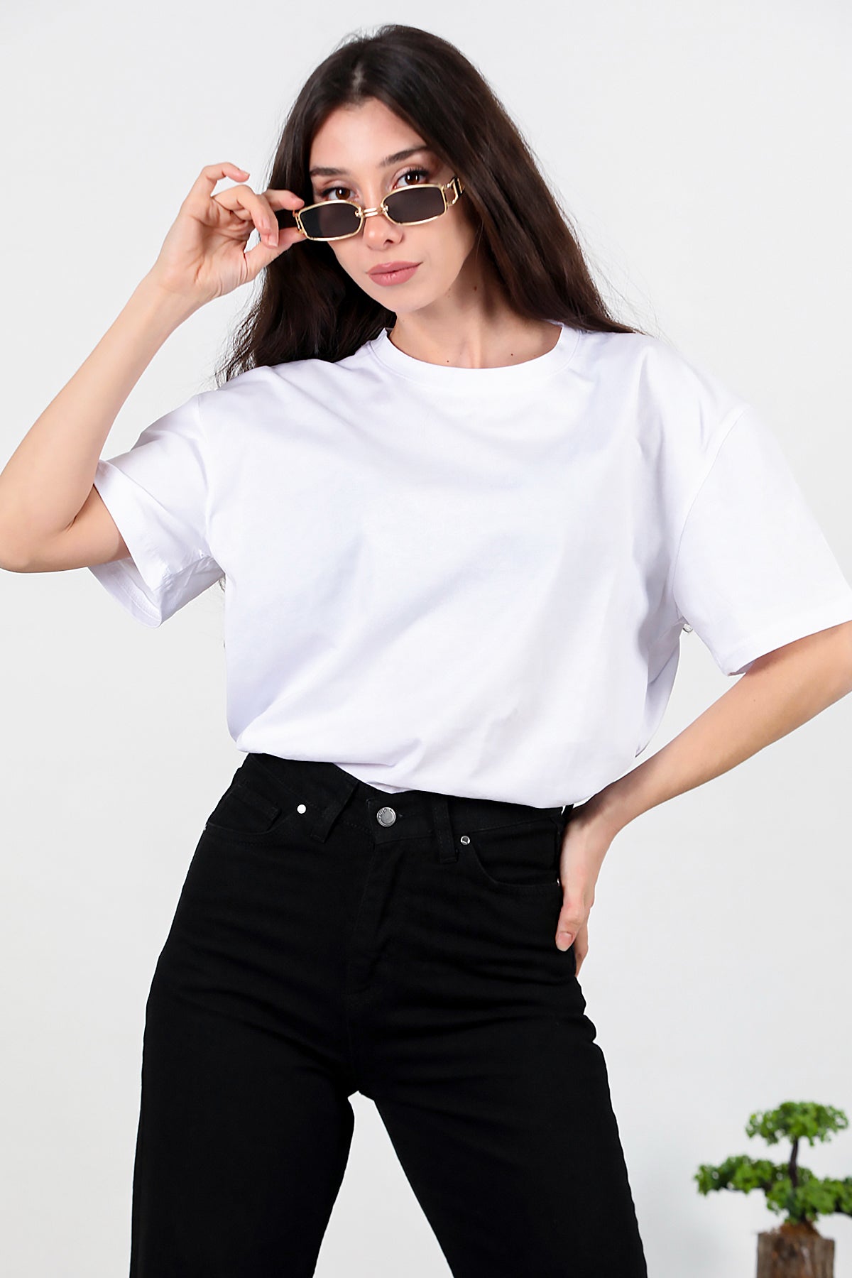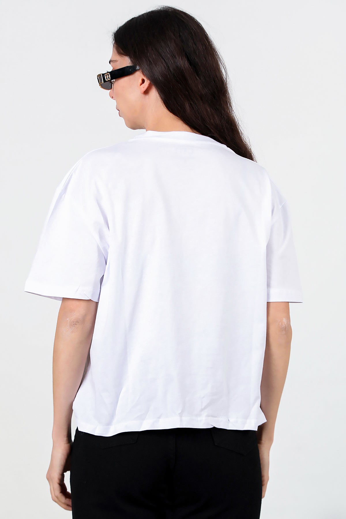 Kadın Yan Yırtmaçlı Oversize T-shirt Ekru