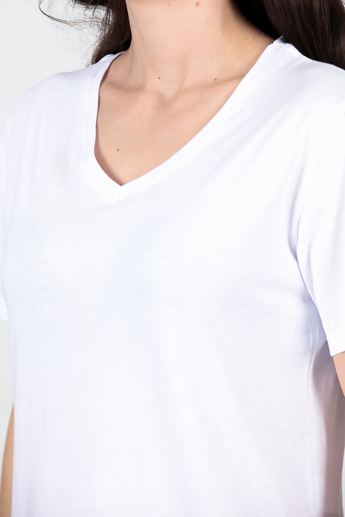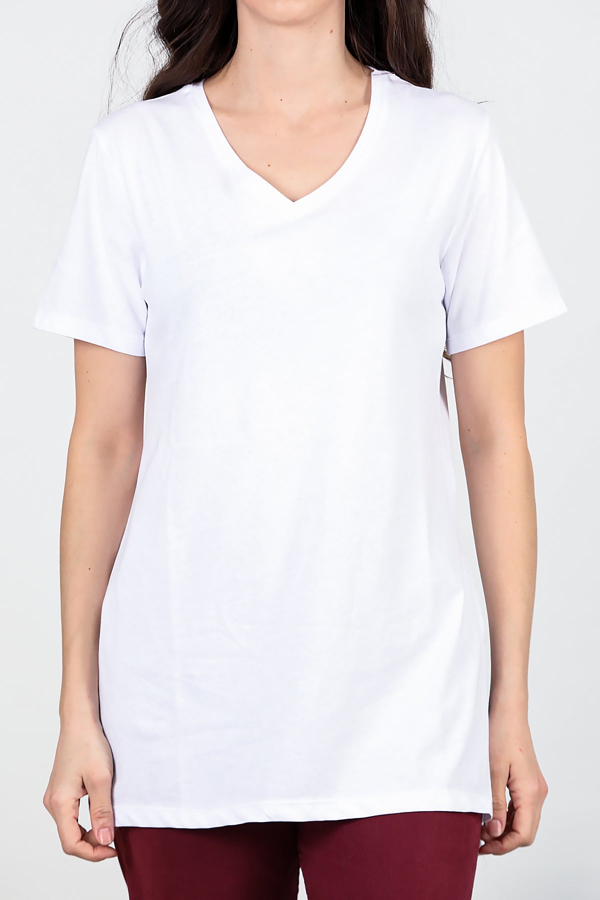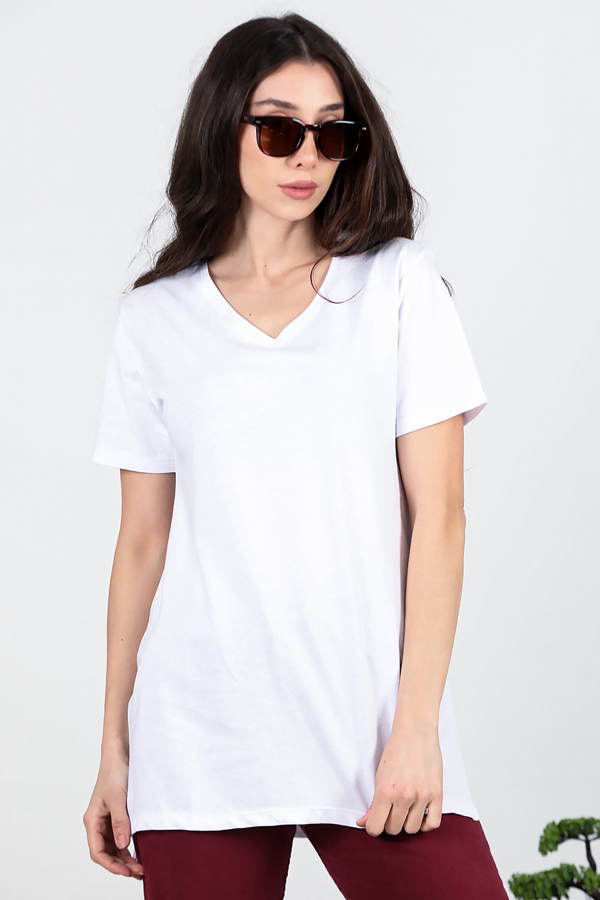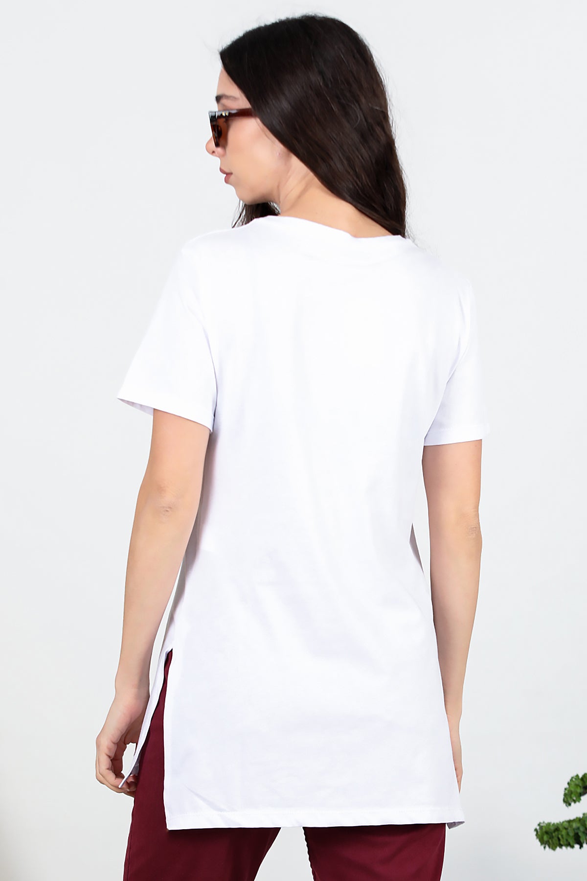 Kadın Yan Yırtmaçlı V Yaka T-shırt Beyaz