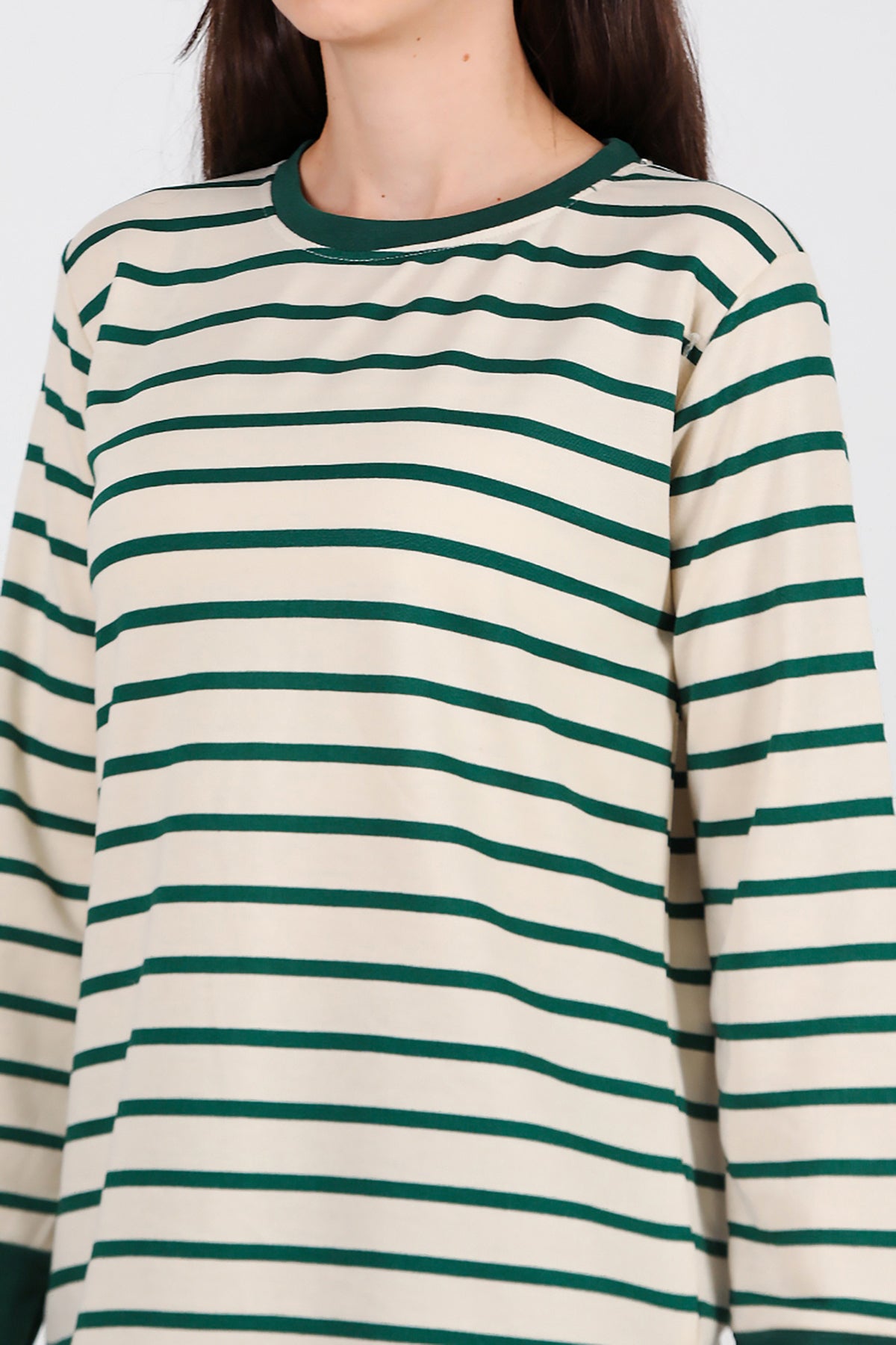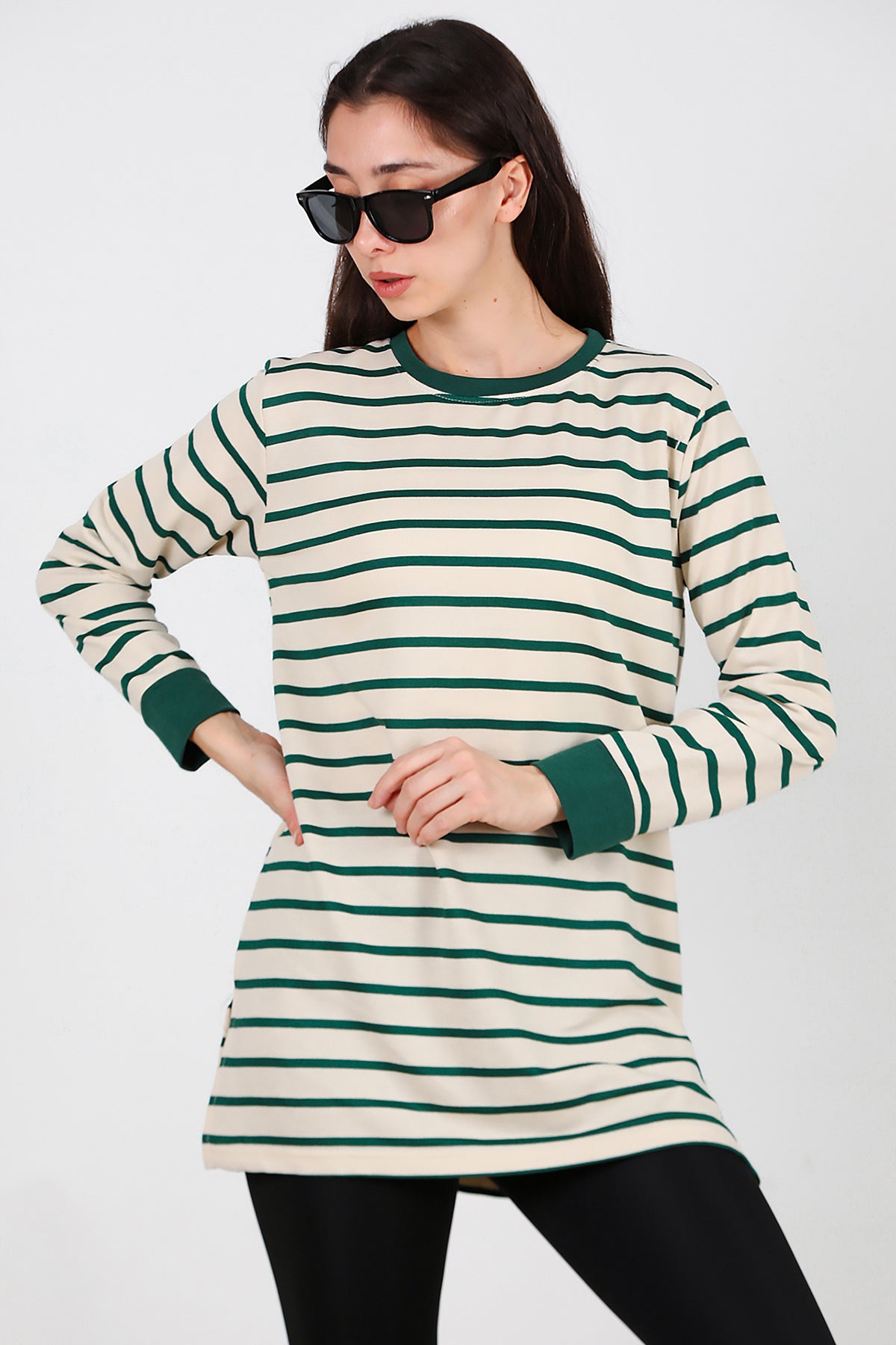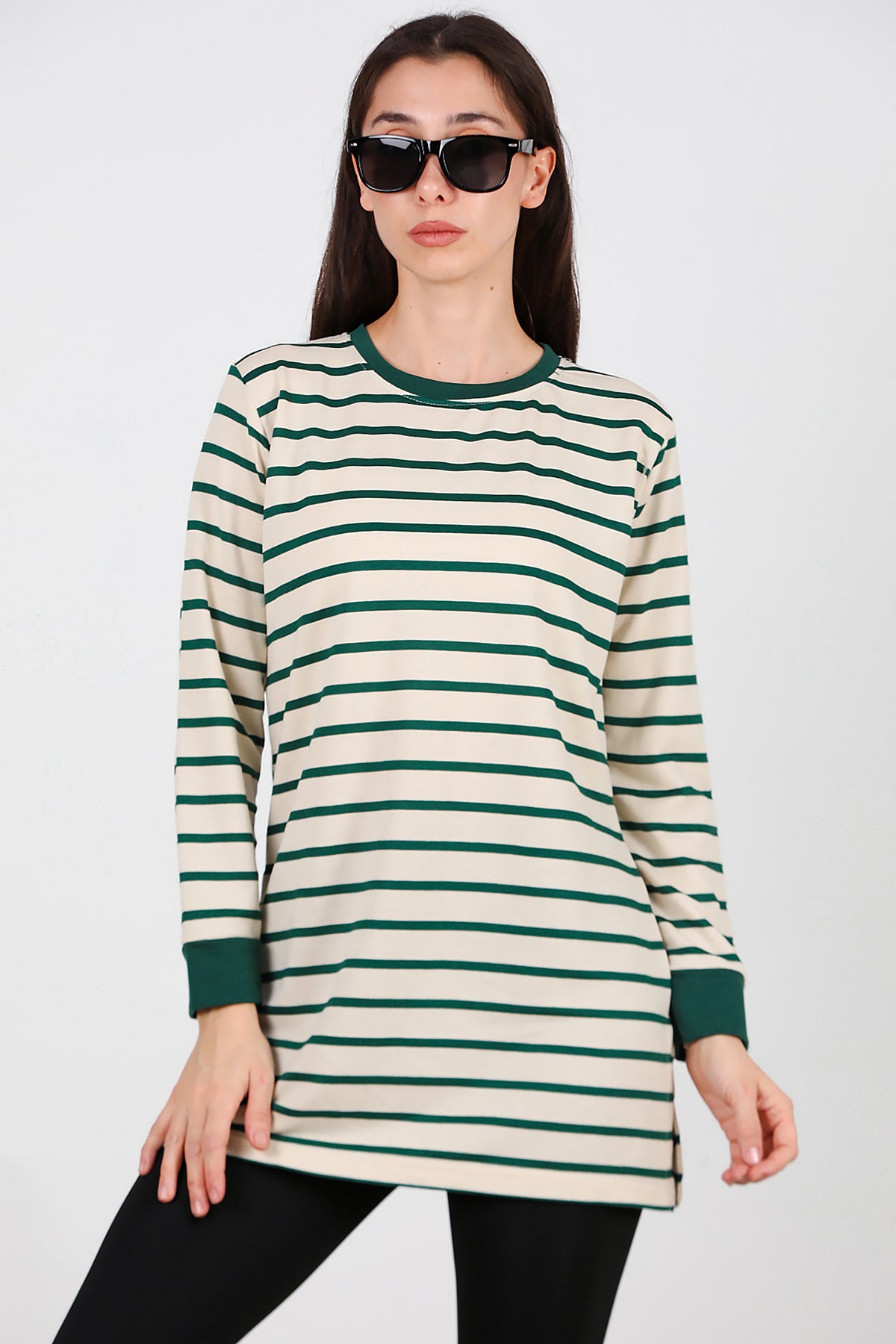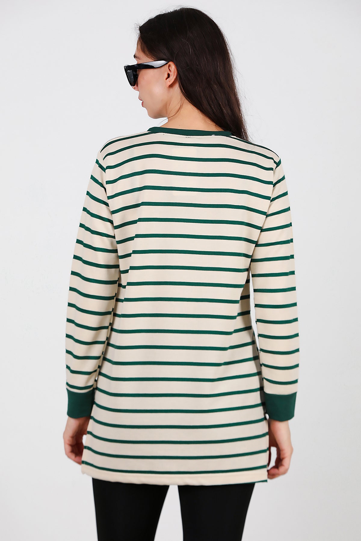 Kadın Yanı Yırtmaçlı Çizgili Tunik Yeşil