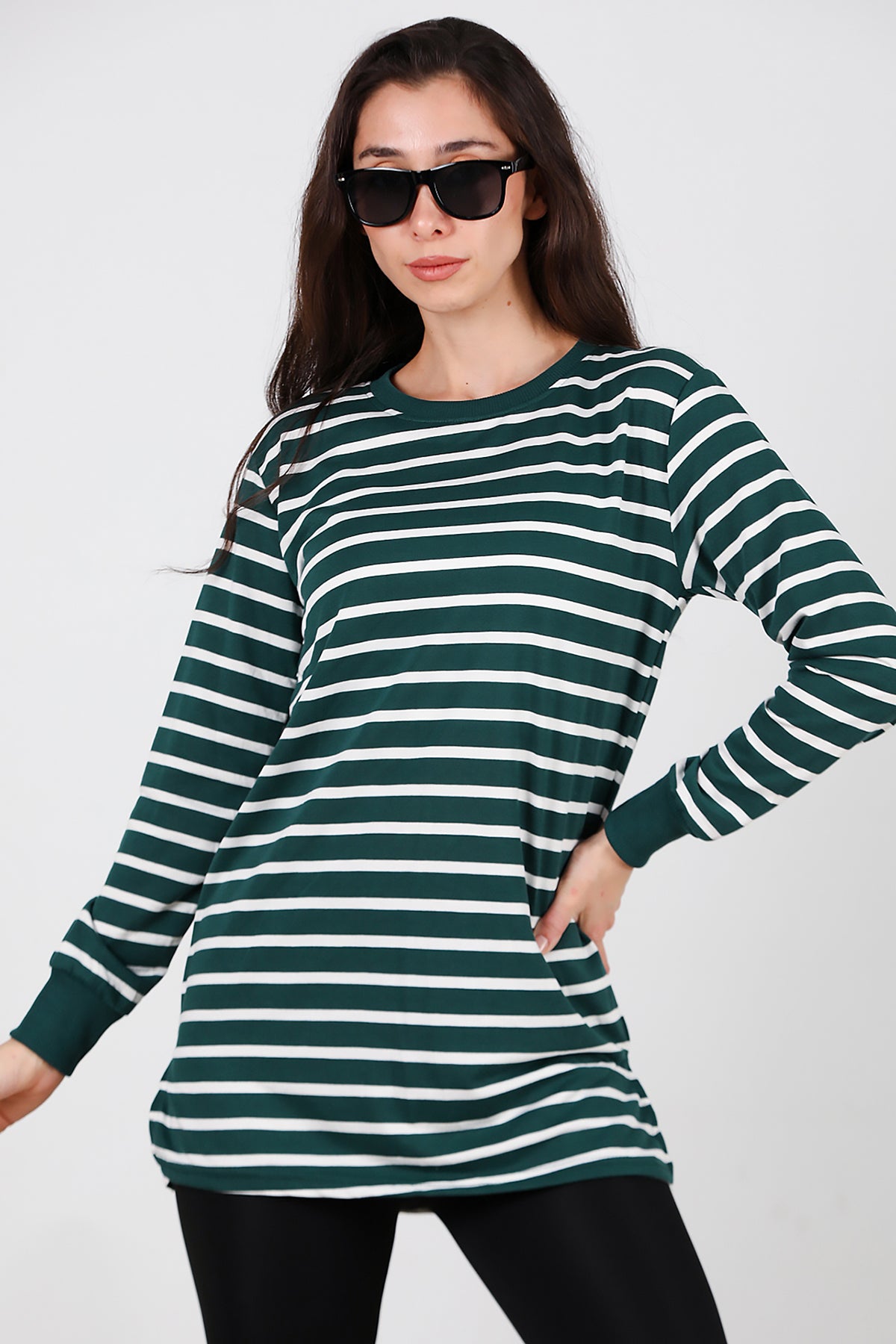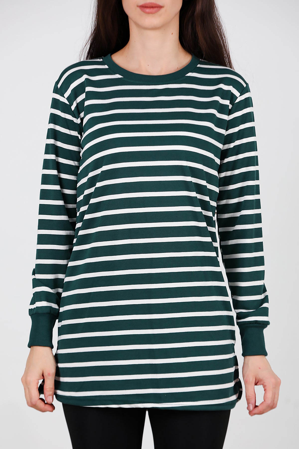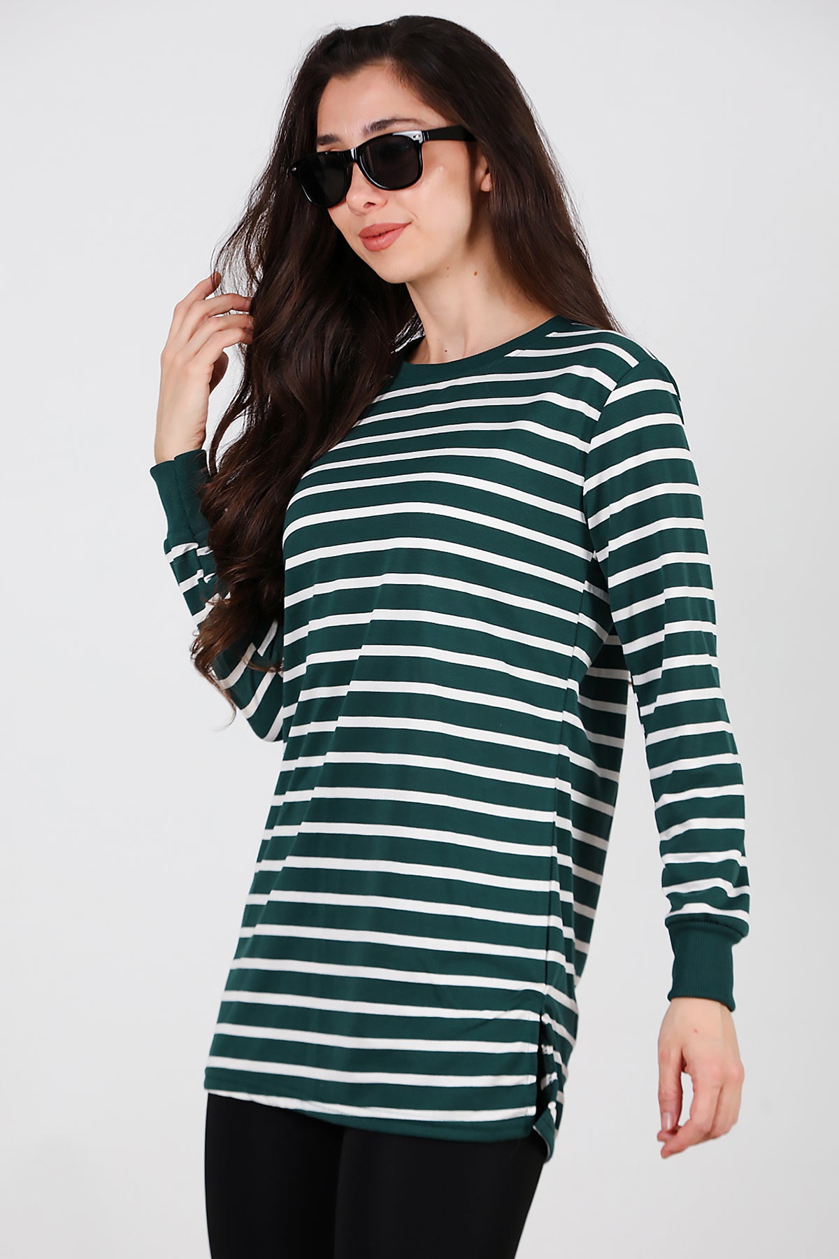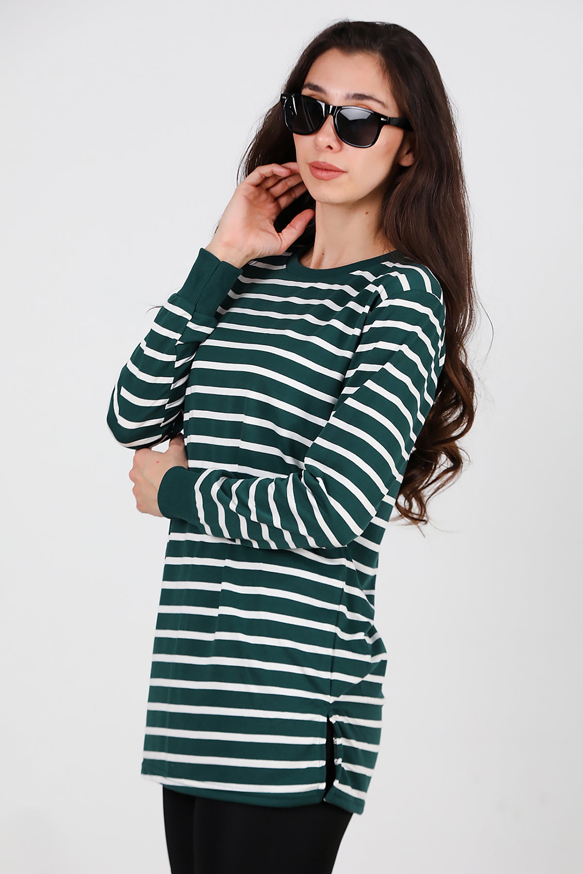 Kadın Yanı Yırtmaçlı Çizgili Tunik Zümrüt