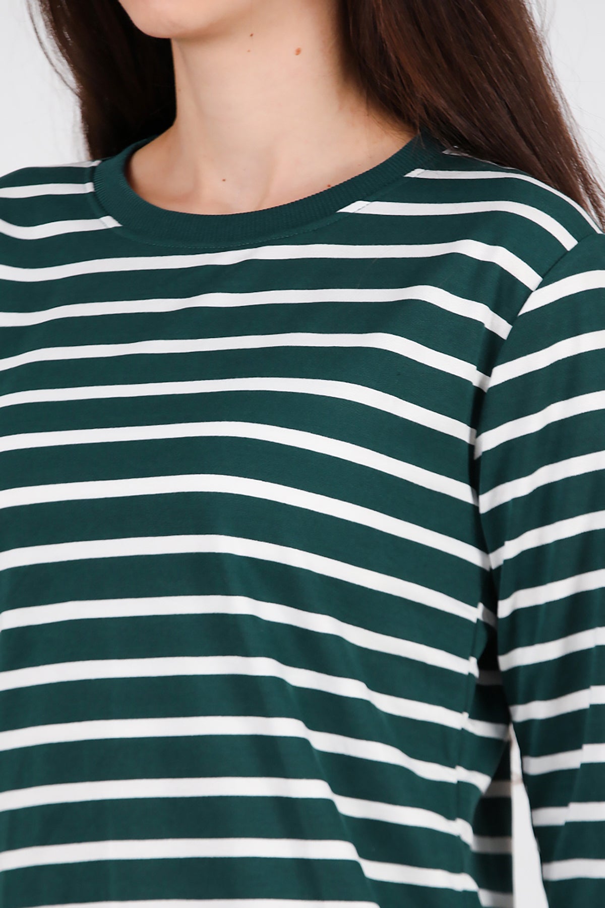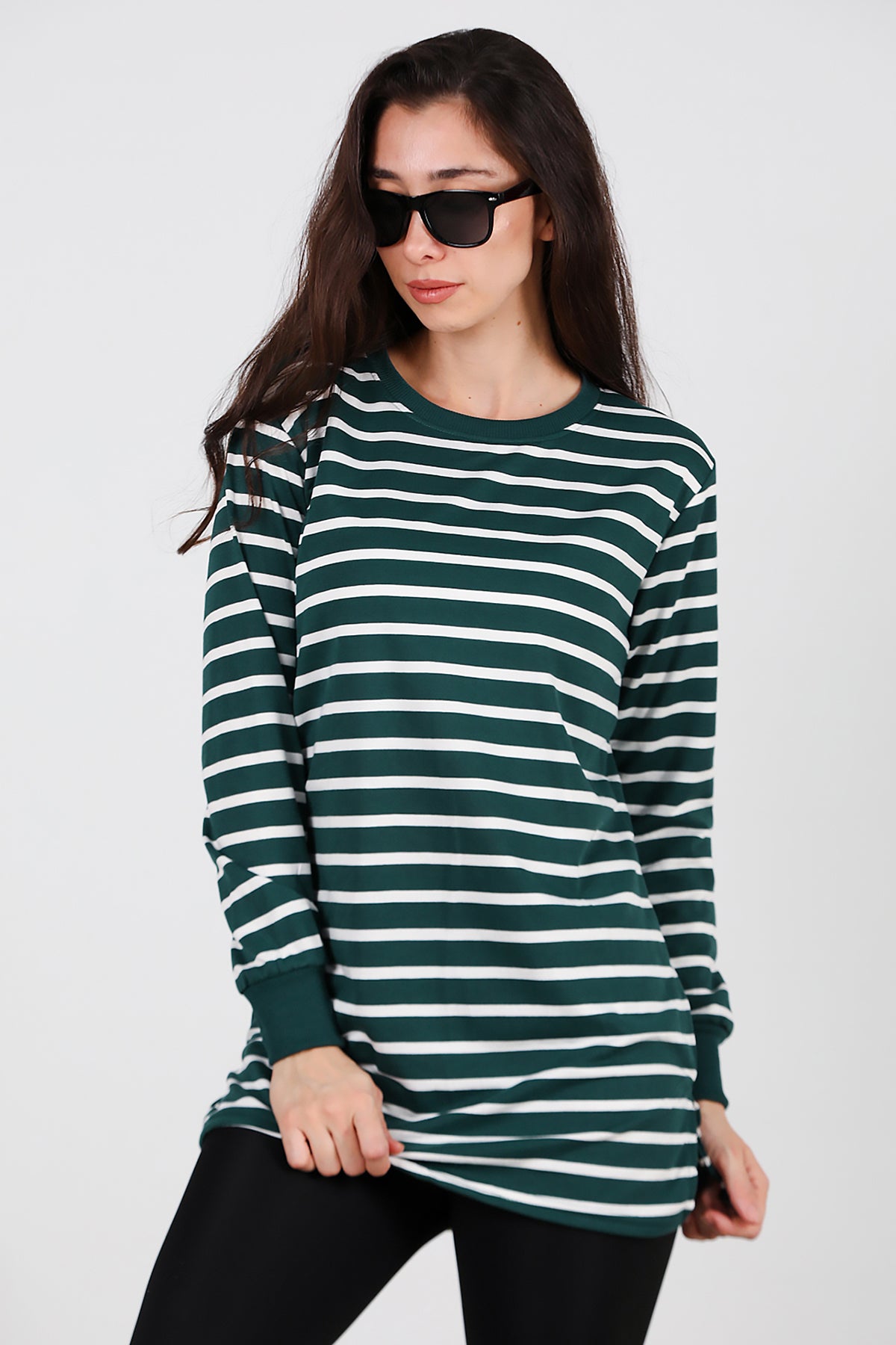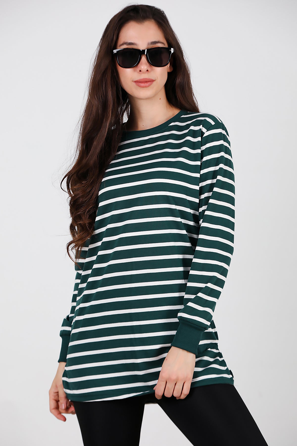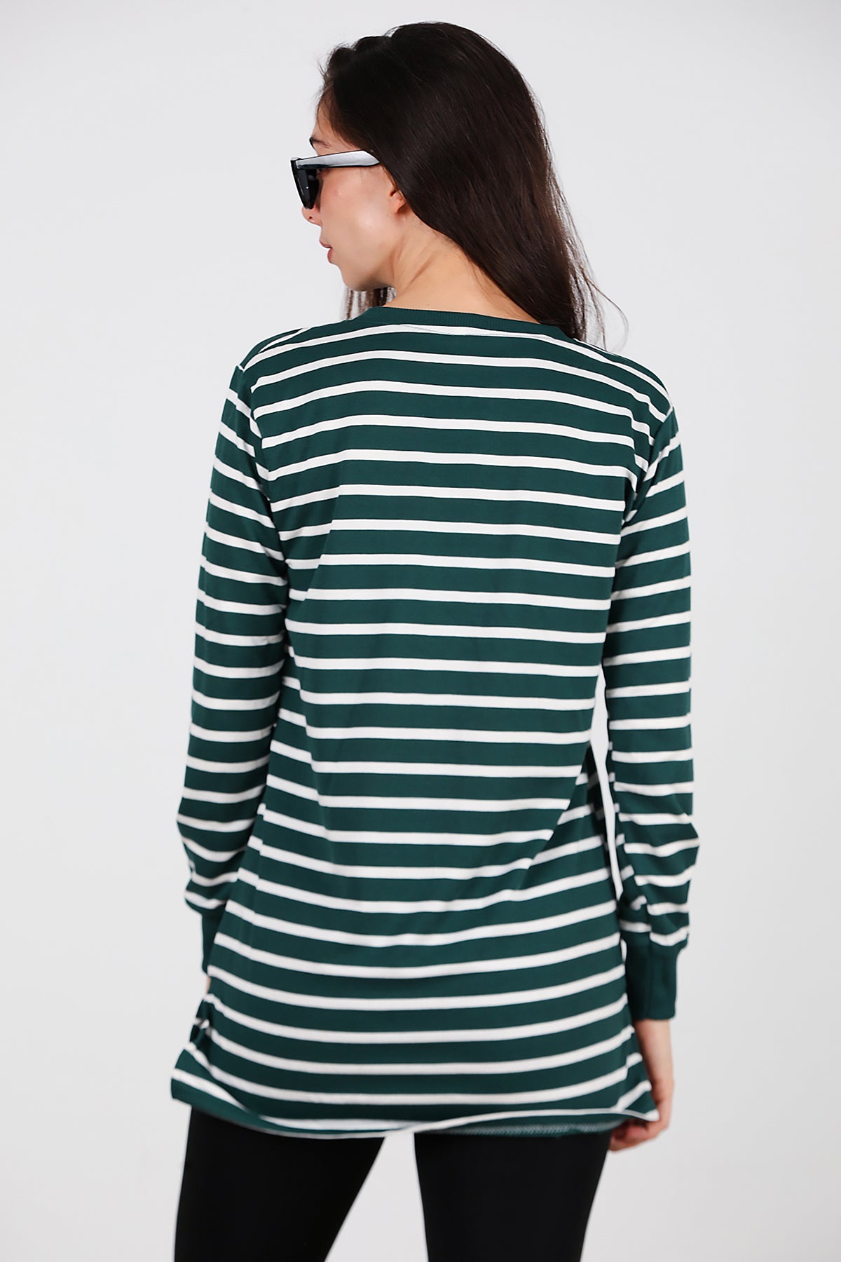 Kadın Yanı Yırtmaçlı Çizgili Tunik Zümrüt