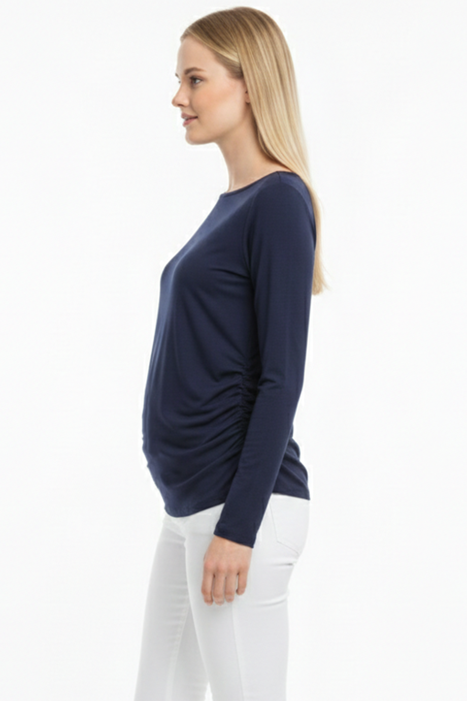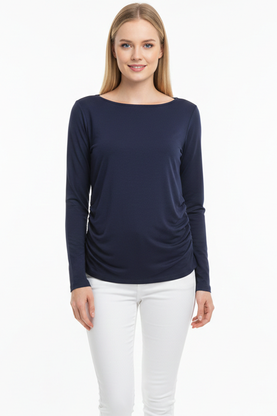 Drapelle Kadın Yanları Büzgülü Kayık Yaka Bady Bluz Lacivert