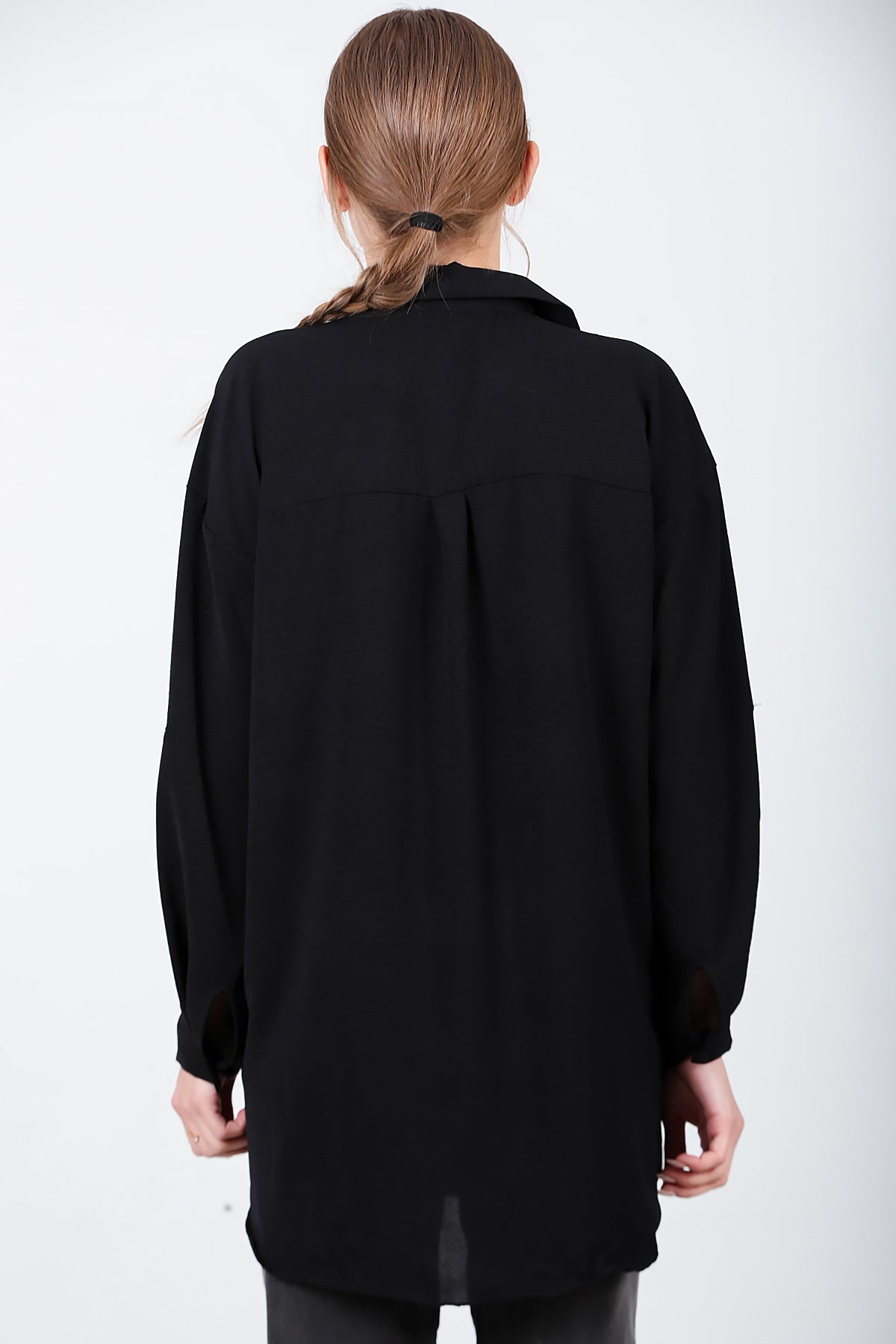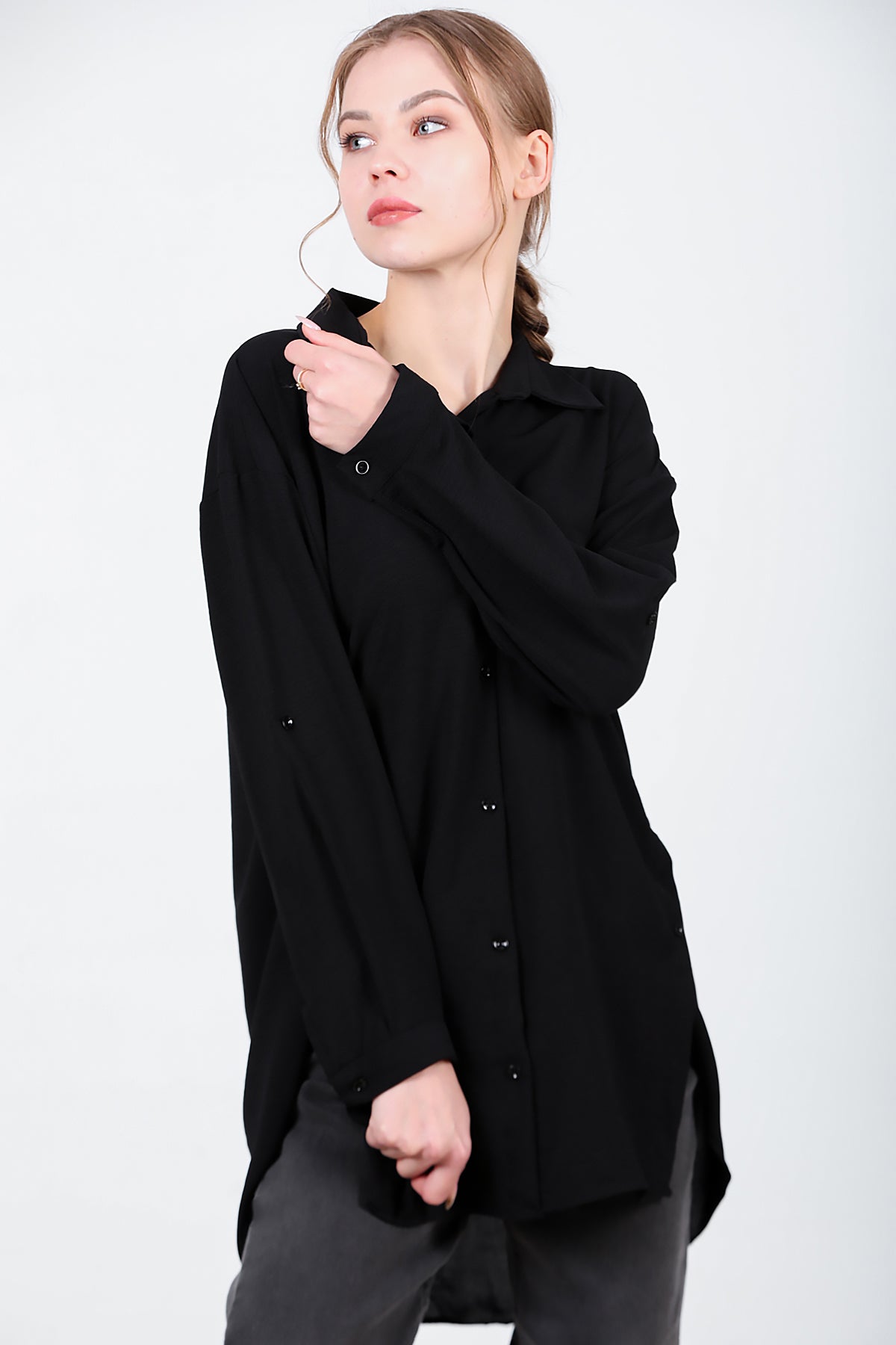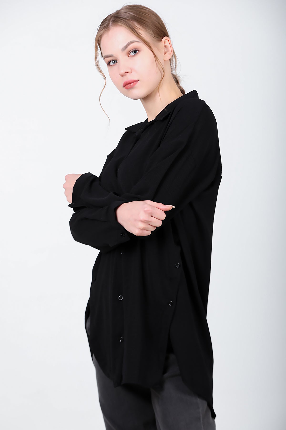 Kadın Yanları Düğmeli Gömlek Siyah
