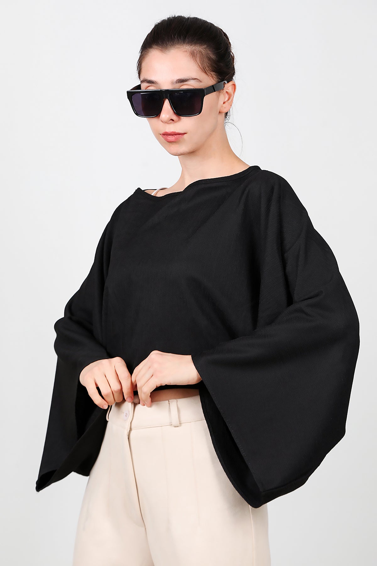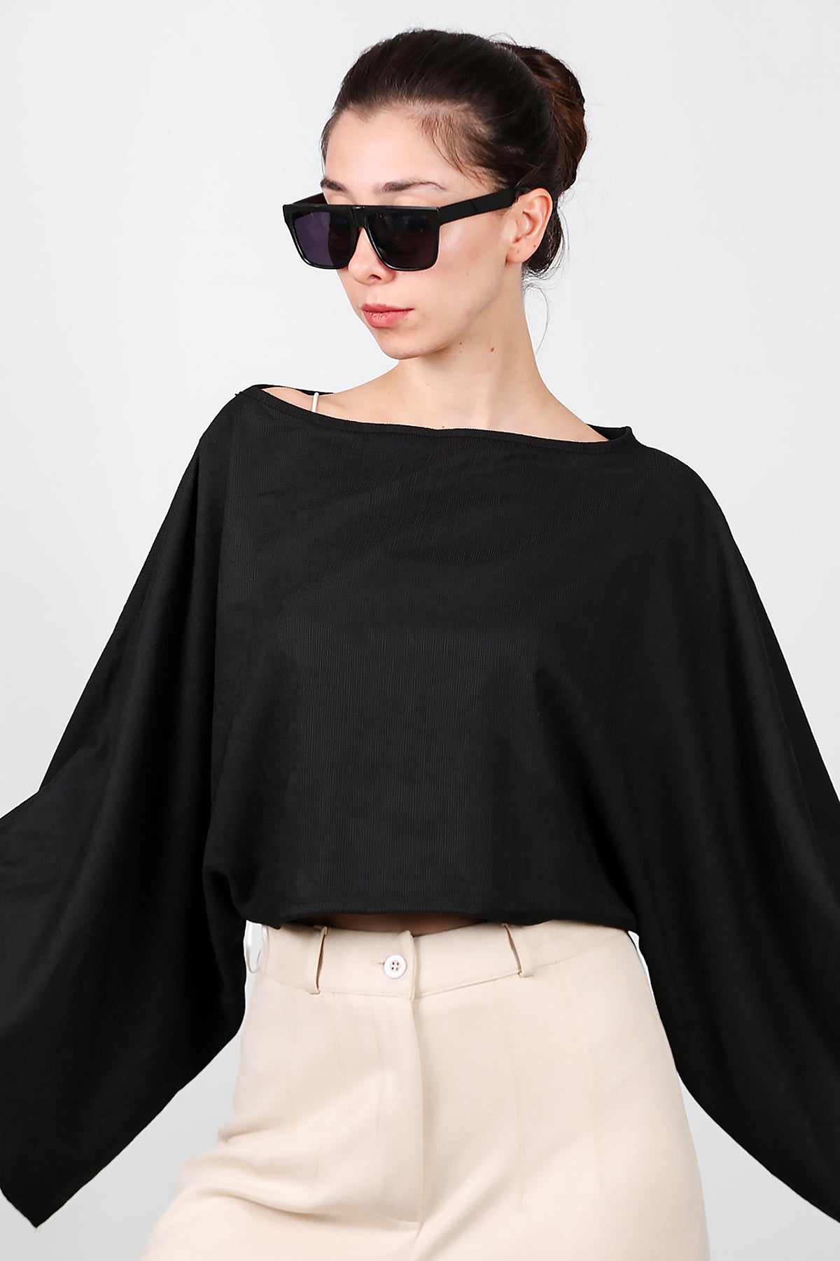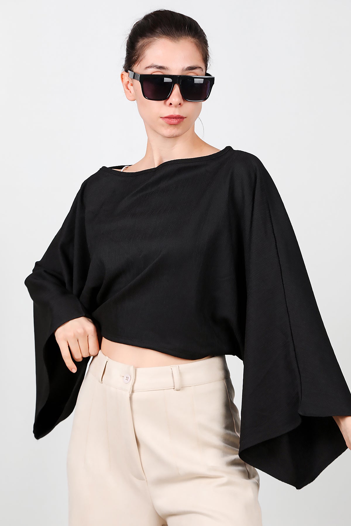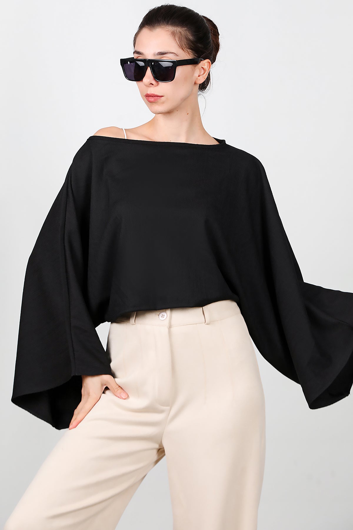 Kadın Yarasa Kol Kayık Yaka Bluz Siyah