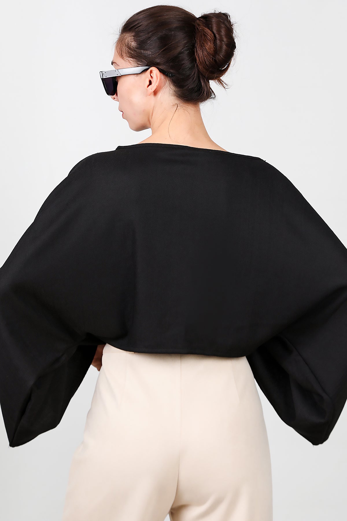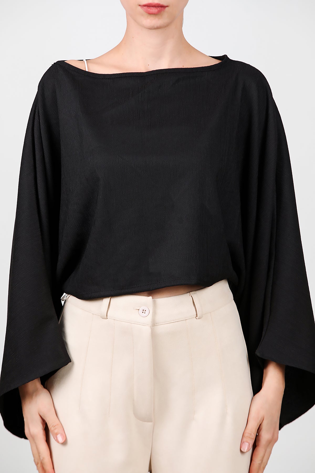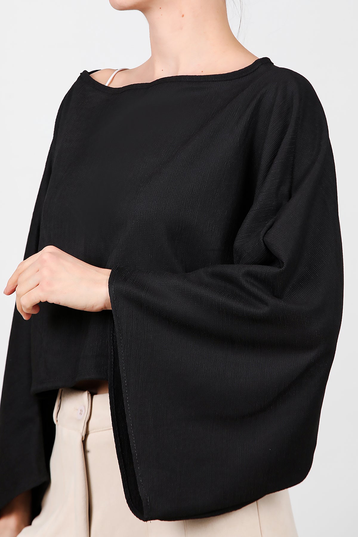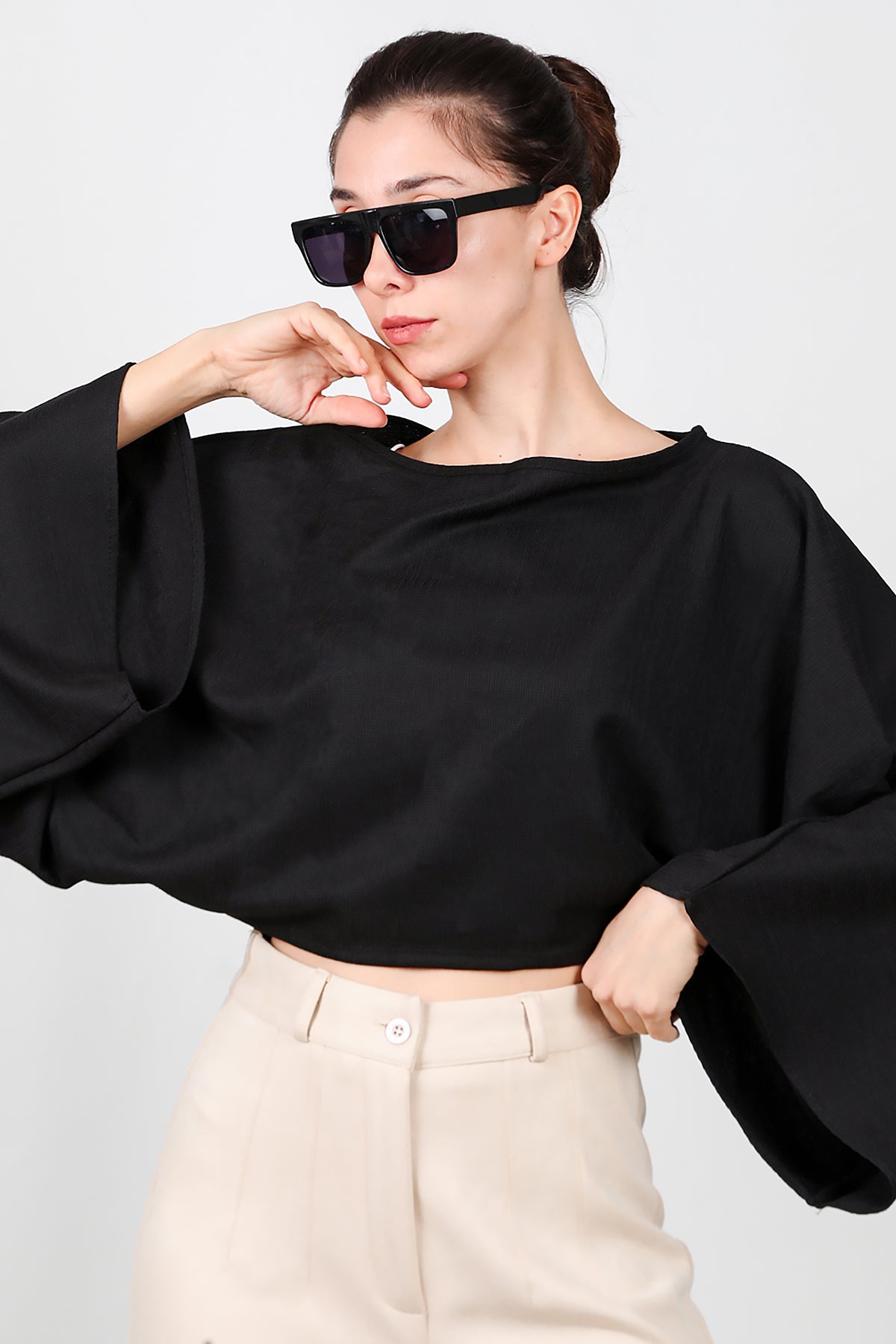 Kadın Yarasa Kol Kayık Yaka Bluz Siyah