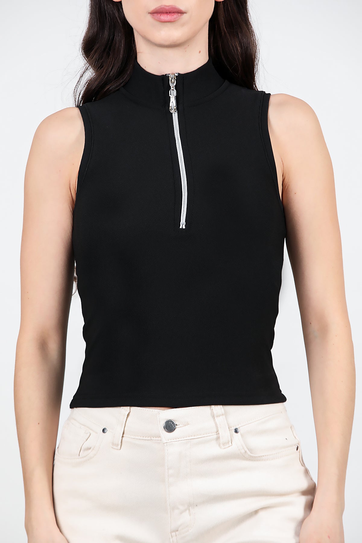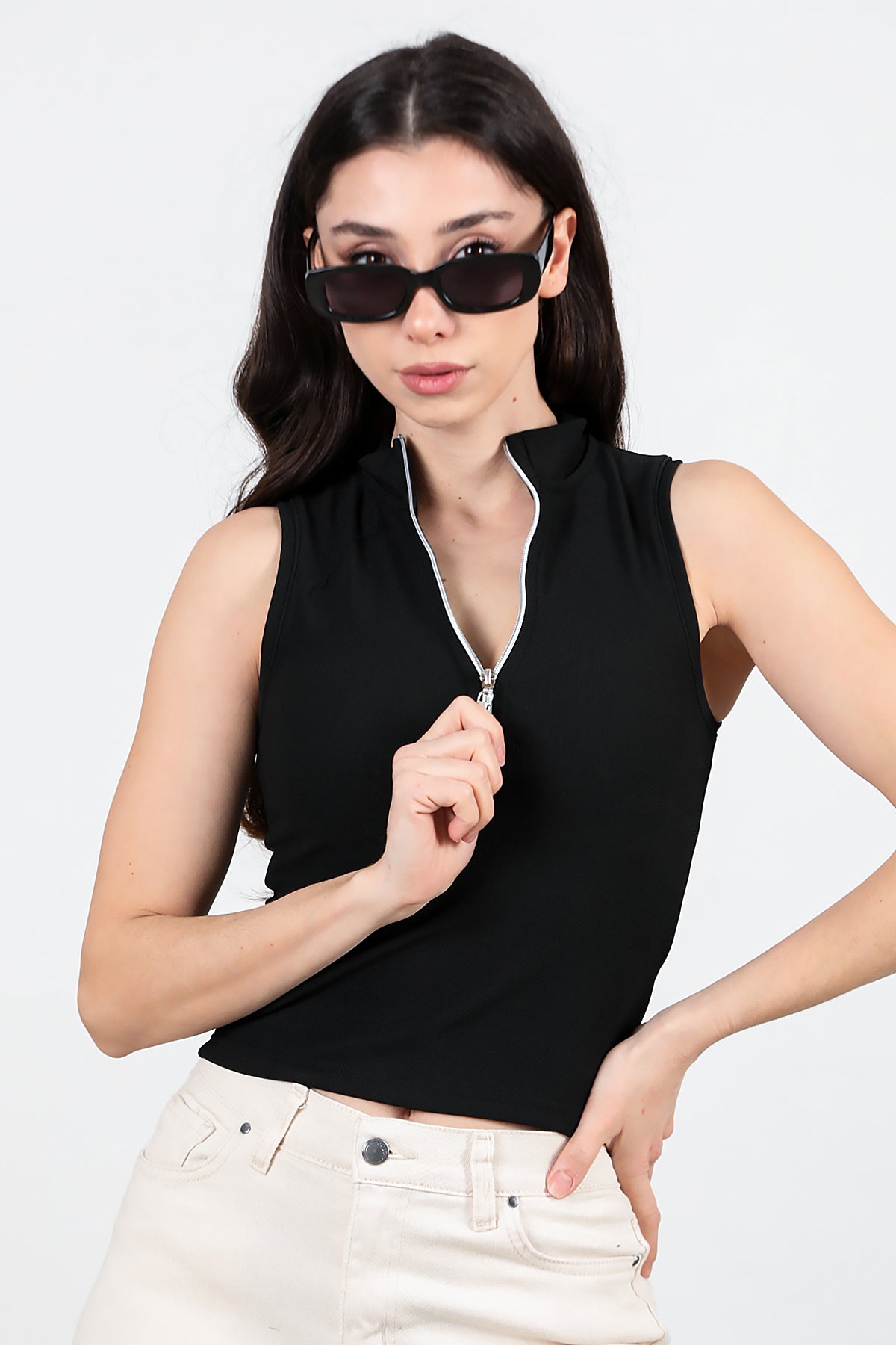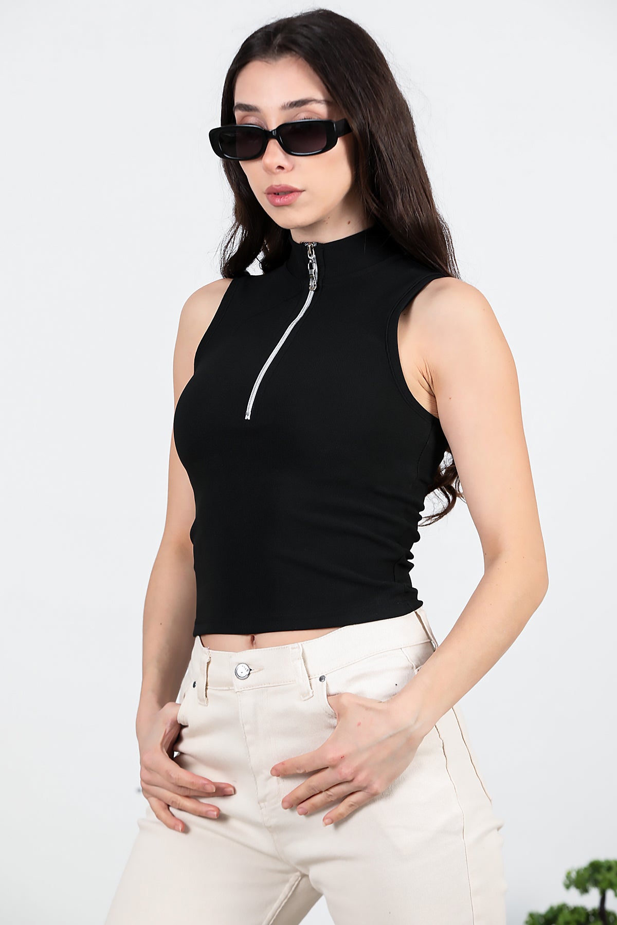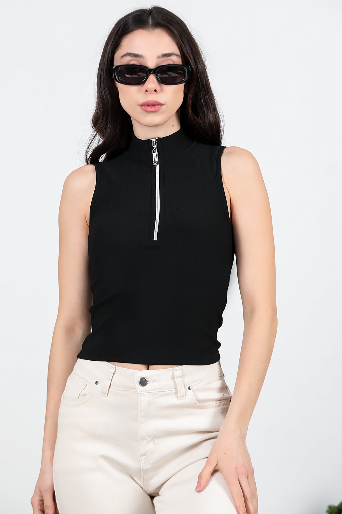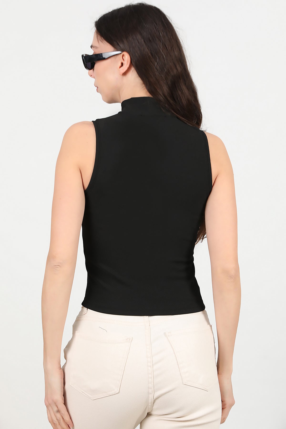 Kadın Yarım Balıkçı Yaka Fermuarlı Bady Siyah