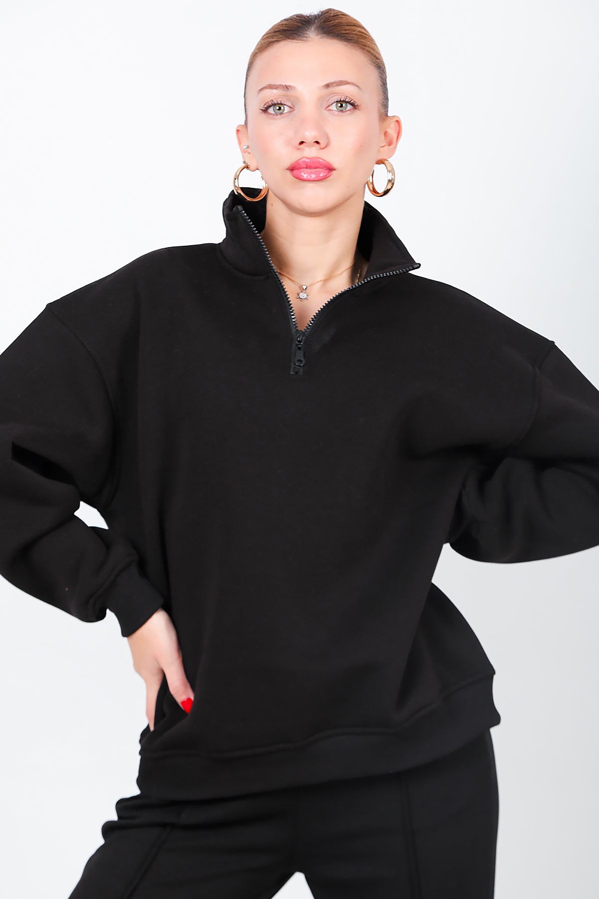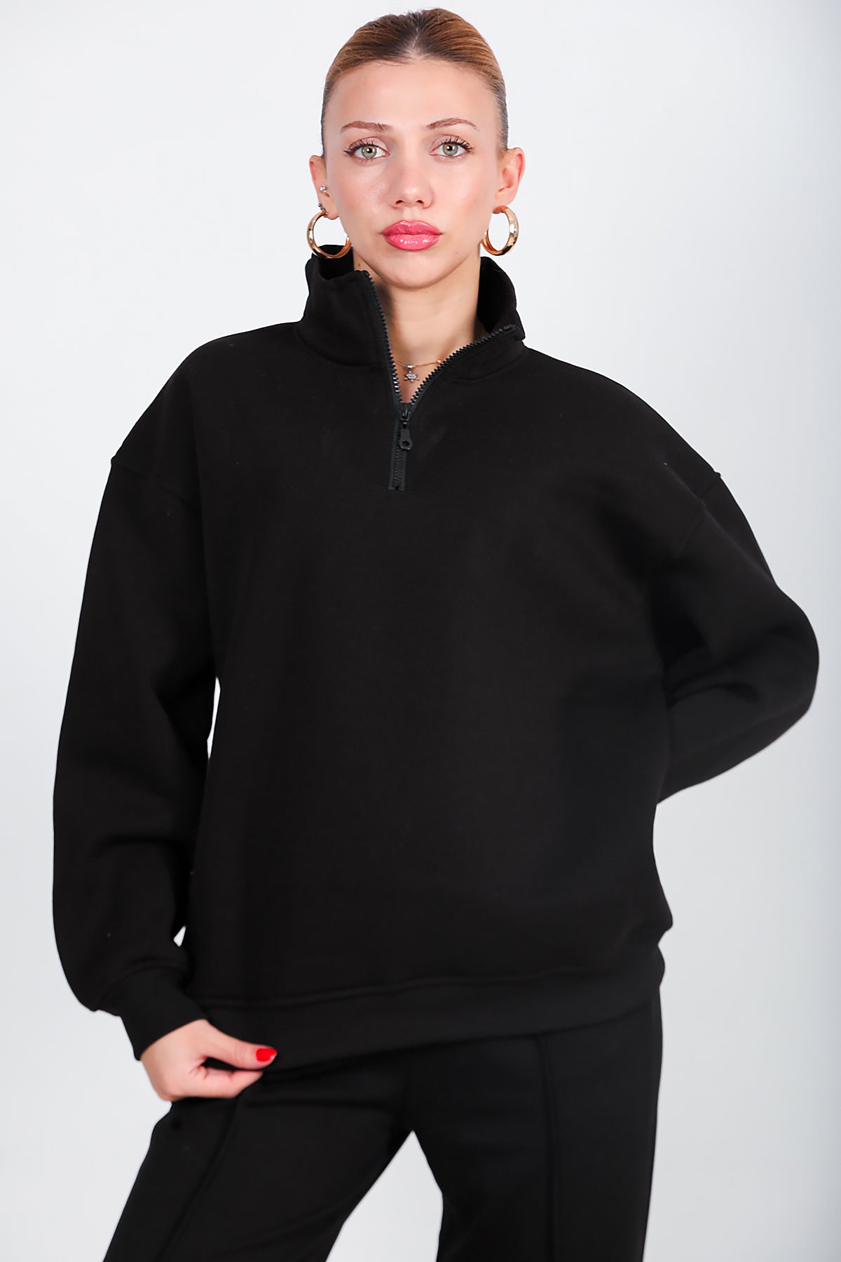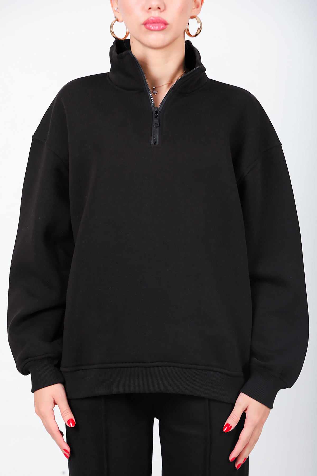 Kadın Yarım Balıkçı Yaka Fermuarlı Sweat Siyah