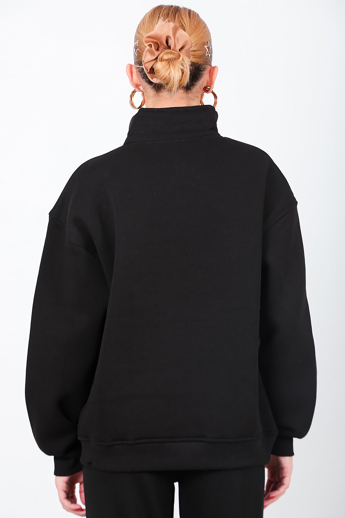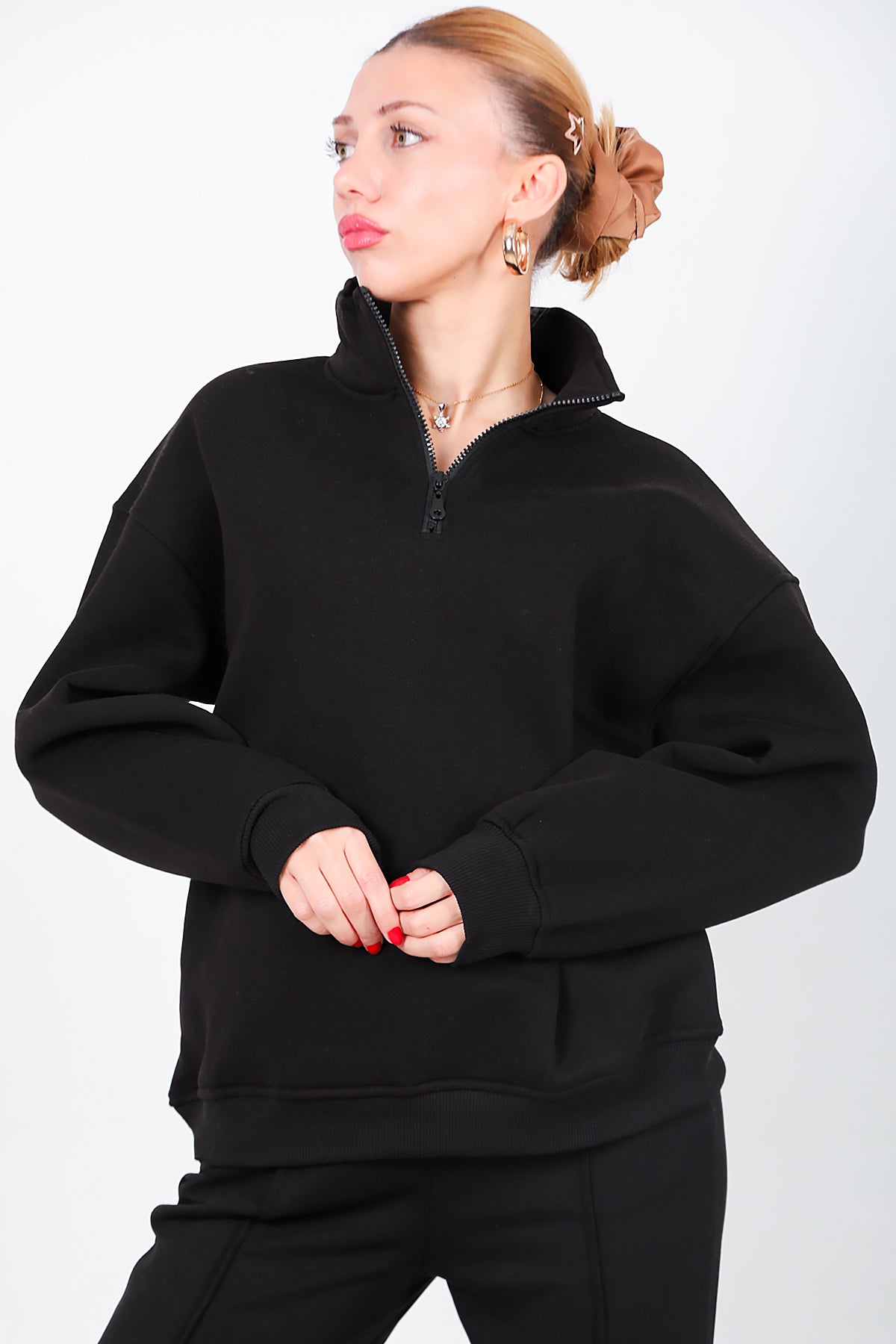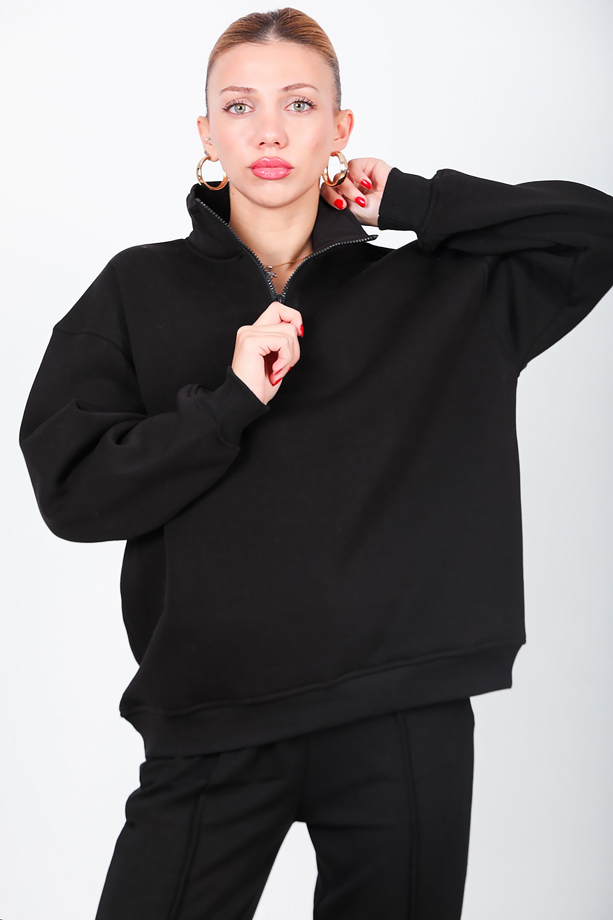 Kadın Yarım Balıkçı Yaka Fermuarlı Sweat Siyah