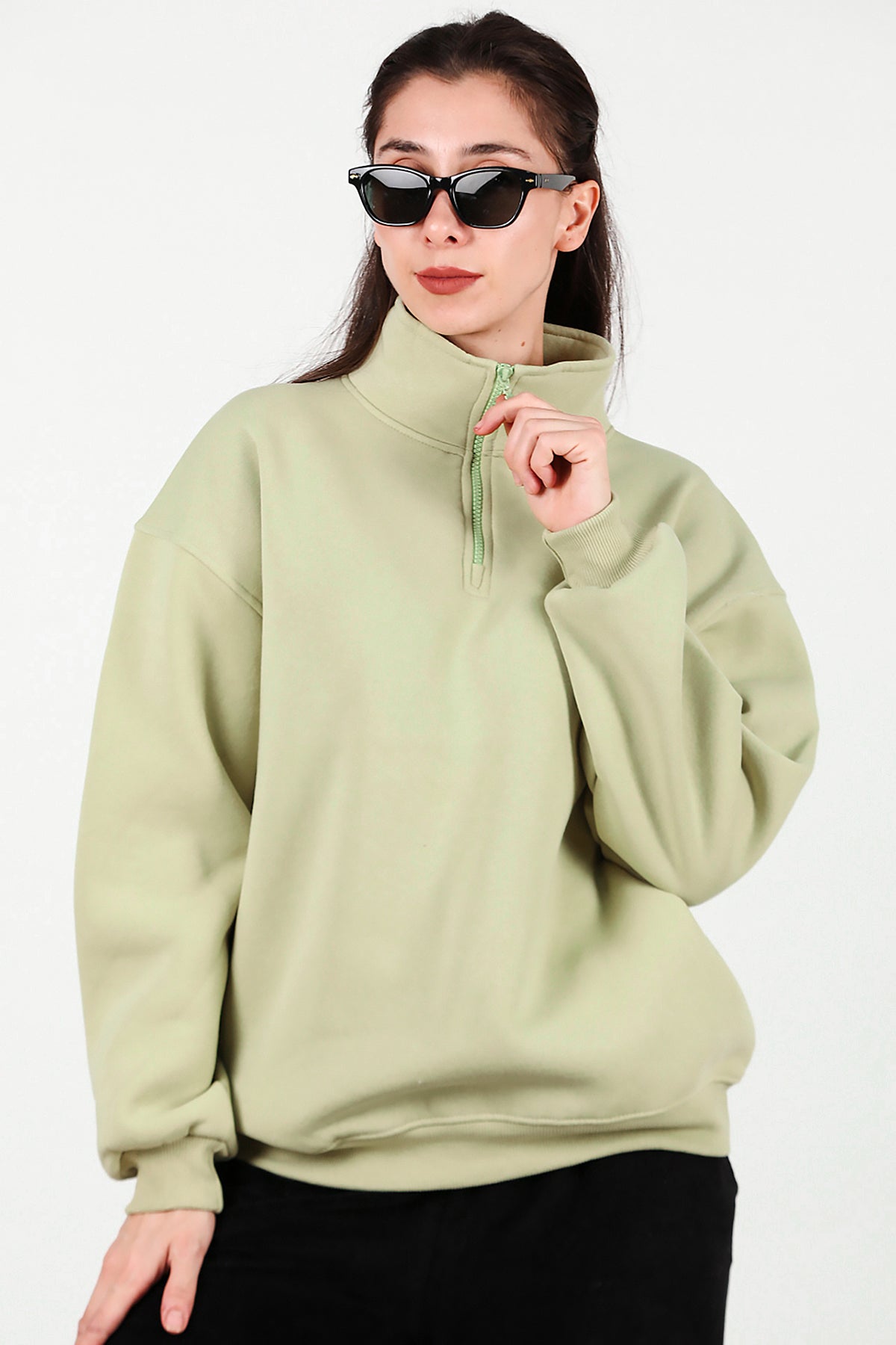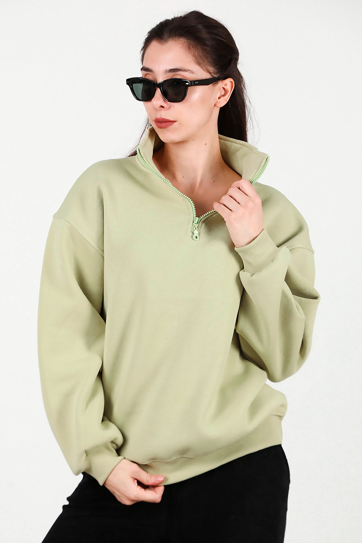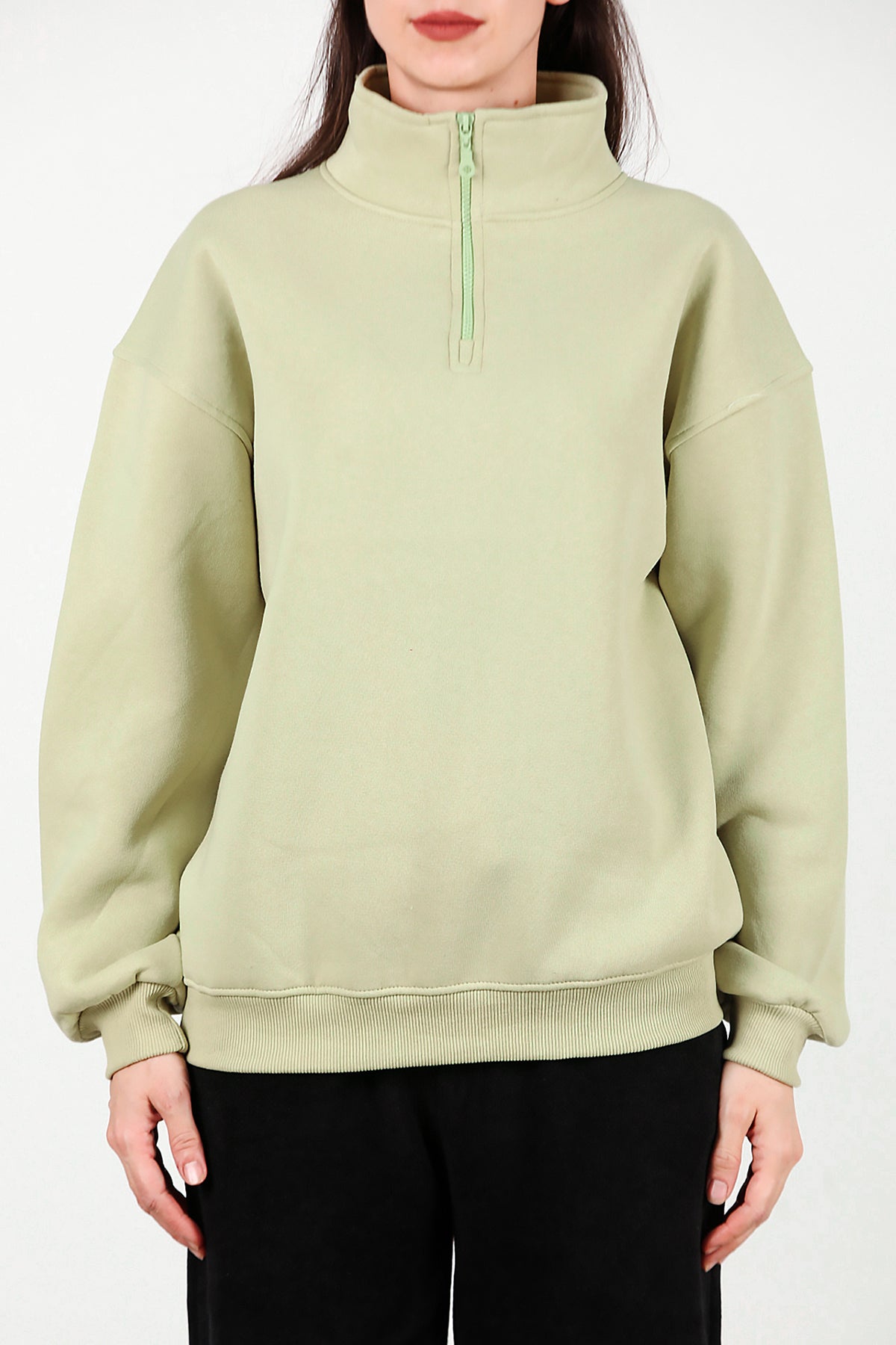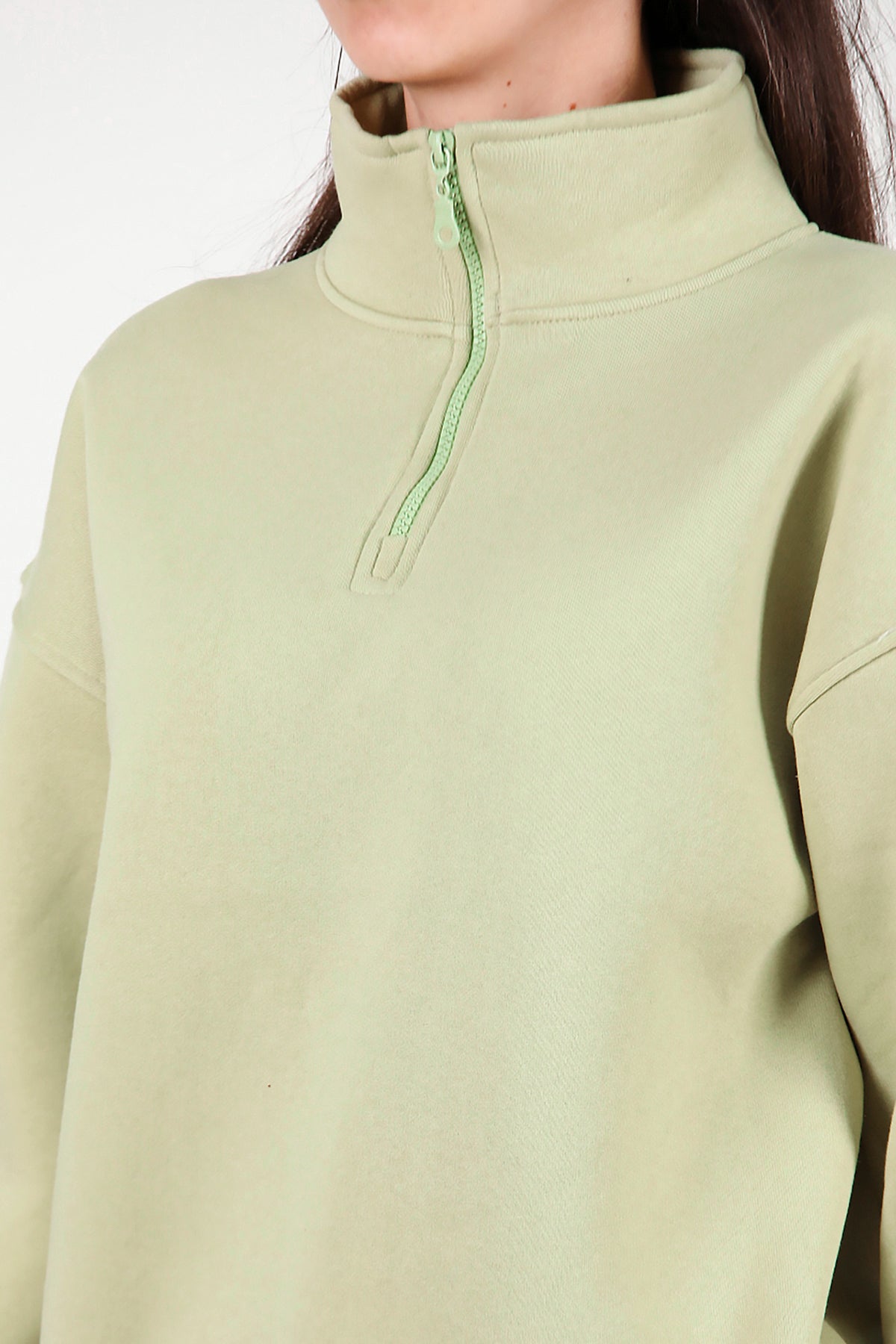 Kadın Yarım Balıkçı Yaka Fermuarlı Sweat Yeşil