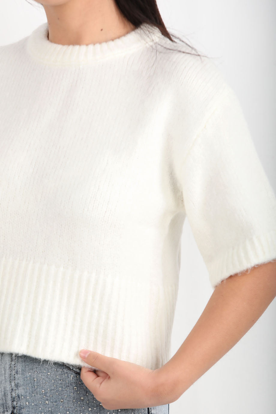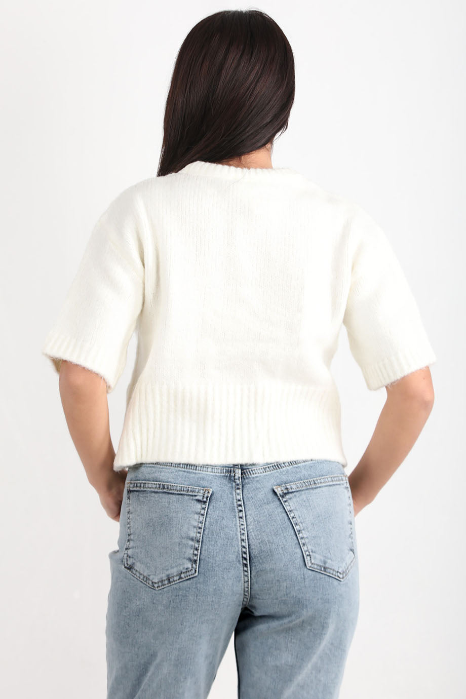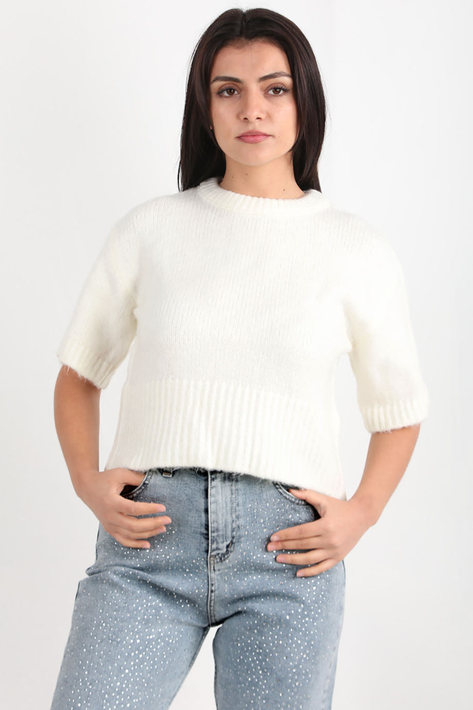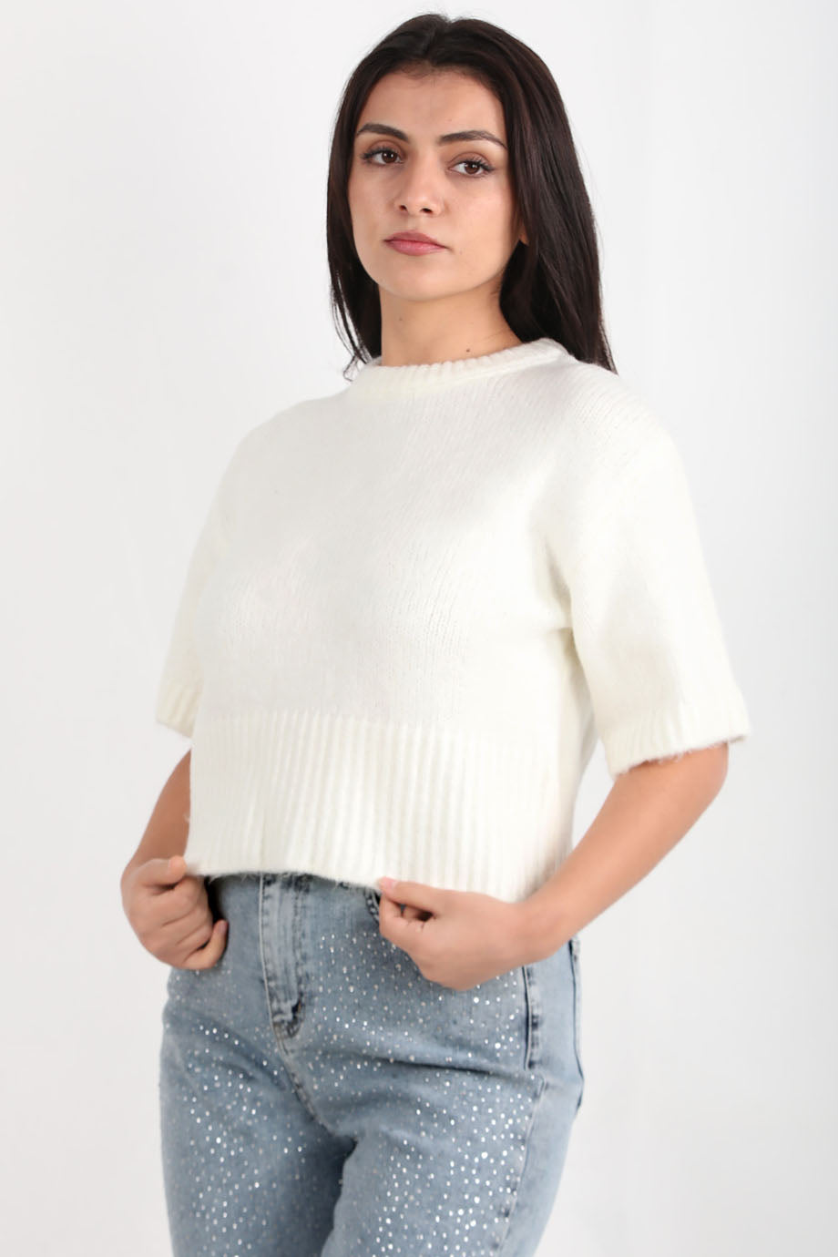 Pureva Kadın Yarım Kol Örme Kazak Ekru