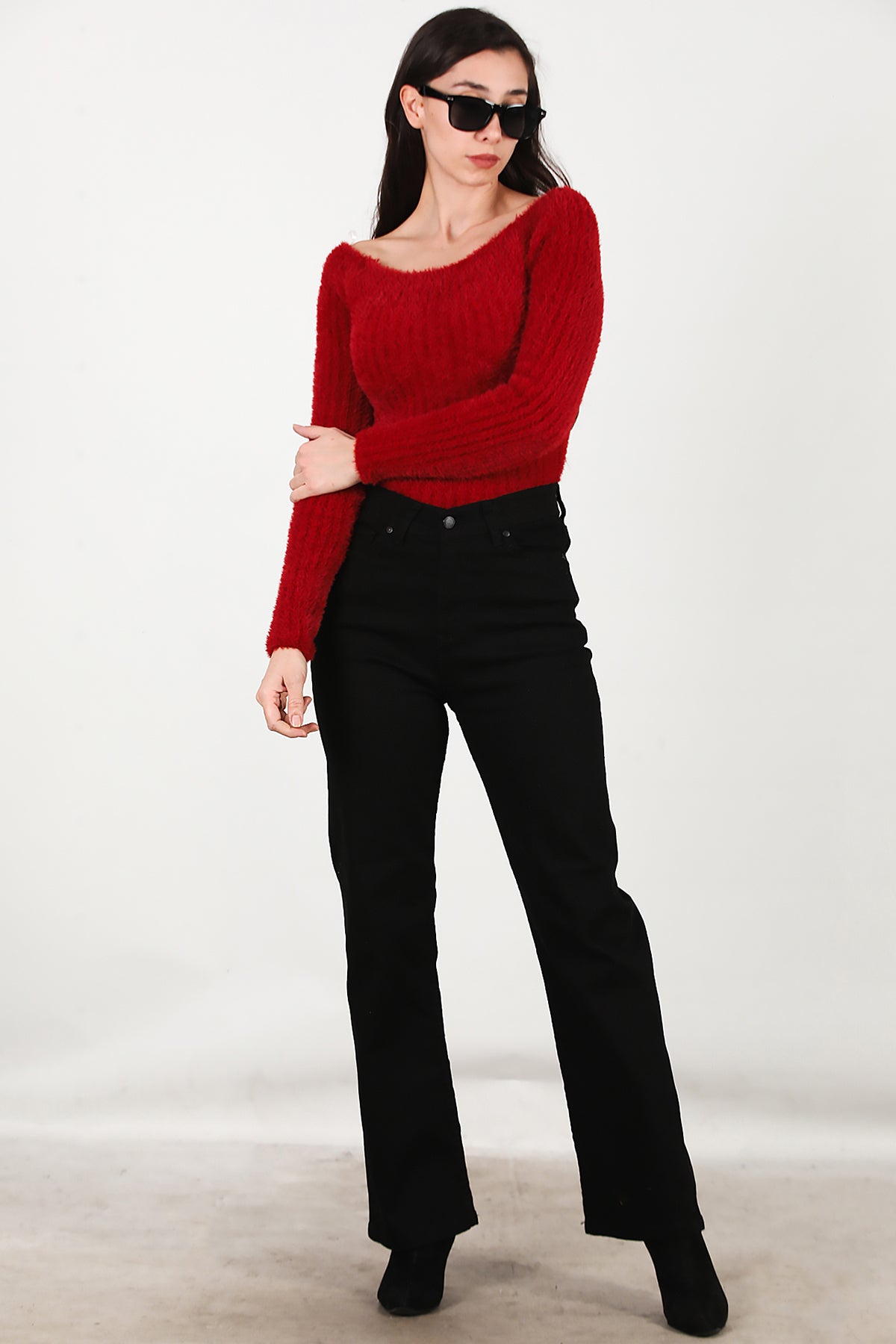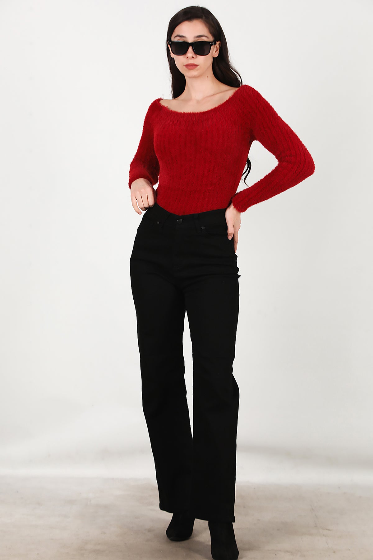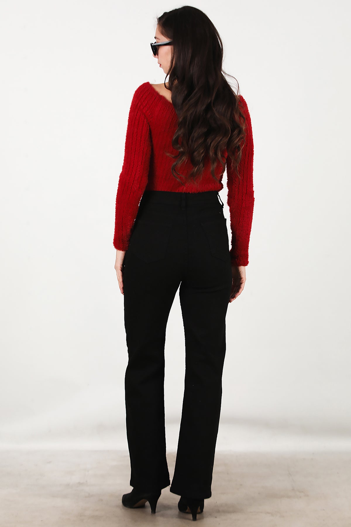 Kadın Yarım Palazza Kot Pantolon Siyah