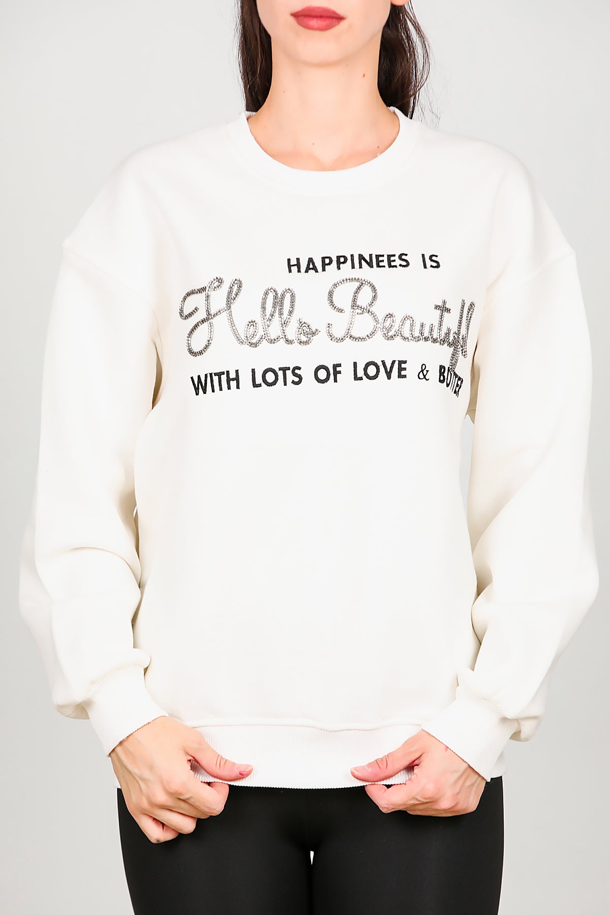 Kadın Yazı Detay Şardonlu Sweat Ekru