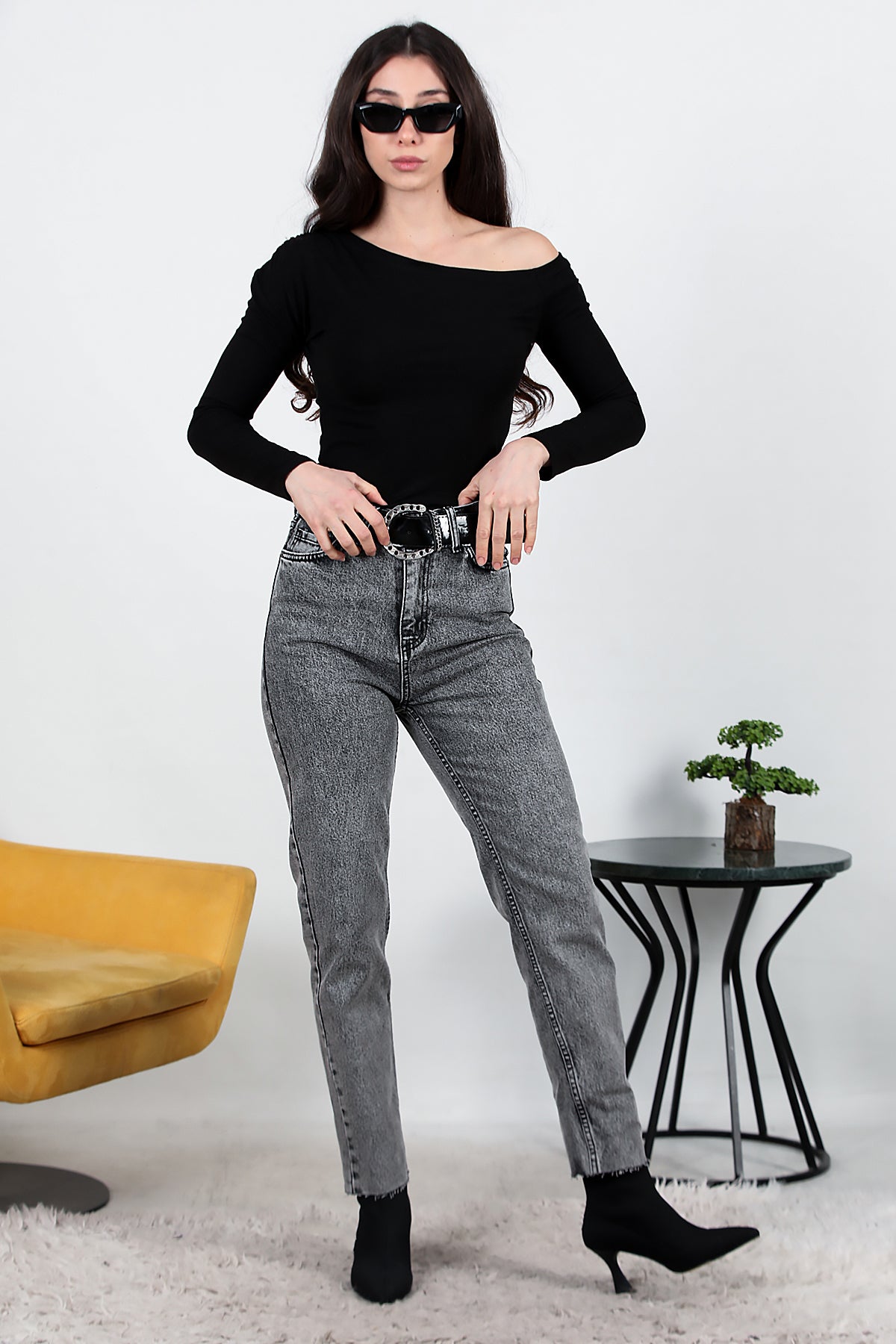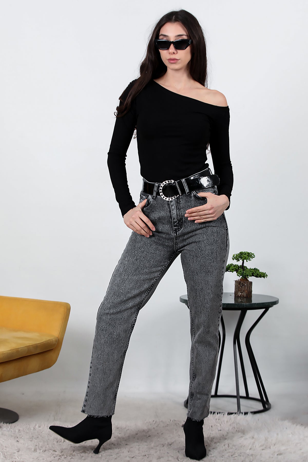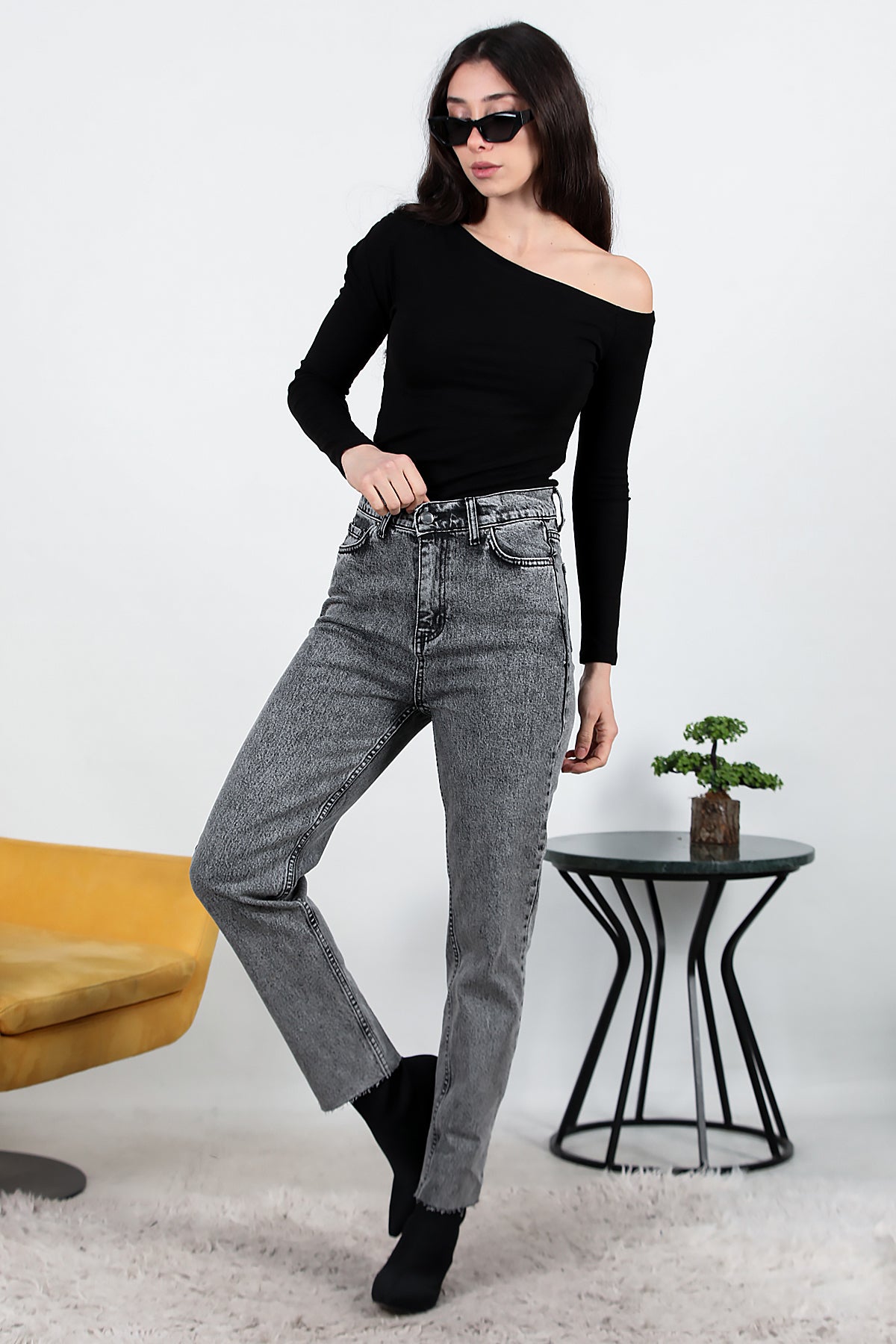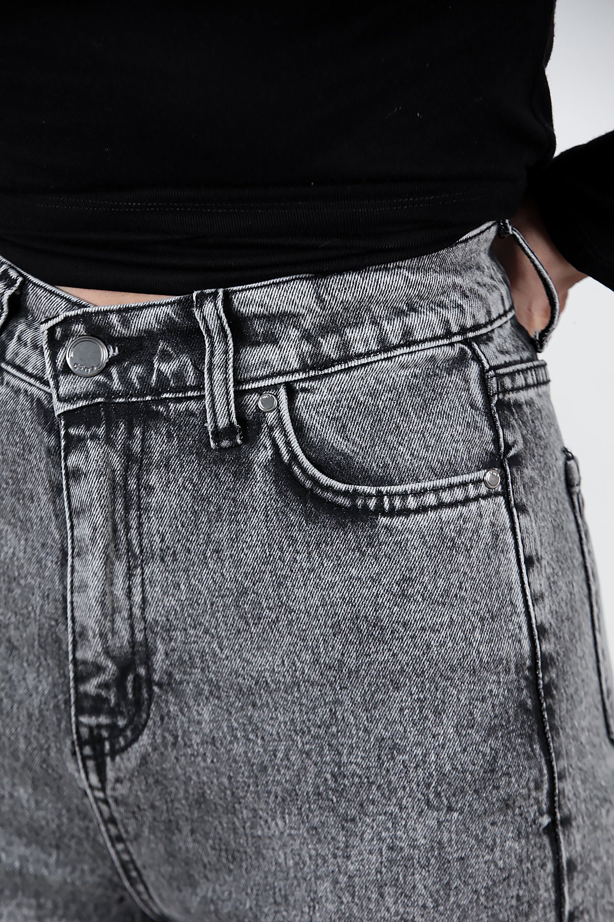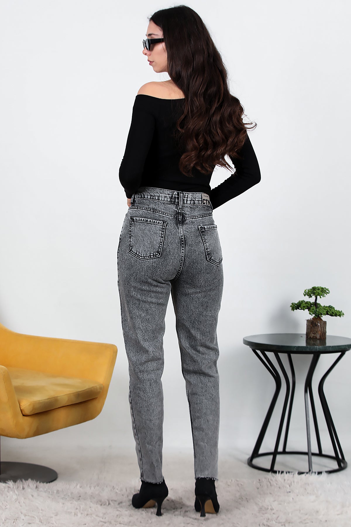 Kadın Yıpratmalı Paça Kesik Pantolon Antrasit