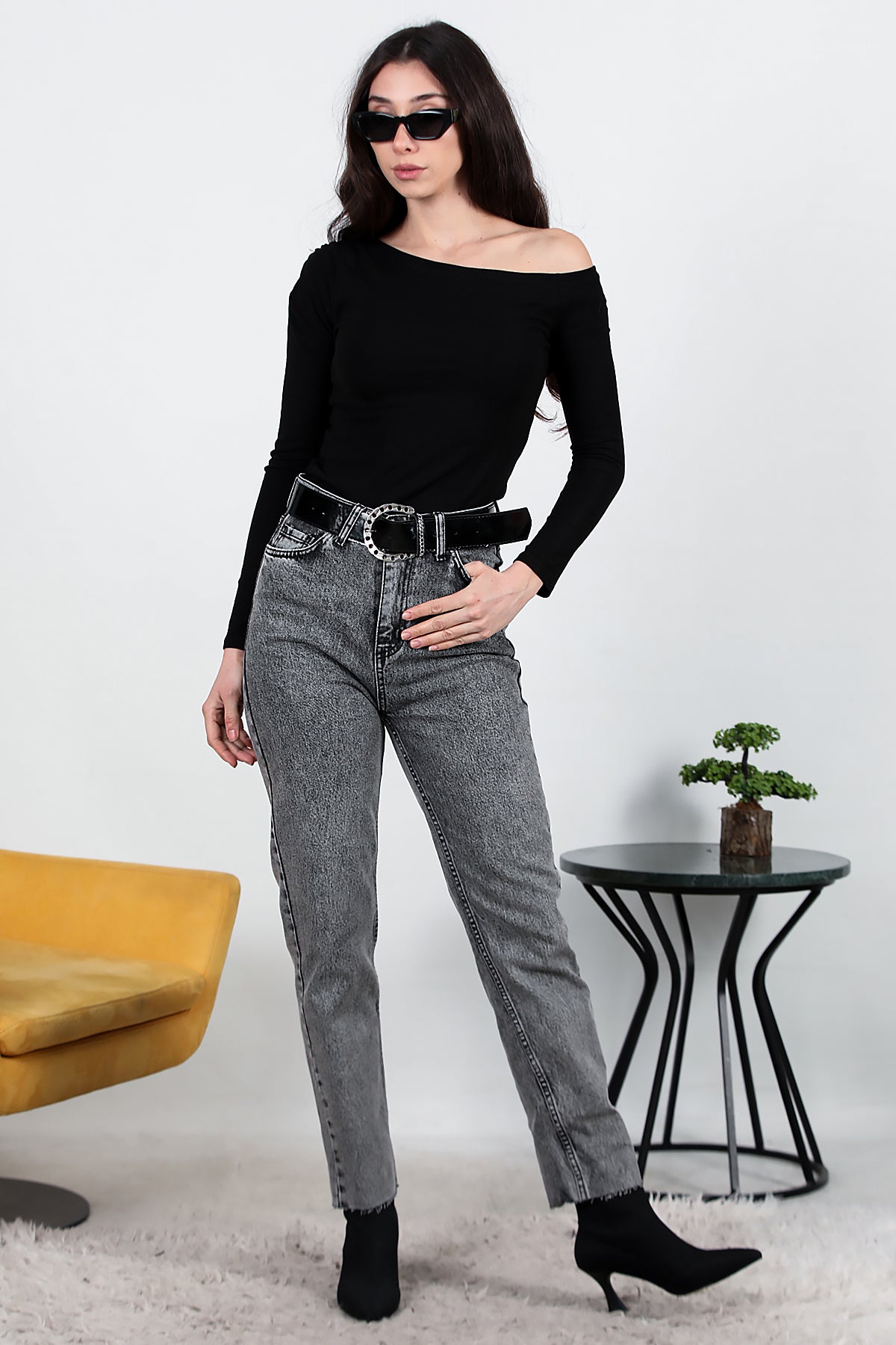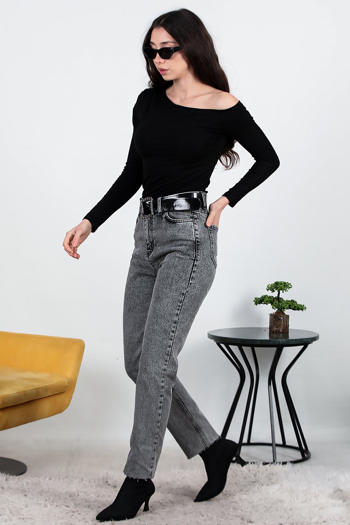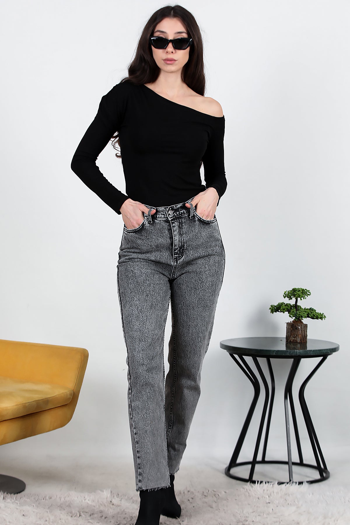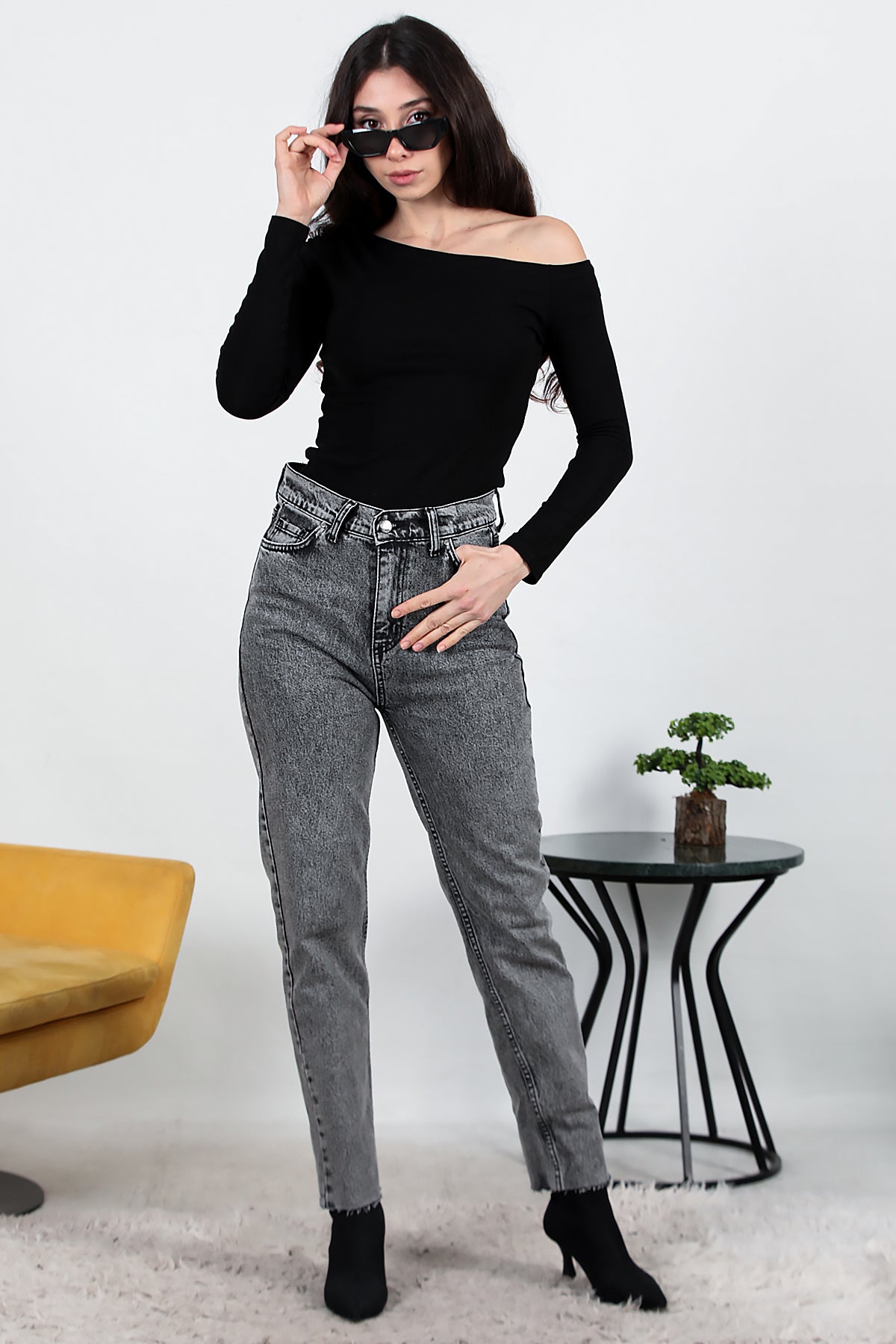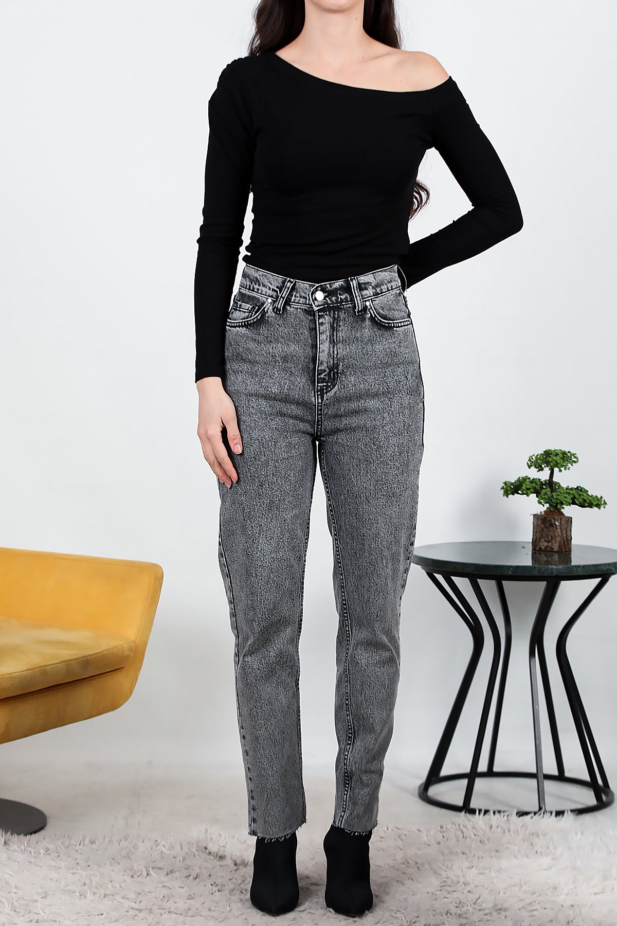 Kadın Yıpratmalı Paça Kesik Pantolon Antrasit