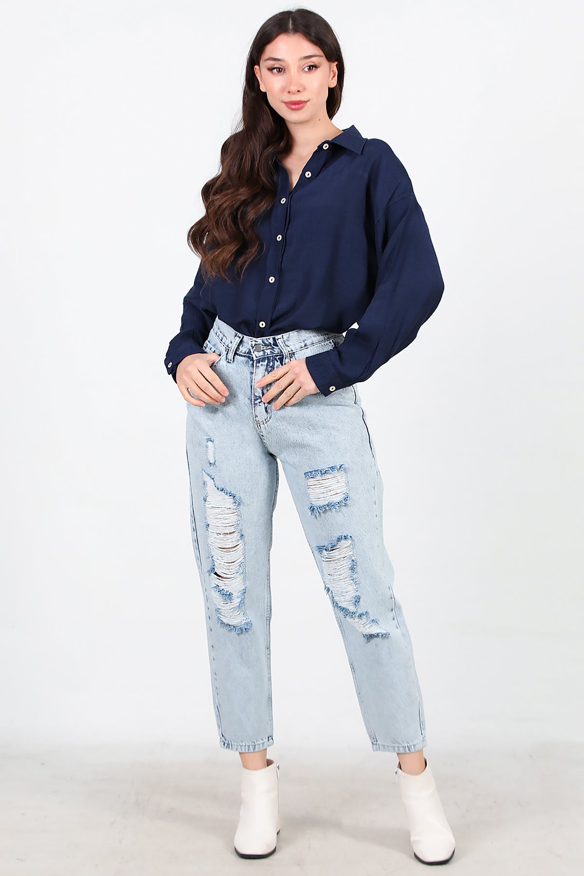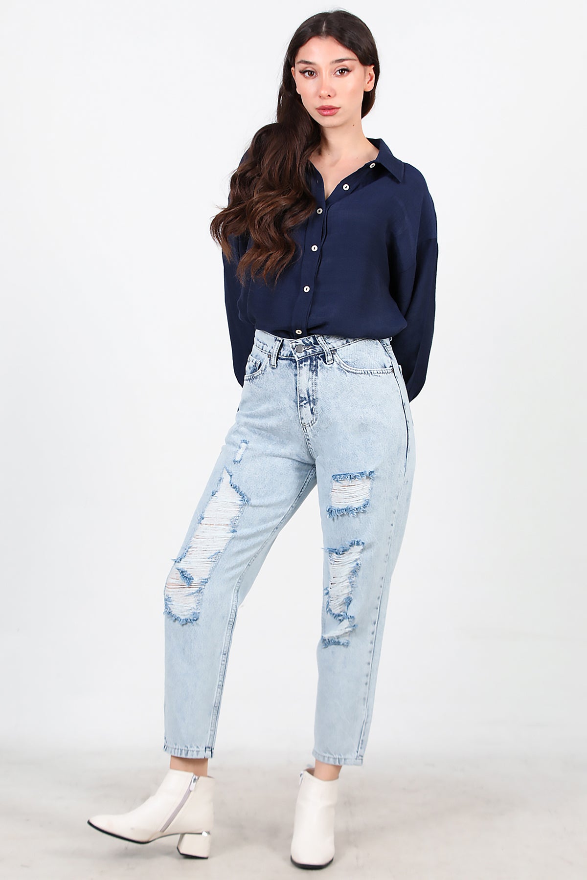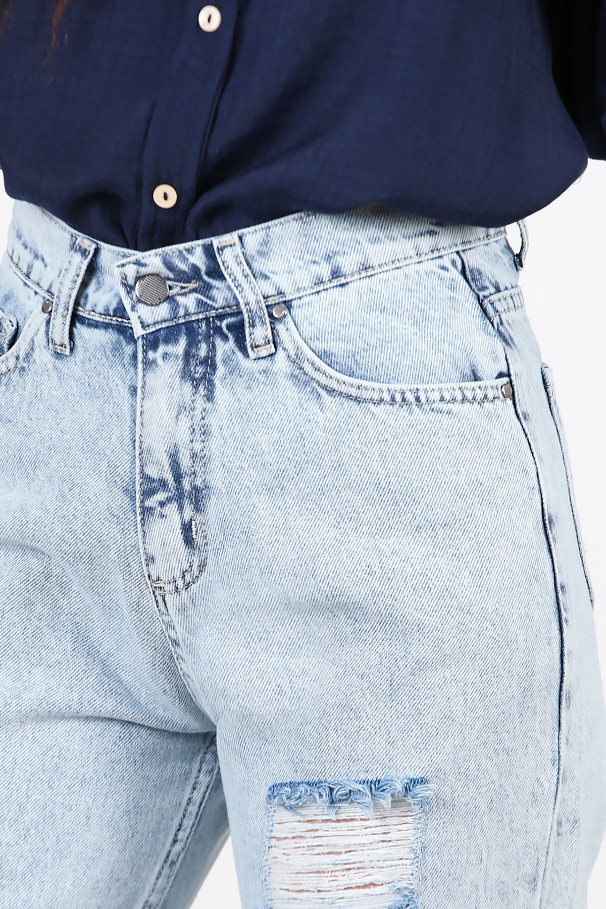 Kadın Yırtık Mom Kot Pantolon