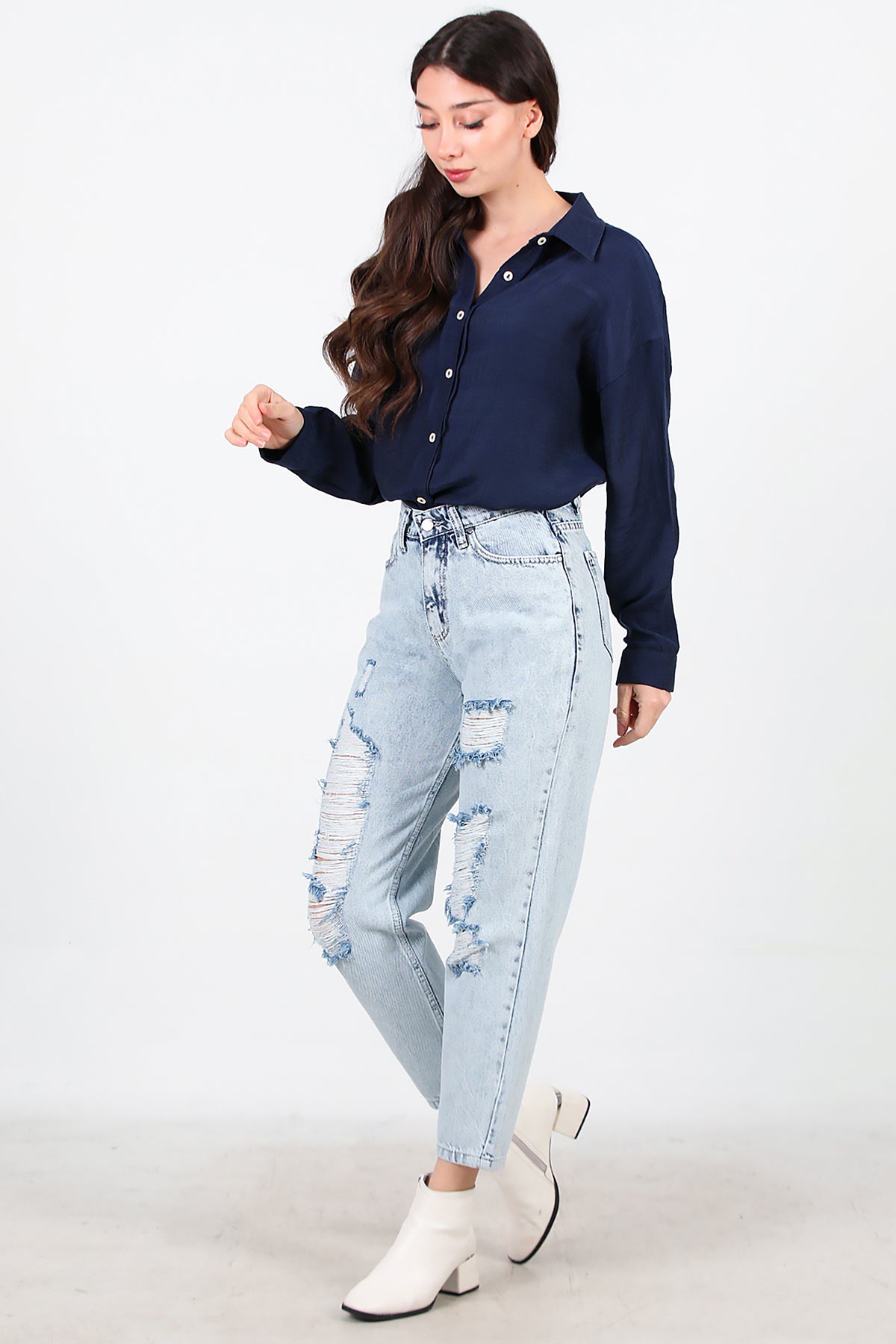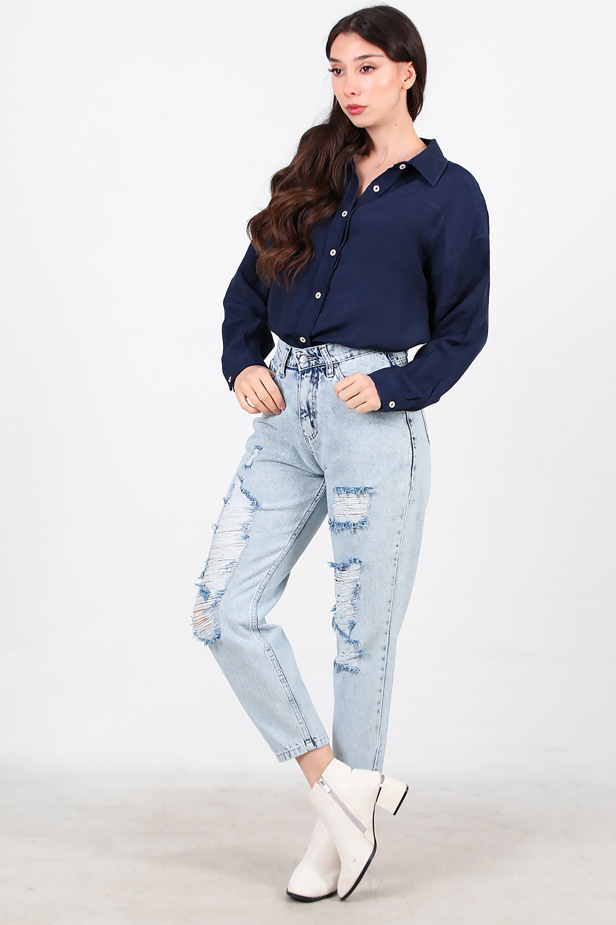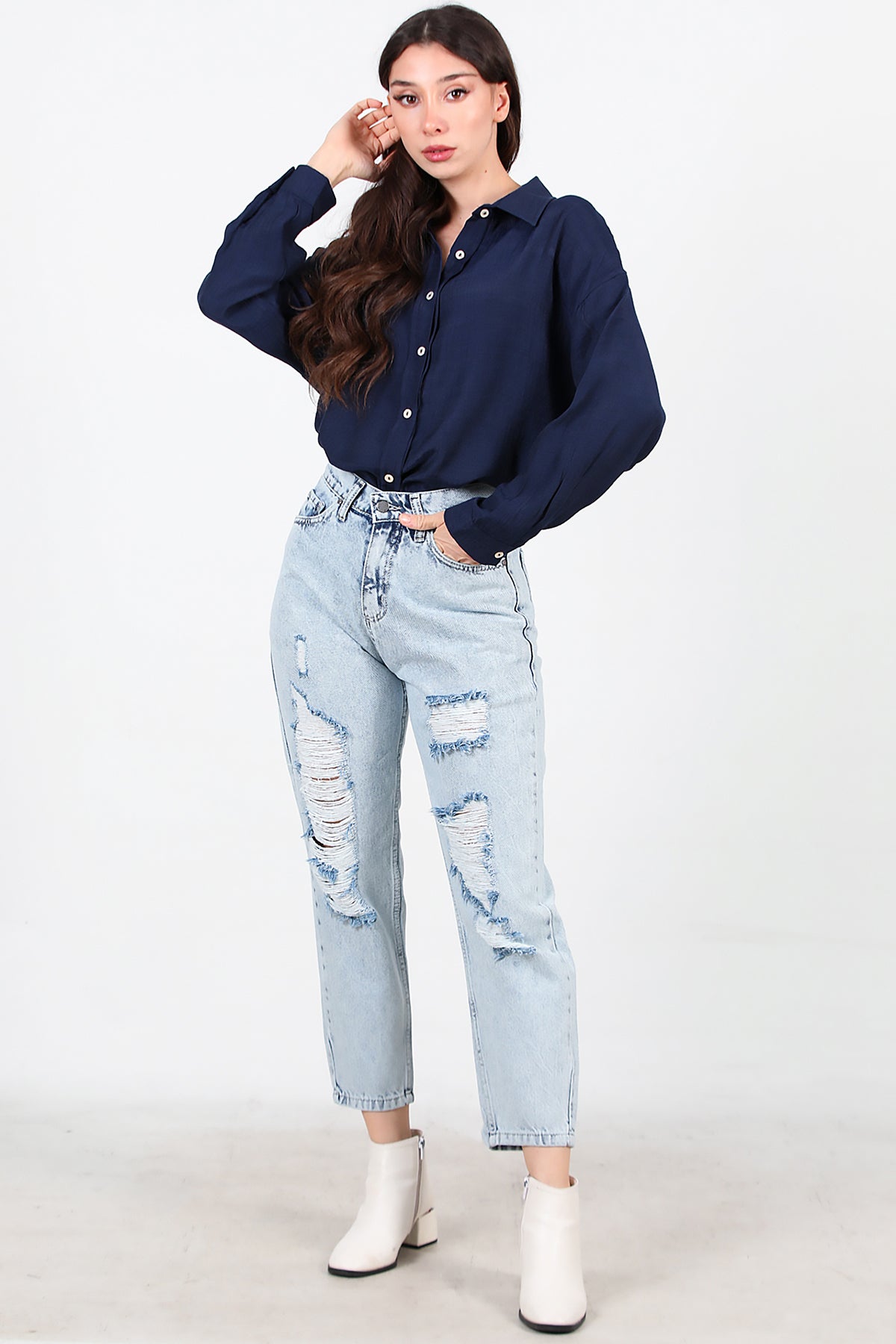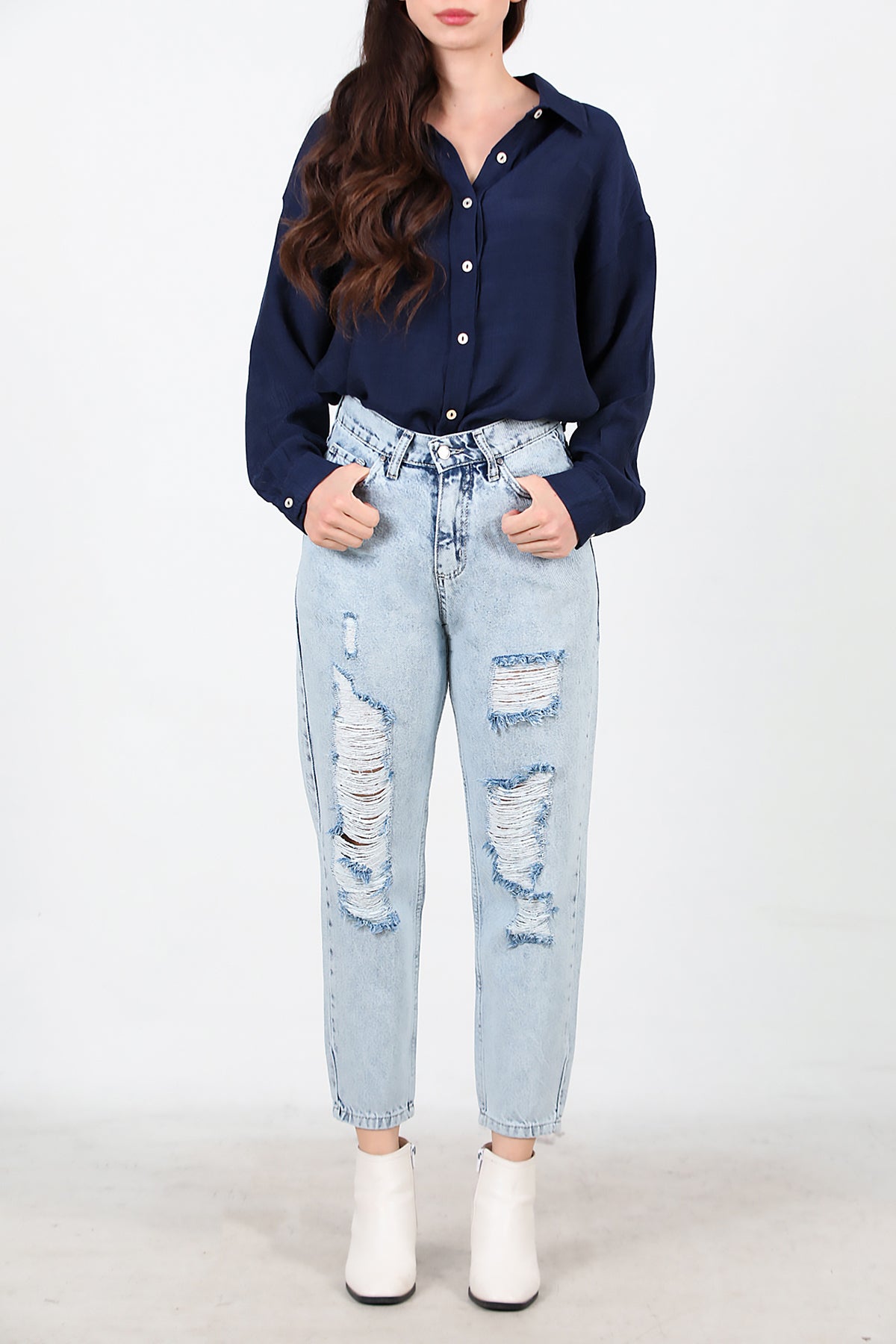 Kadın Yırtık Mom Kot Pantolon