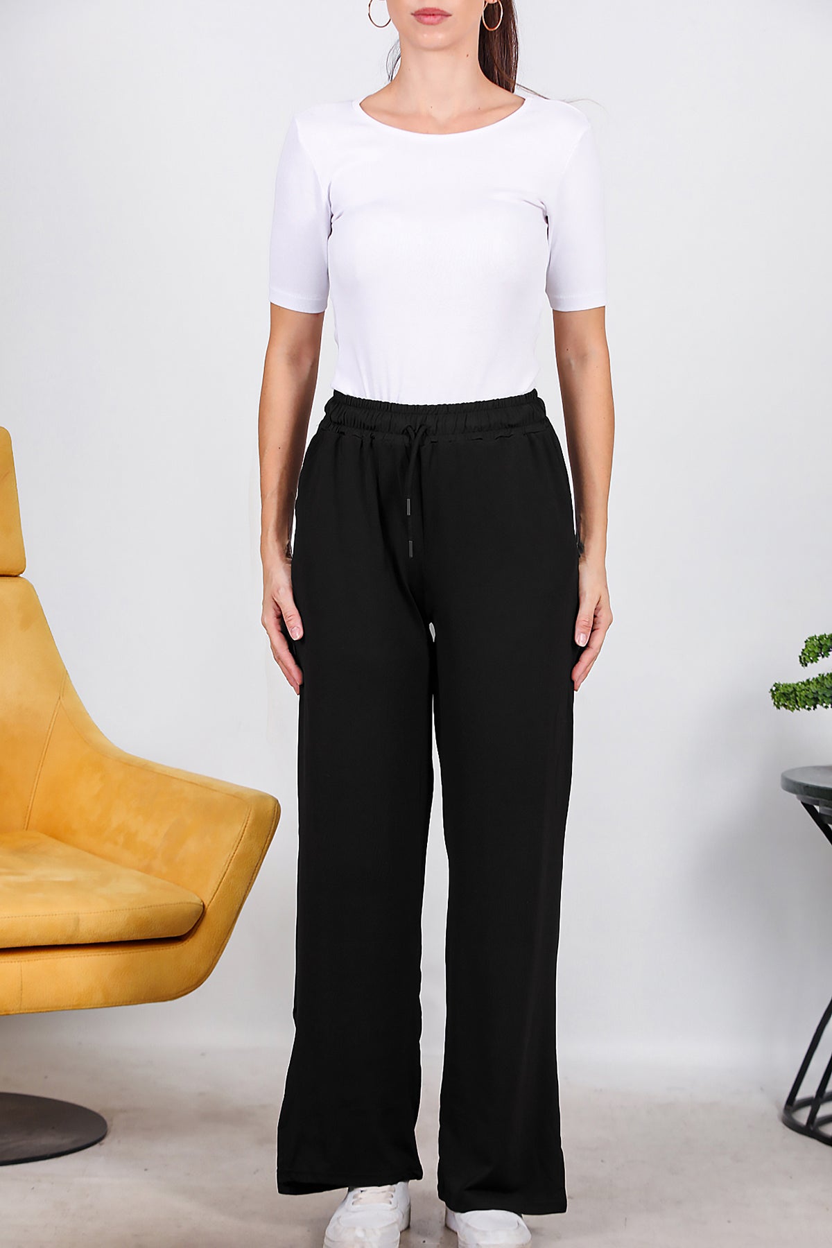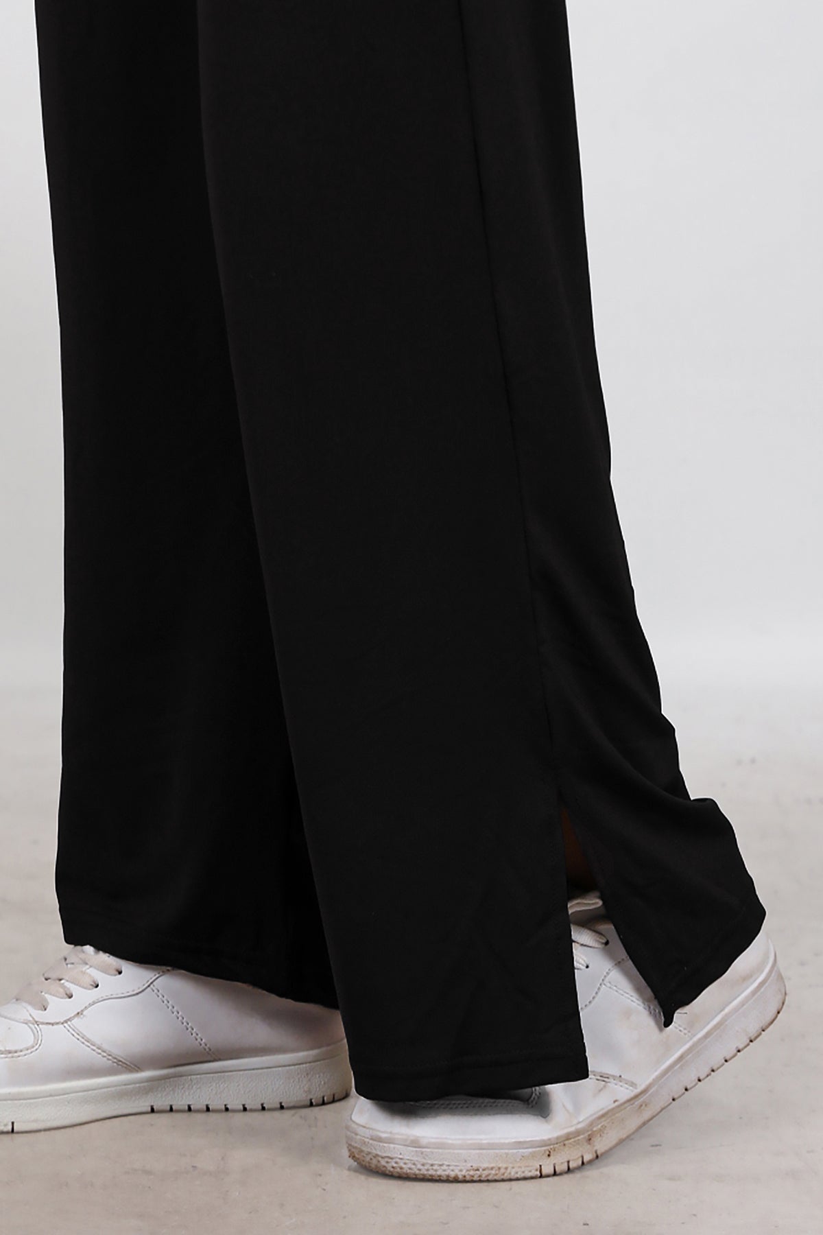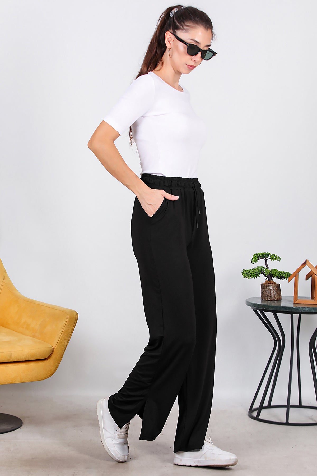 Kadın Yırtmaçlı Bol Paça Pantolon Siyah