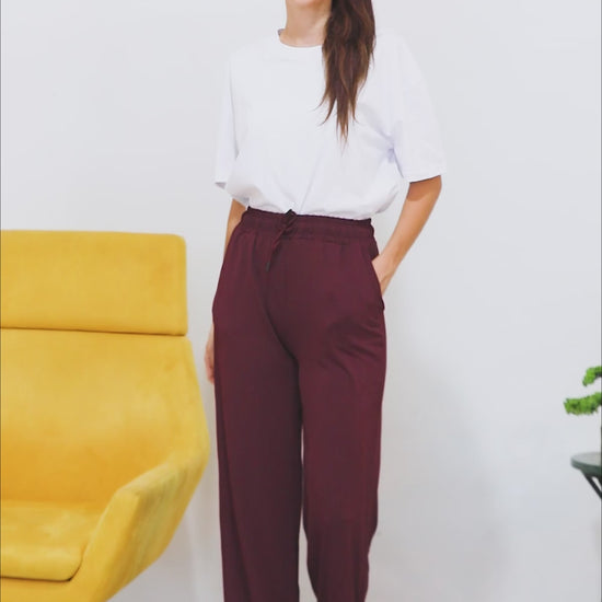 Kadın Yırtmaçlı Bol Paça Pantolon Bordo