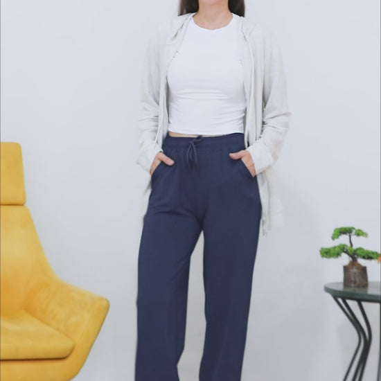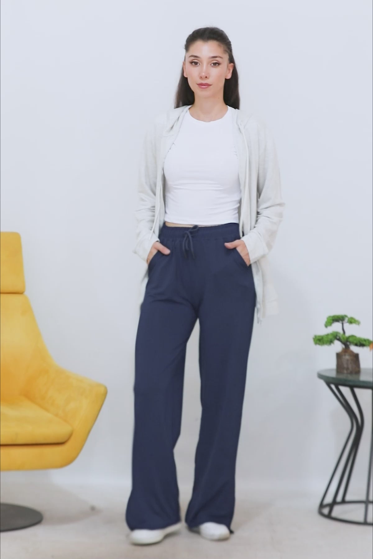 Kadın Yırtmaçlı Bol Paça Pantolon Lacivert